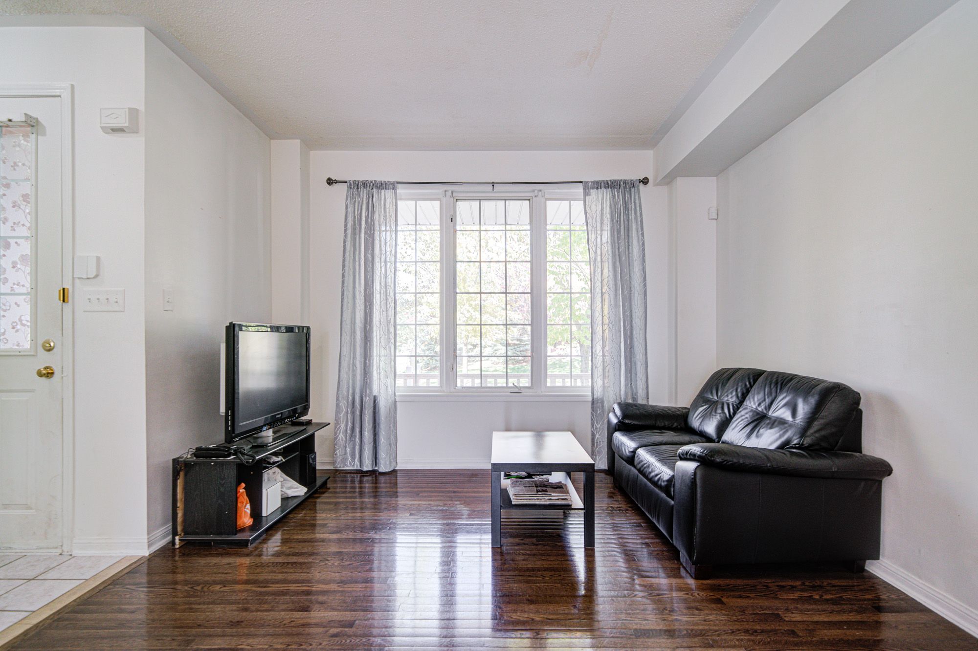 • Bright living and dining area with elegant hardwood floors.