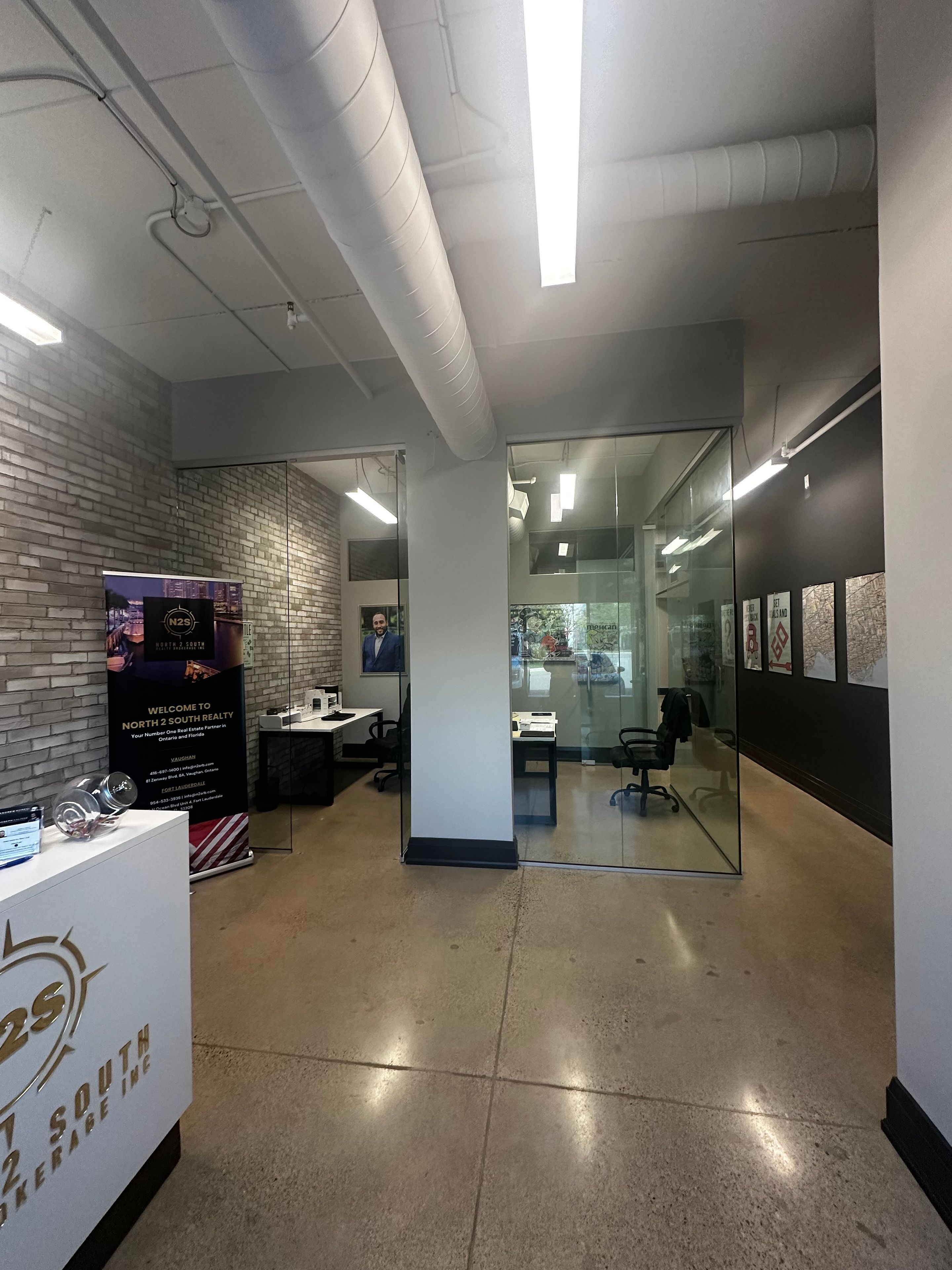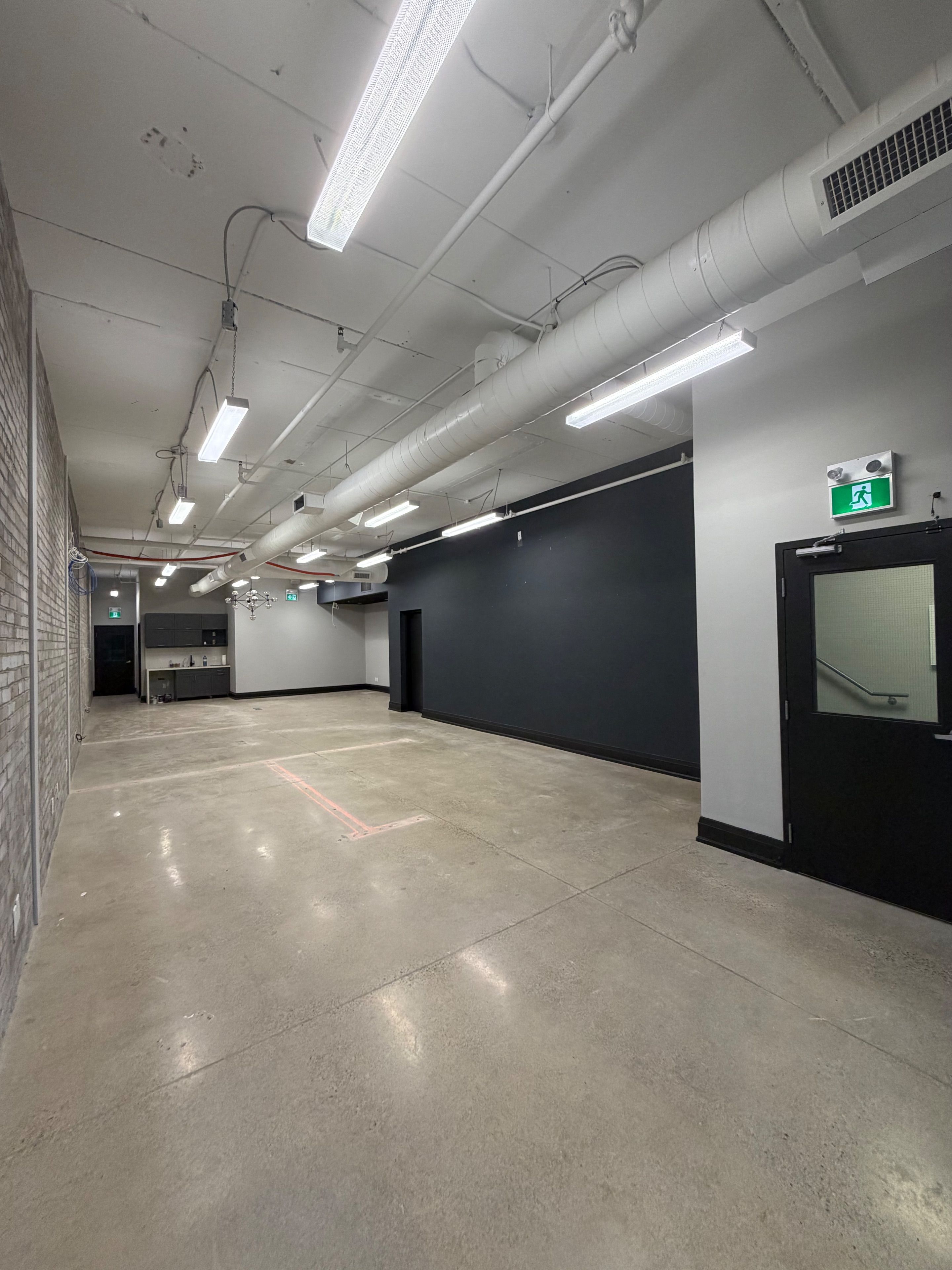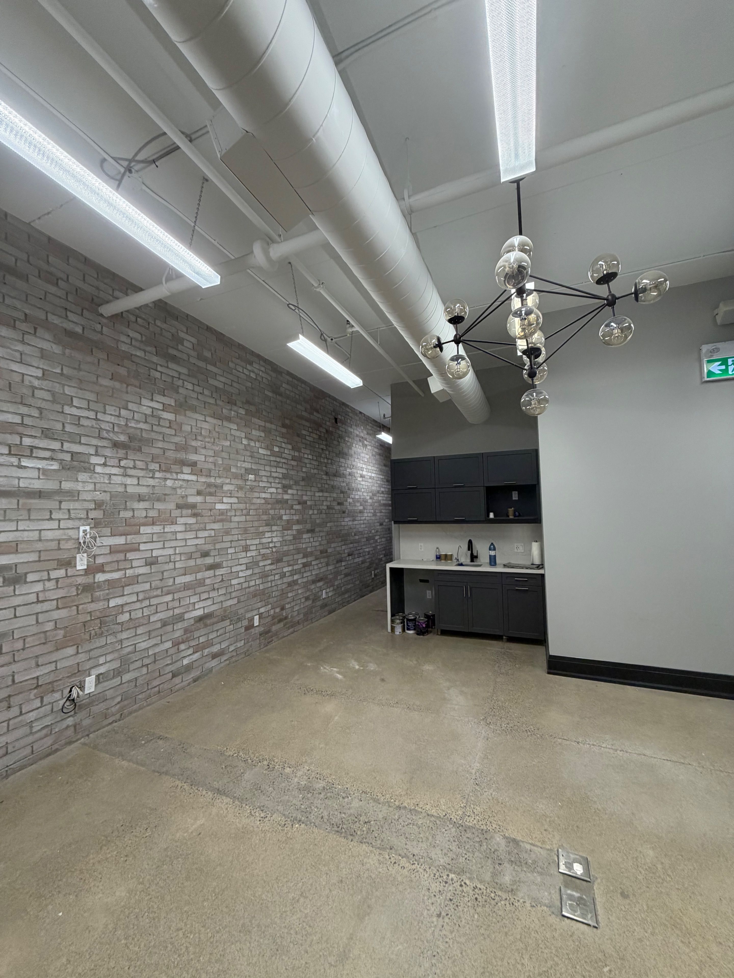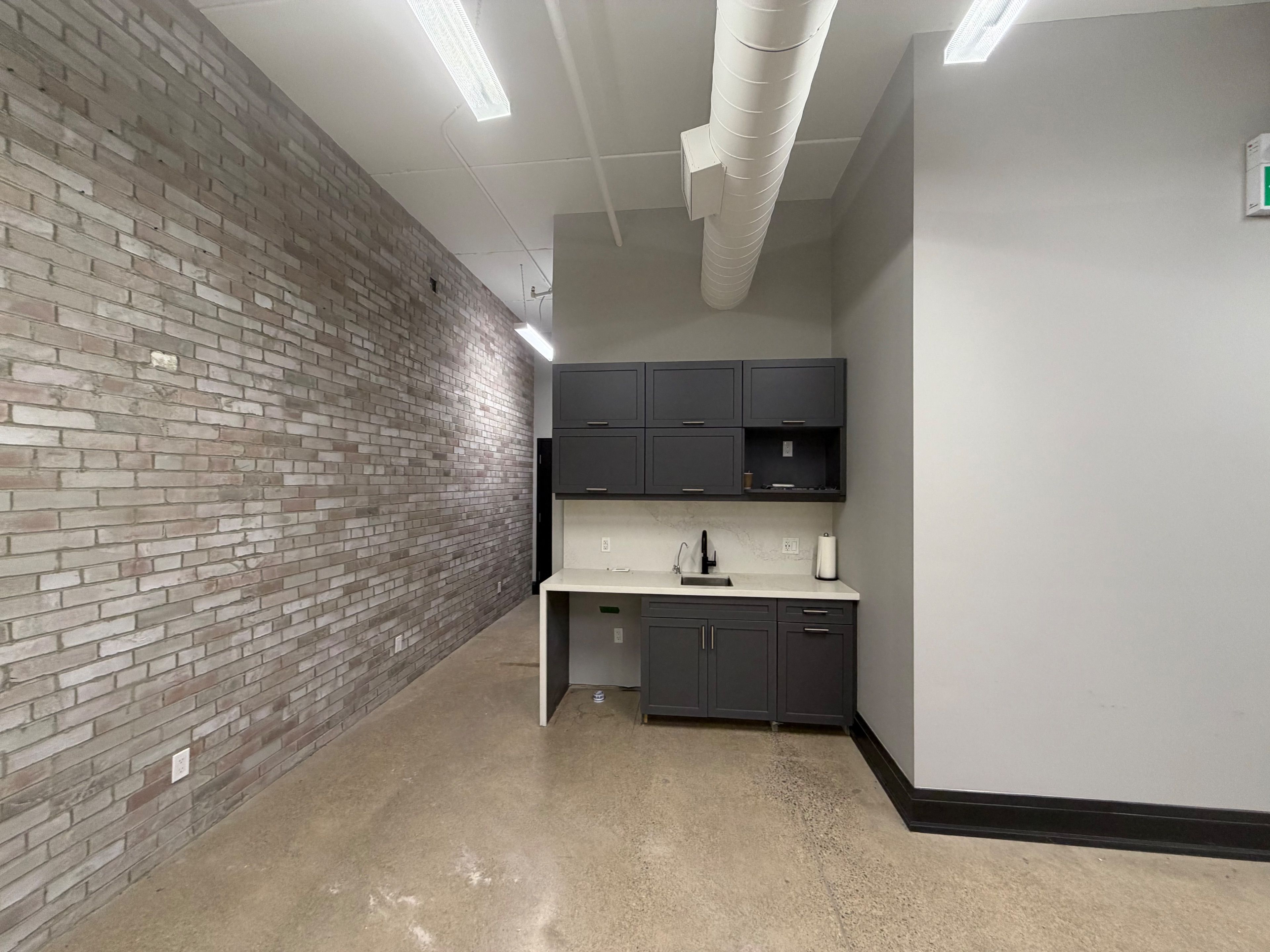 • Bright open-concept workspace and contemporary kitchenette included.