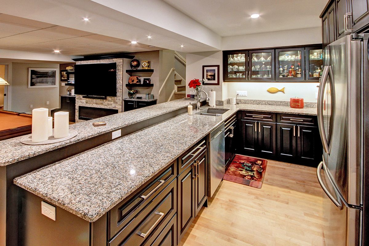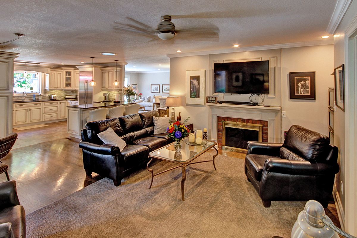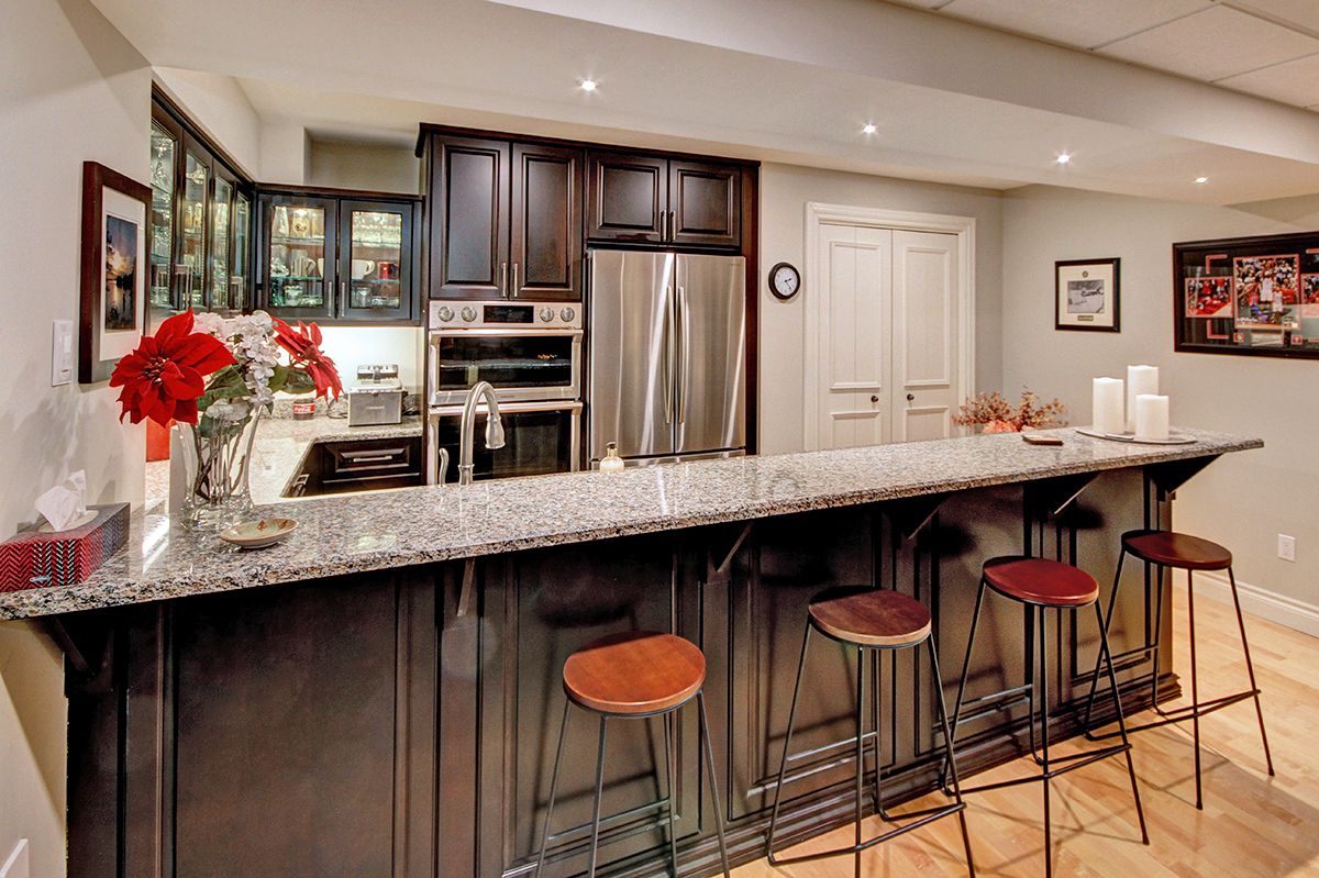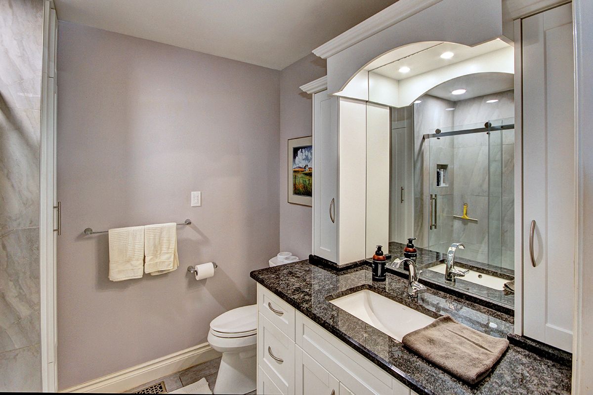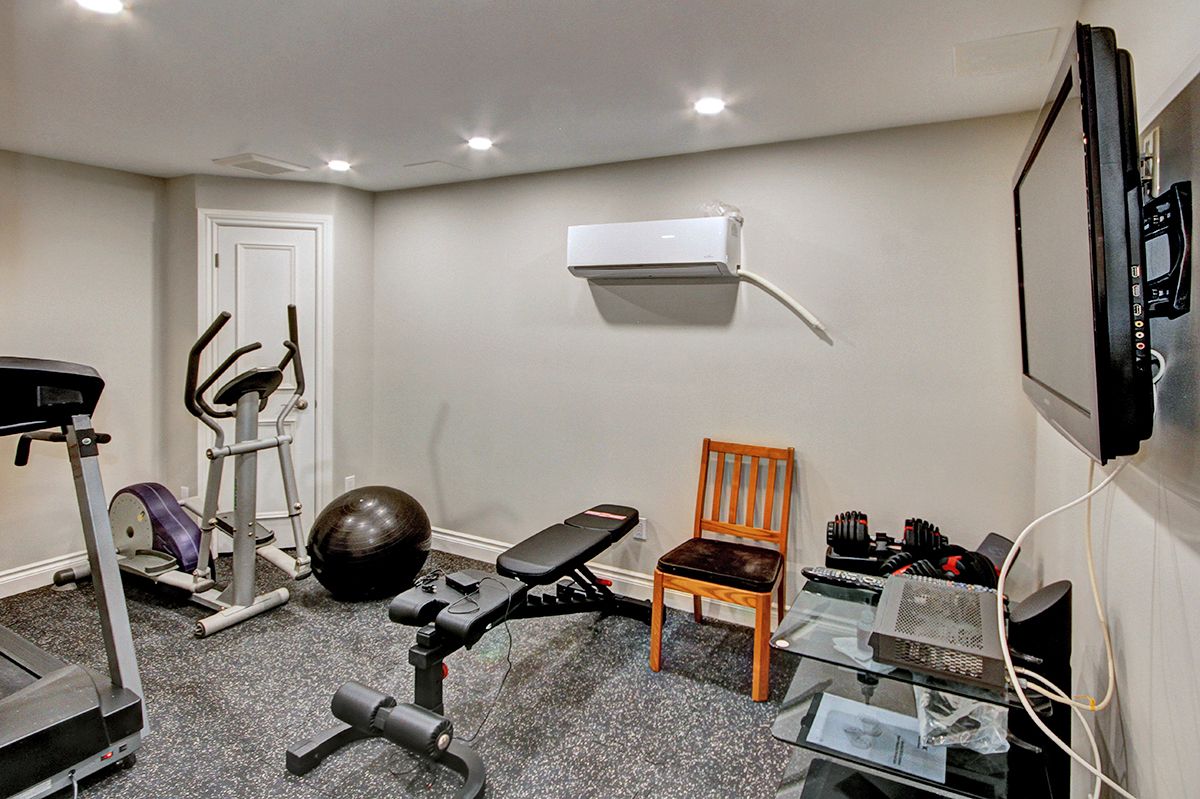 • Lower level includes additional kitchen, gym, and ample storage space.