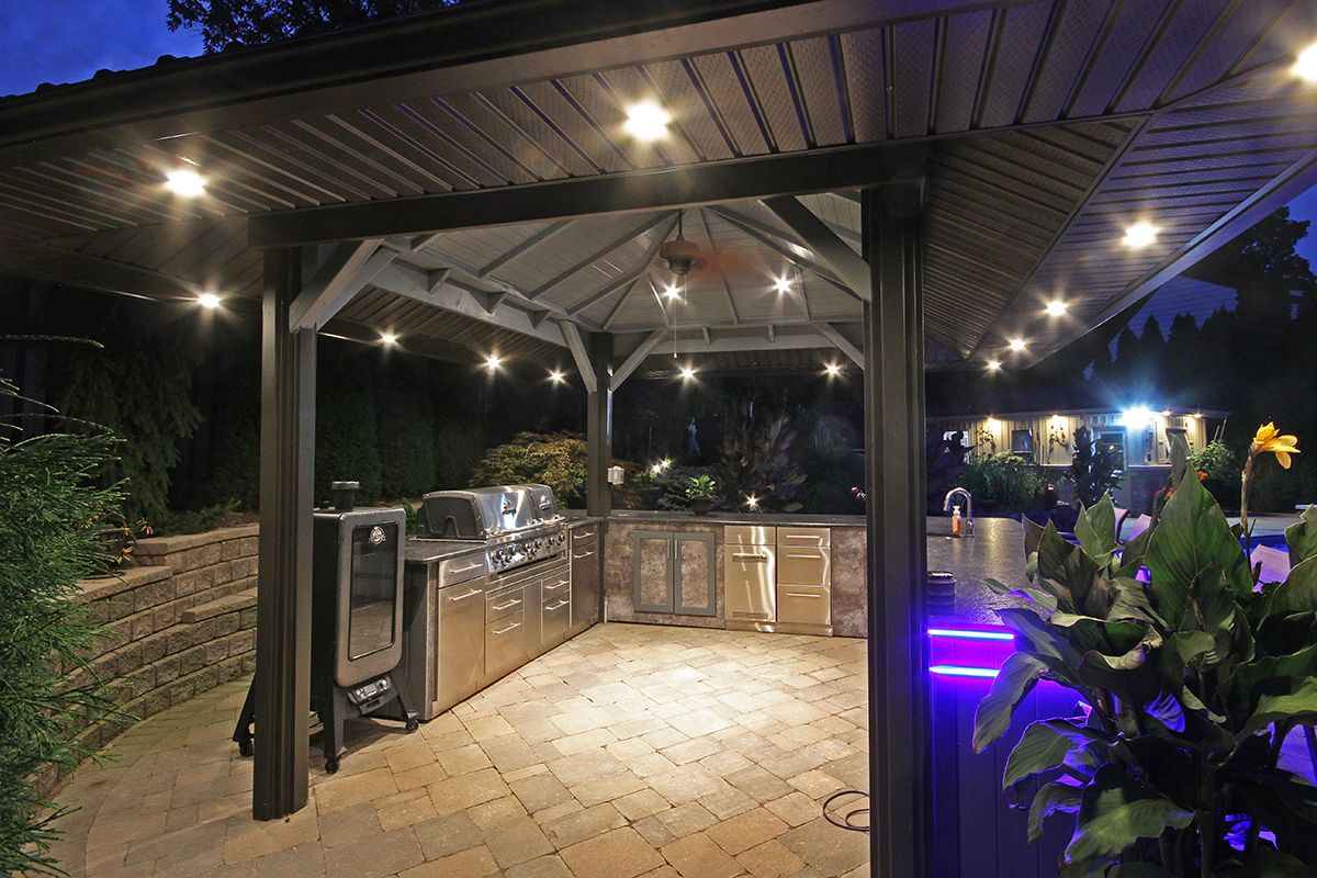 • Private lot with resort-like amenities including pool, hot tub, and outdoor kitchen.