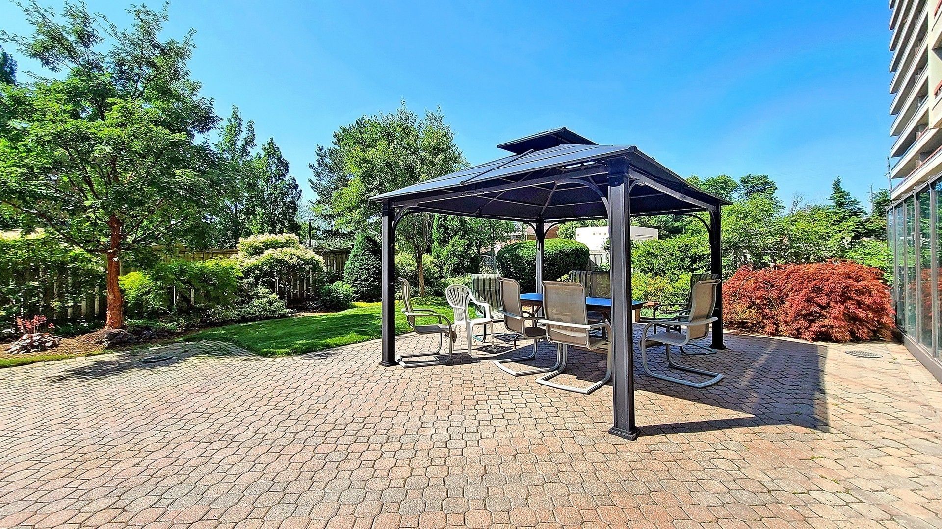 Welcome to the prestigious "gazebo " in thornhill. Rarely available "bayberry" model with south west views. Walk - out from living room and primary bedroom to large wrap around balcony. Approx. 1228 sq ft and 460 sq ft balcony. Large ensuite utility room 1. 70 m x1. 39 m, plus bsmt locker. Library. Woodworking shop. All inclusive maintenance. Short walk to yonge street and shopping and excellent schools. Indoor pool and excellent recreational facilities, tennis courts, squash court, sauna, gym, car wash. Walk to thornhill country club & toronto ladies golf club. Minutes to hwy 7/407 and finch subway station. Additional underground parking available.