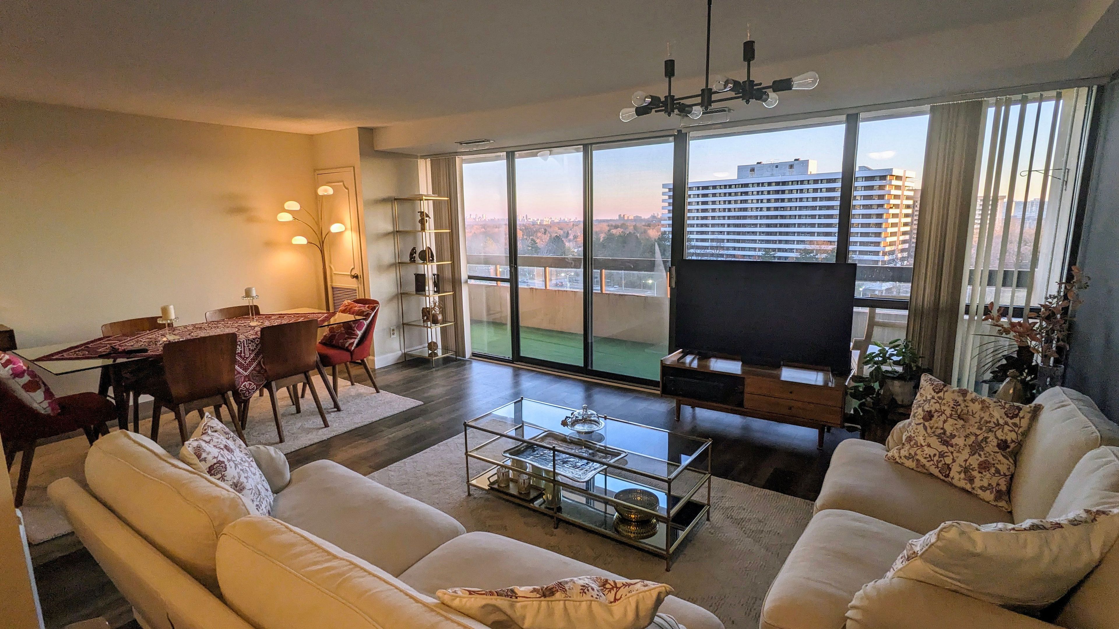 A must see spacious 1,120 sq ft, 2 bedroom suite located in the gazebo of thornhill. Enjoy unobstructed south views on the 255 sq/ft balcony. The master bedroom has a large walk-in closet and 2 piece ensuite. Building amenities include an indoor pool, tennis courts, billiards room, wood working shop, beautiful grounds, exercise room. Conveniently located on yonge street, steps to shopping, parks, transit (viva, go bus). 1 parking spot & 1 locker included, extra storage in laundry room.