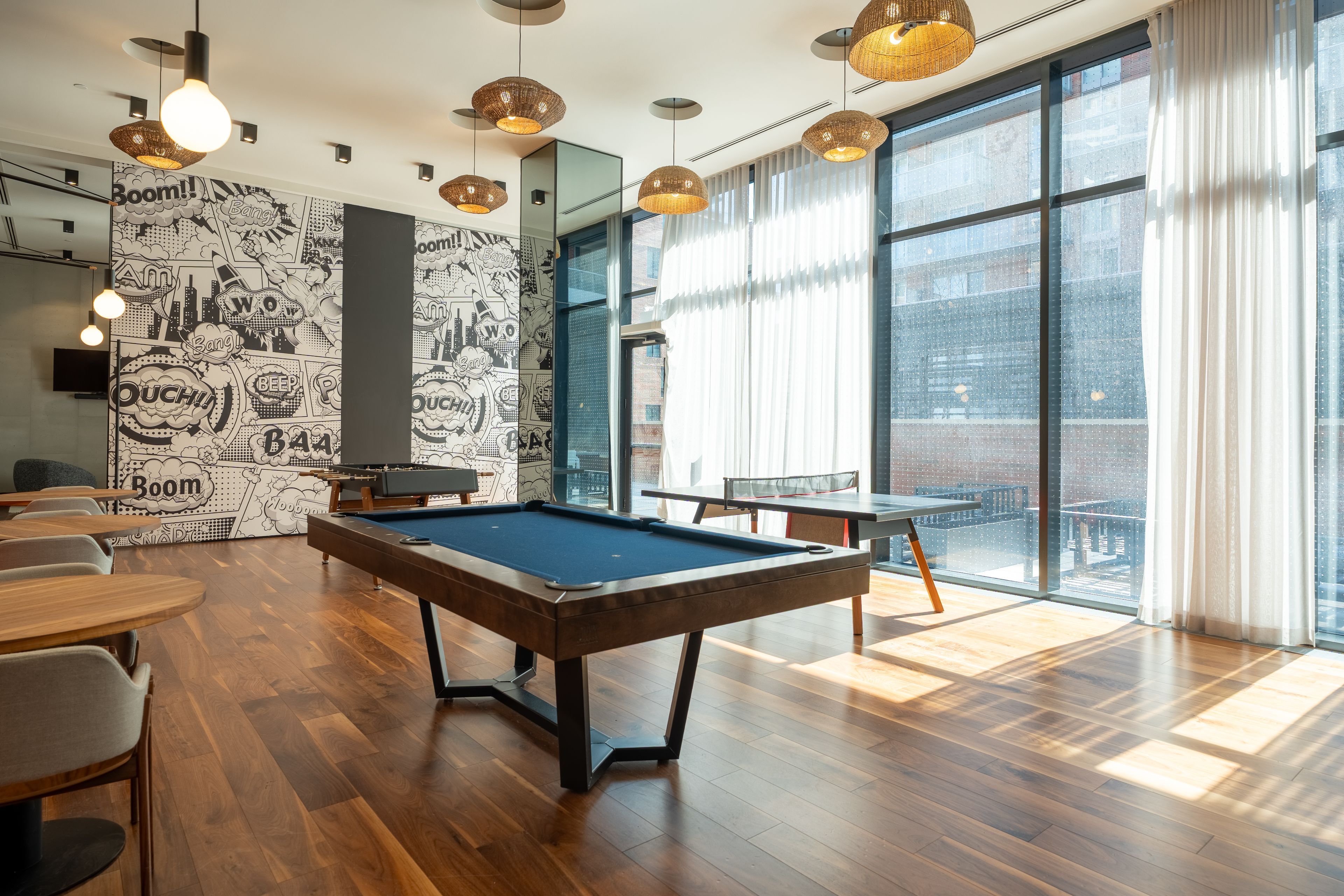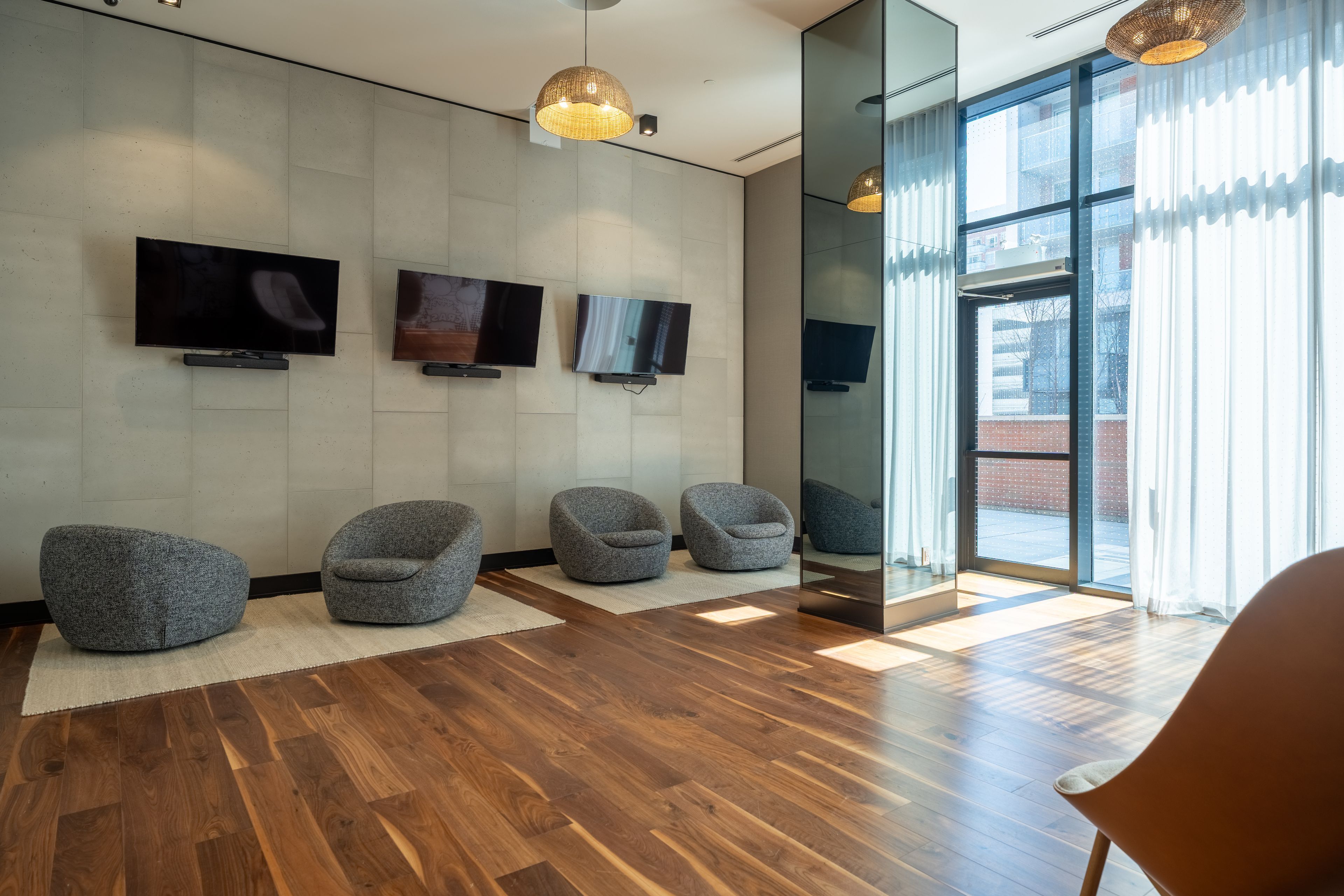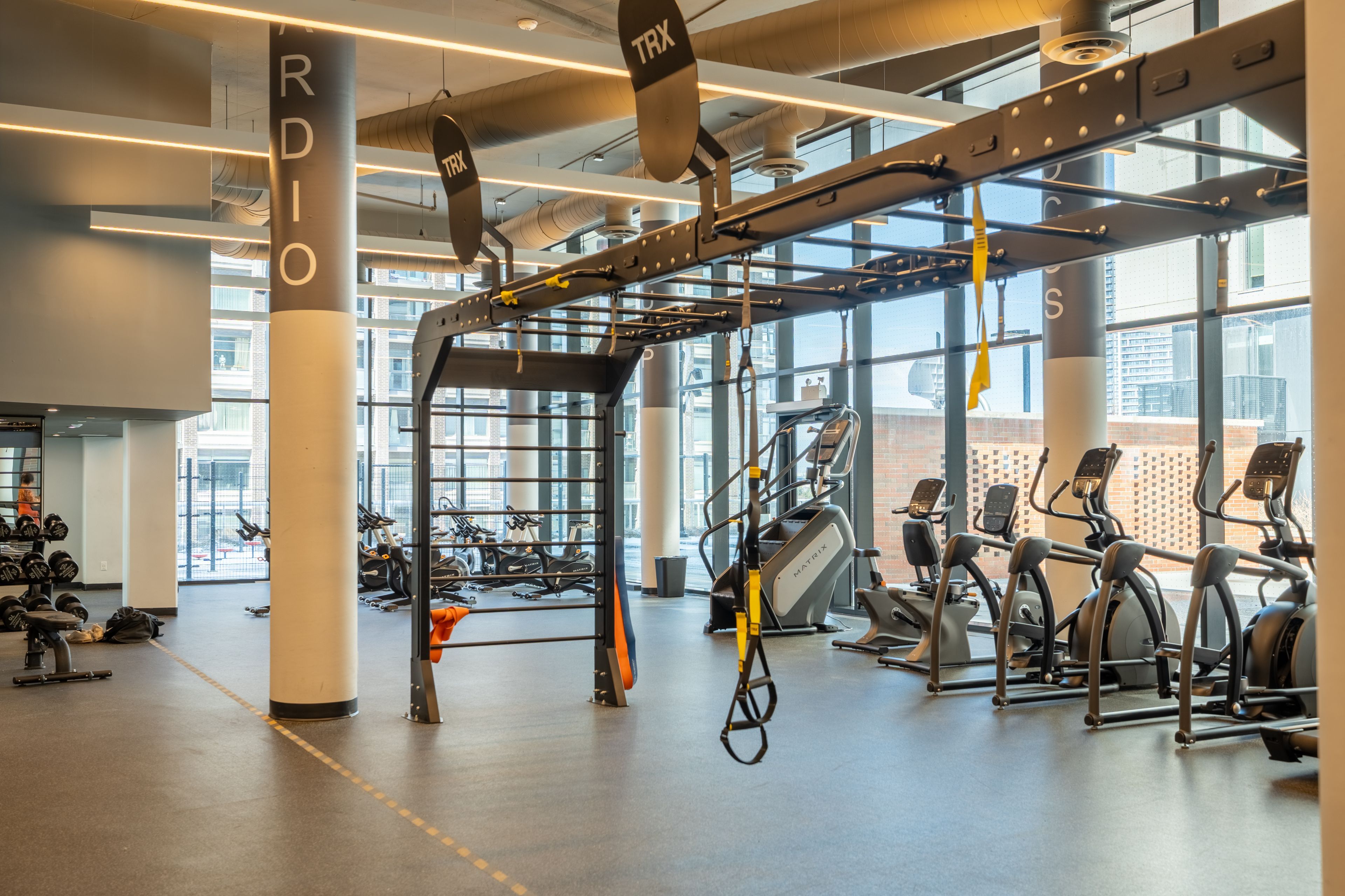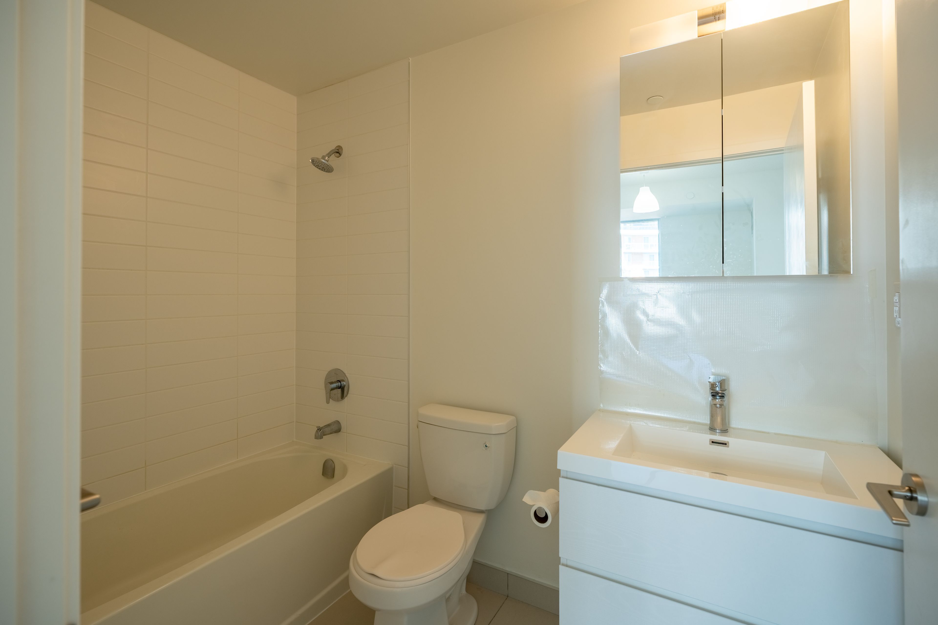 • Building amenities include gym, pet spa, rooftop deck, and party rooms.