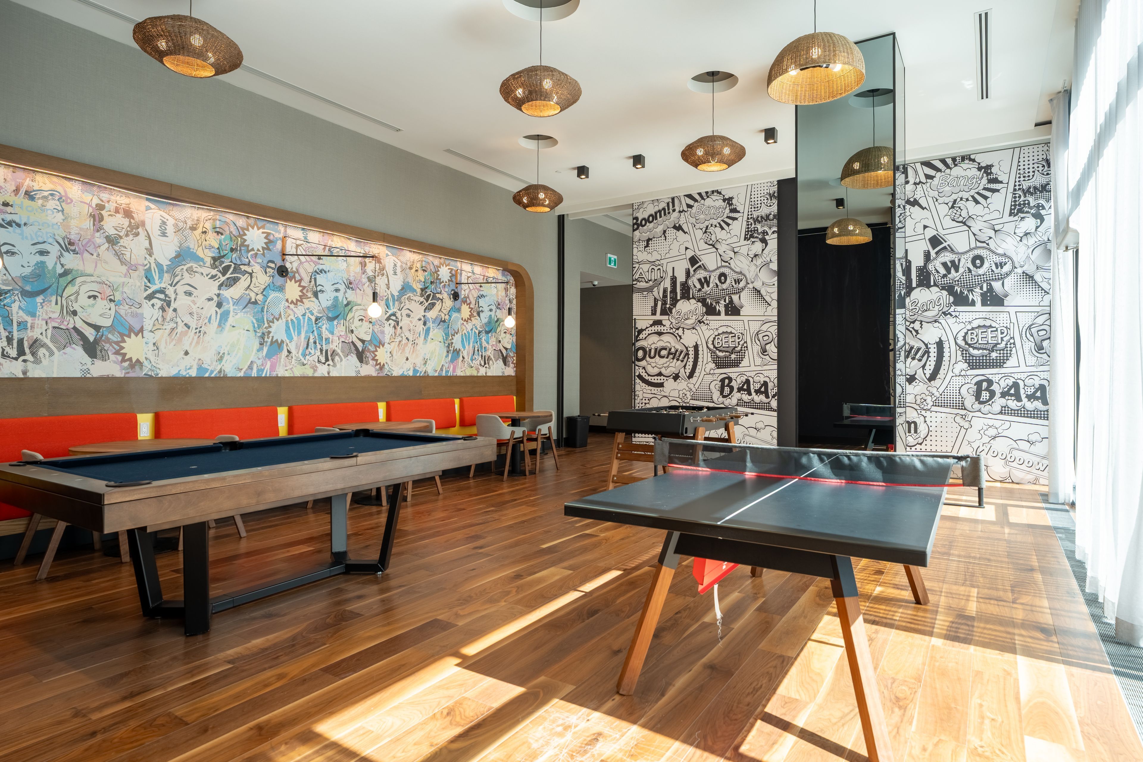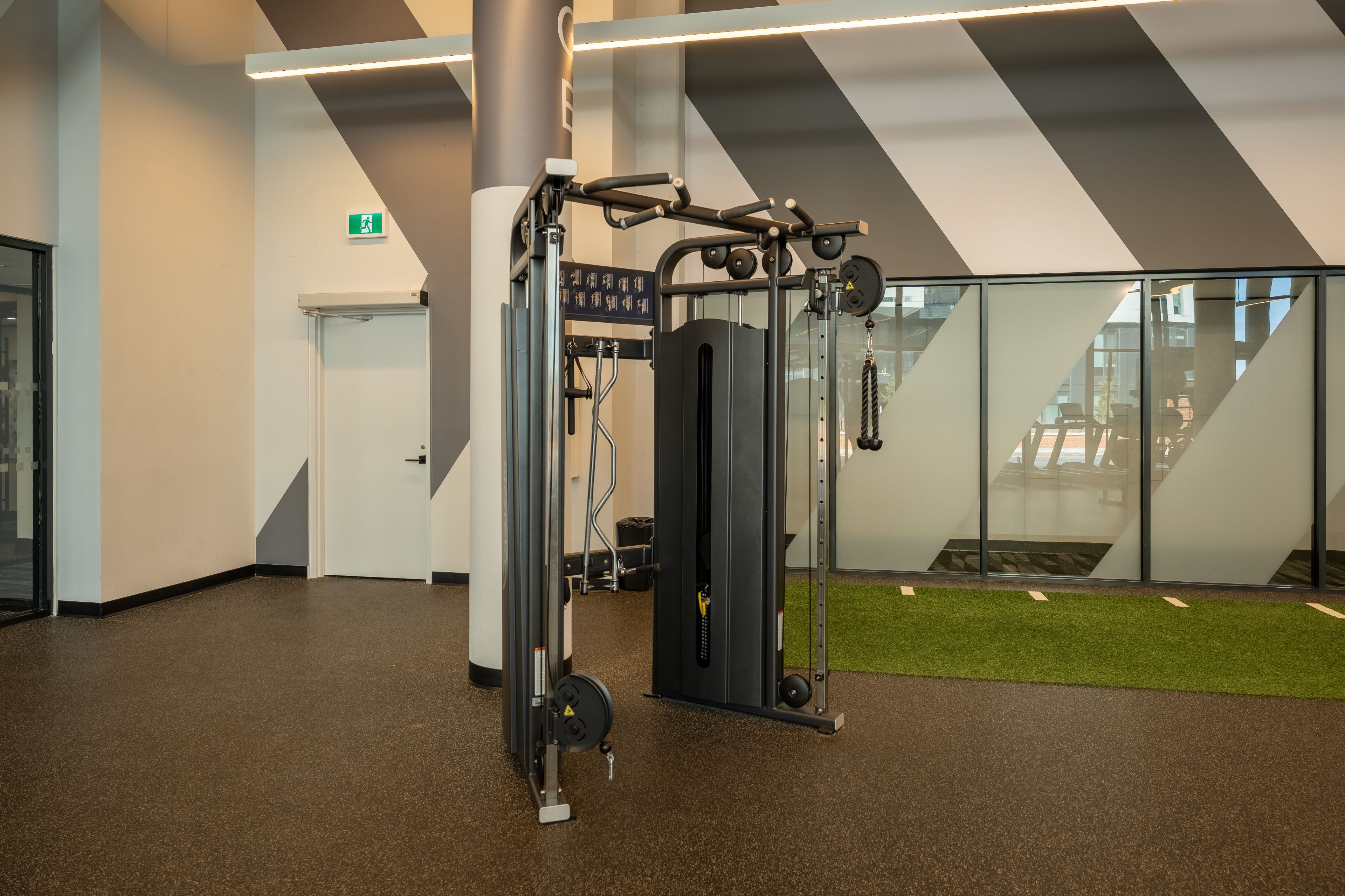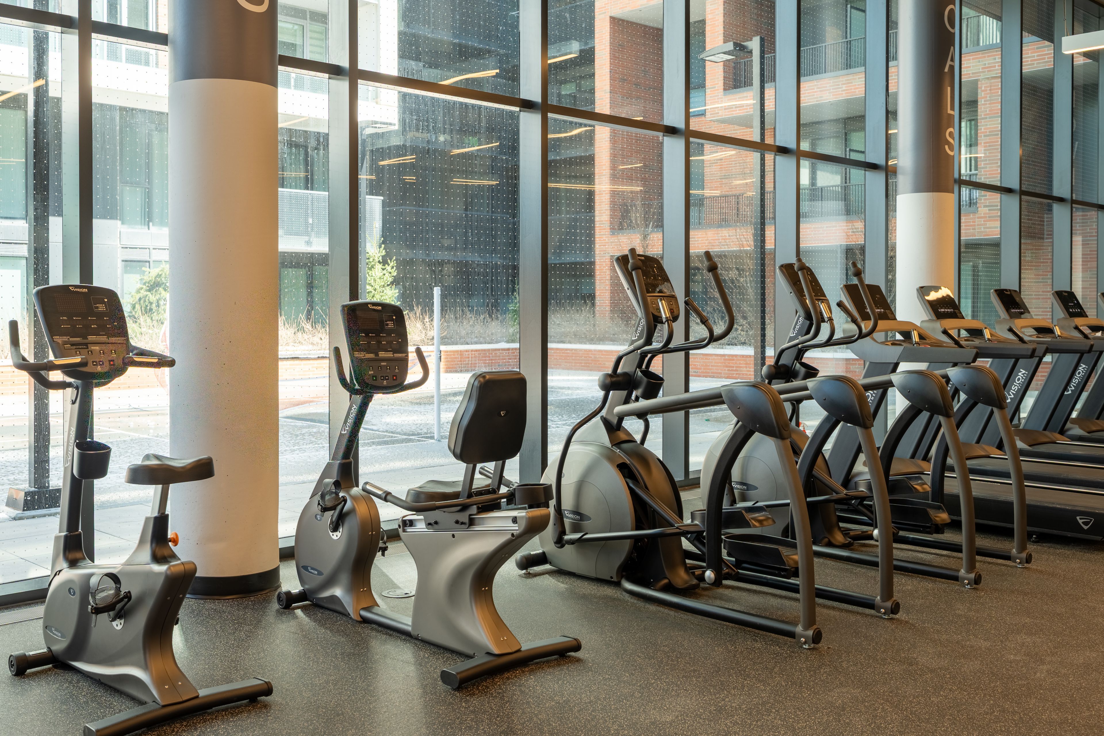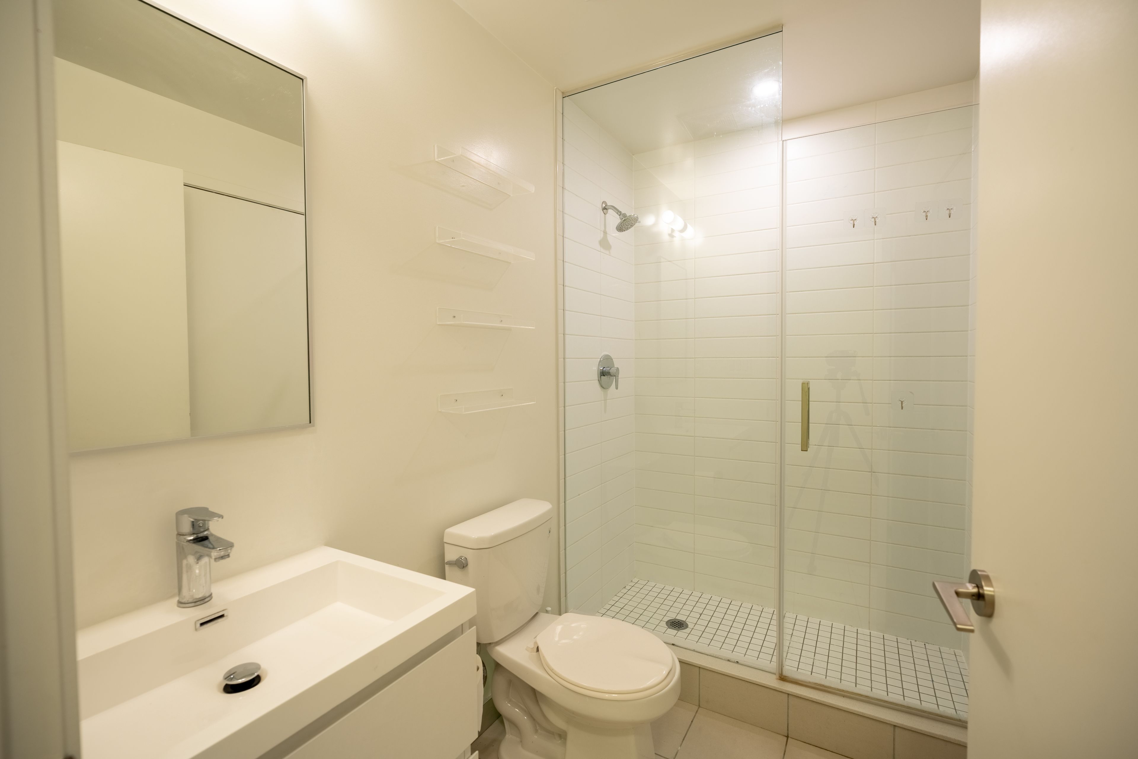 • Building amenities include gym, pet spa, rooftop deck, and party rooms.