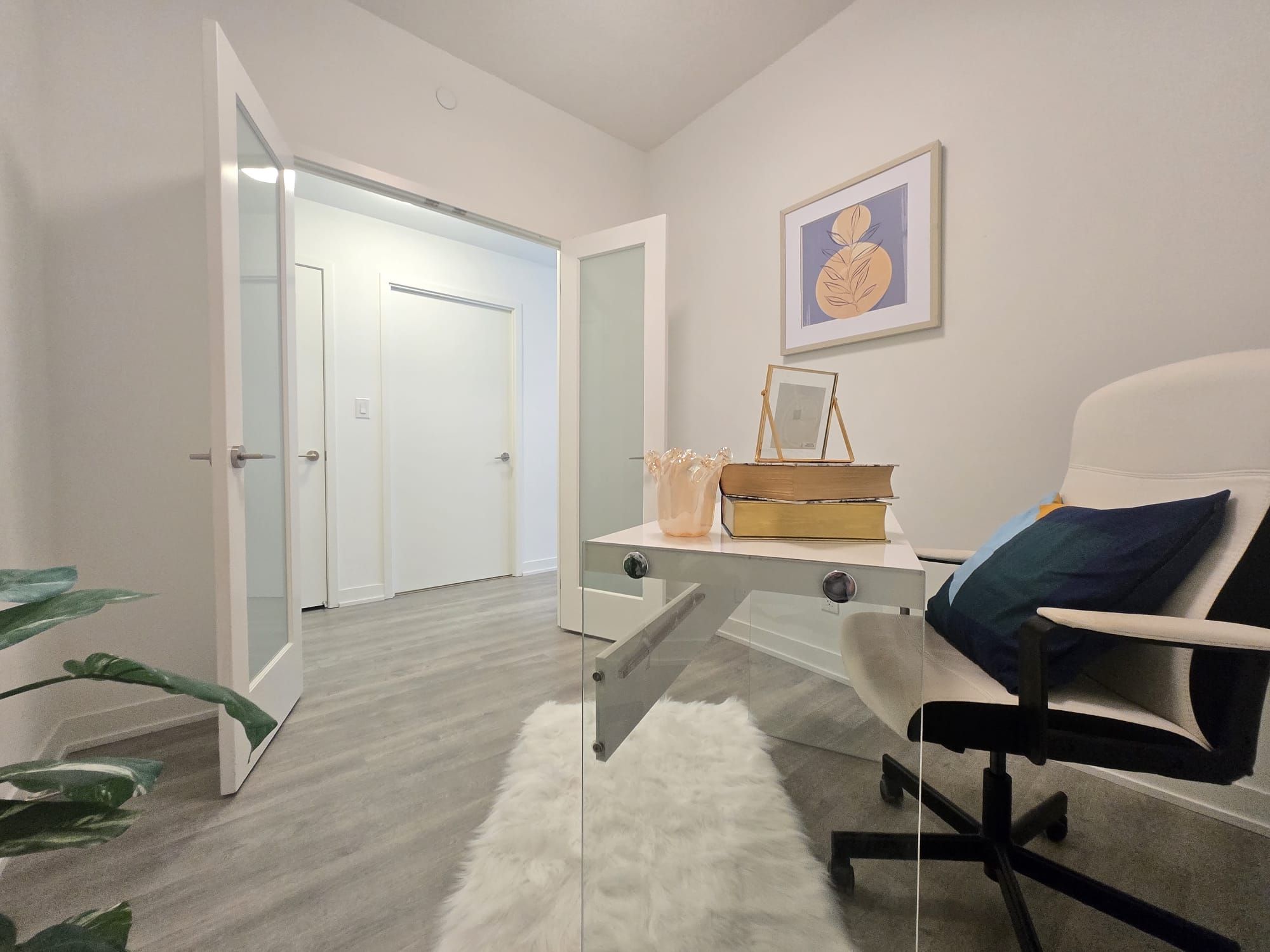• Enjoy the layout of a 2 bedroom in a 1 bedroom plus den space.