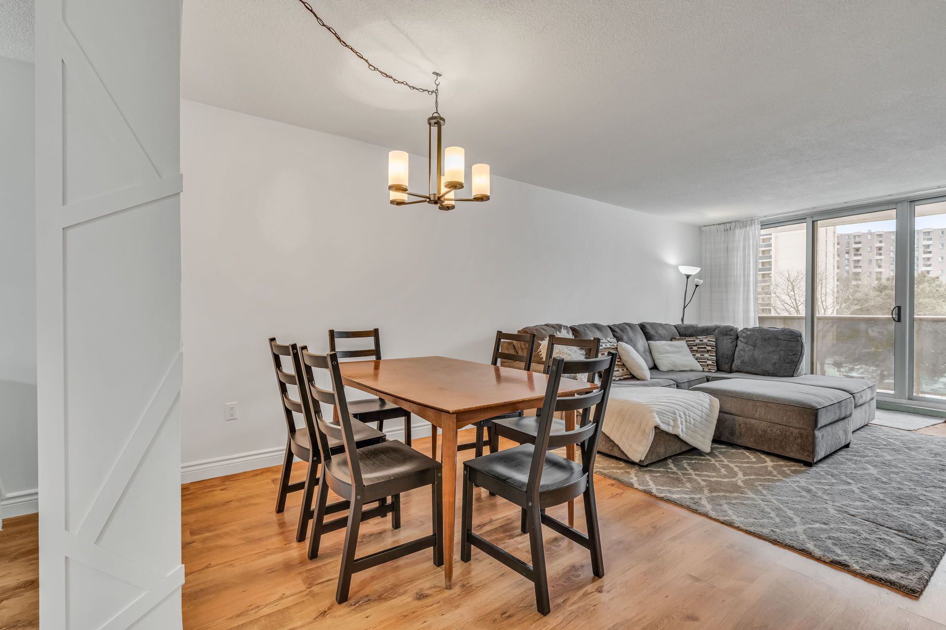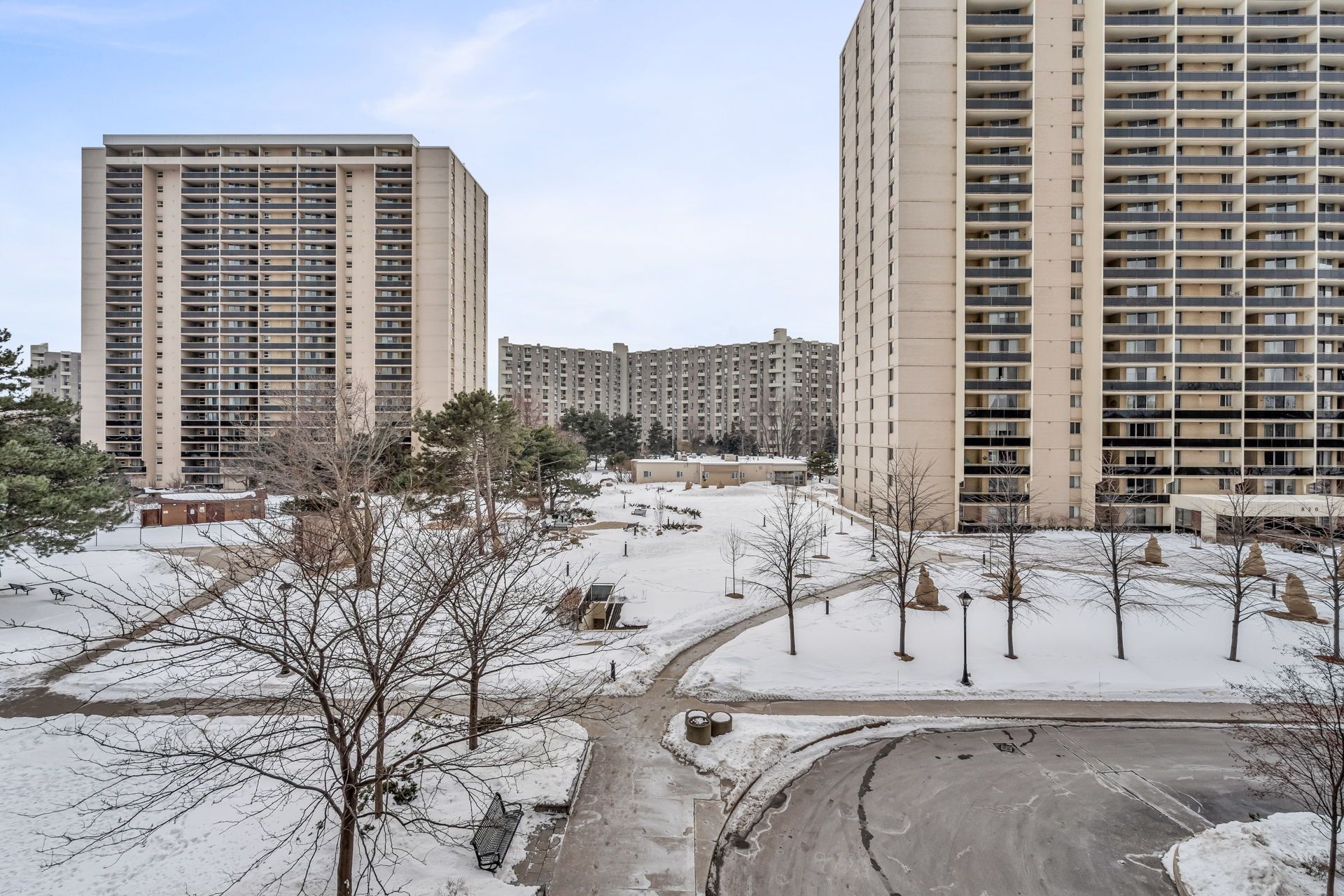 Welcome to millgate manor, a sought-after condominium community nestled in west toronto. This enclave of three thoughtfully designed buildings is set on several acres of private, beautifully landscaped grounds, offering a peaceful retreat just minutes from city conveniences. This spacious 3 bedroom, 2 bathroom home offers over 1,200 square feet of well planned interior living space, complemented by an ensuite locker and one underground parking space on the p1 level. Maintenance fees include all major utilities-heat, electricity, water, central air conditioning, parking, cable tv, and high speed internet-making everyday living simple and worry free. Step inside to an inviting open concept foyer that flows into a bright living room with a walk-out to a sunny south-west facing balcony. From here, enjoy clear west facing views over the sparkling pool and lush, manicured grounds. The modern kitchen features newer stainless steel appliances, quartz countertops, and abundant cabinet and pantry storage, perfect for both everyday meals and entertaining. The generous primary bedroom includes a full ensuite bathroom, wall-to-wall closets, an additional walk-in closet, and a private balcony-ideal for morning coffee or evening relaxation. The second and third bedrooms are also generously sized, easily accommodating queen-sized bed sets, and each offers oversized closets for ample storage. Millgate manor fosters a warm, community-oriented atmosphere, making it an excellent choice for growing families or those looking to downsize without sacrificing space or comfort. The location is outstanding, with shopping, public transit, and scenic walking trails along etobicoke creek just steps away, as well as access to many highly rated schools. In minutes by car, you can reach major highways, toronto pearson international airport, downtown toronto, and mississauga-putting virtually everything you need within easy reach.