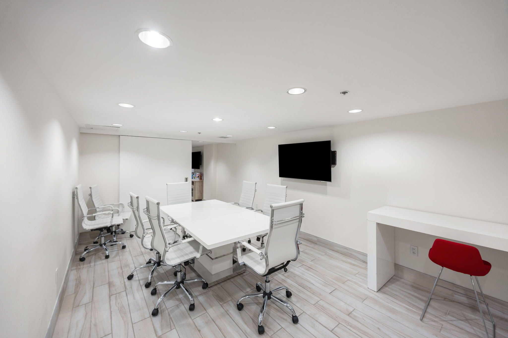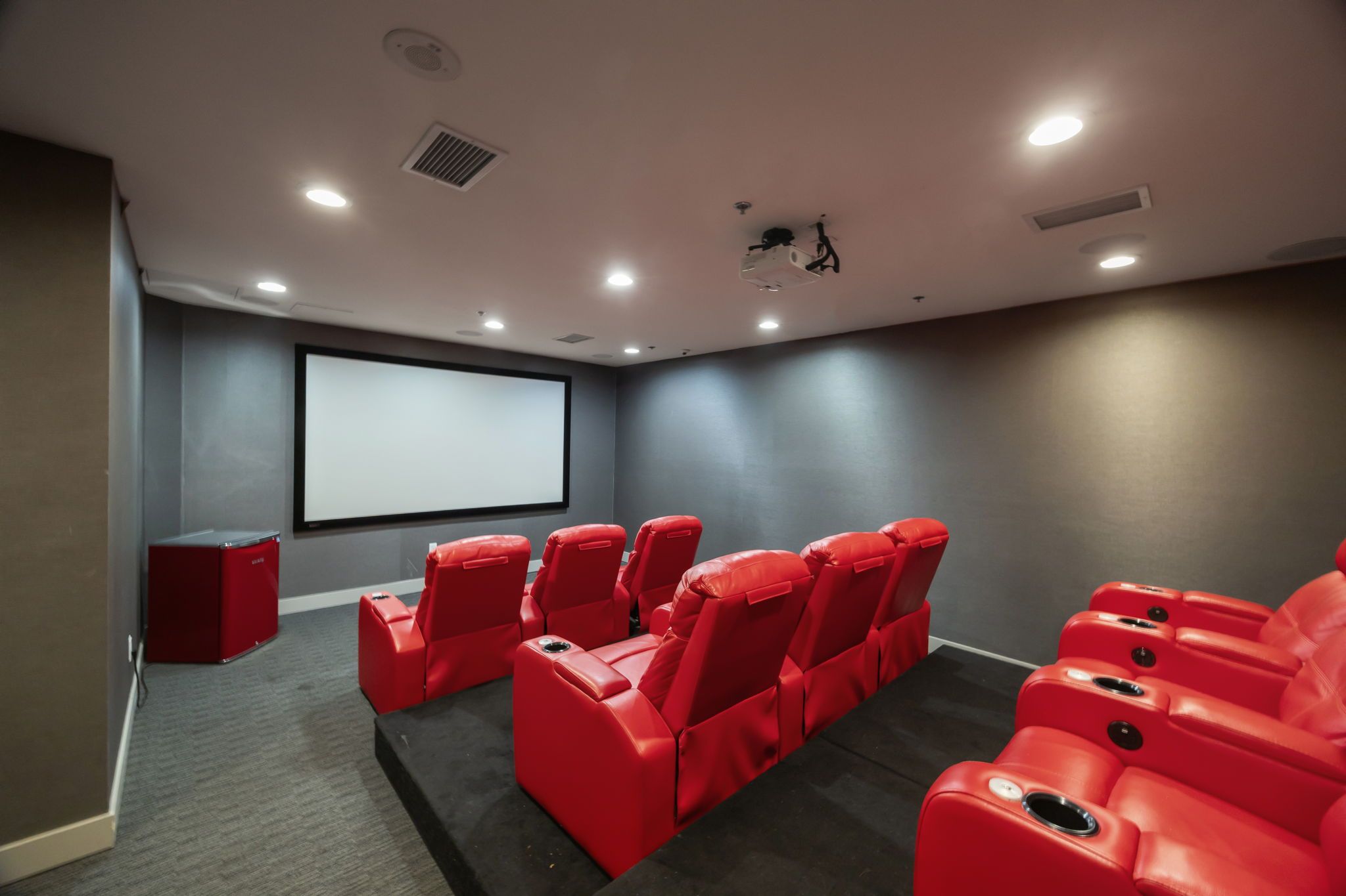 • Modern finishes with dark laminate floors and granite countertops.