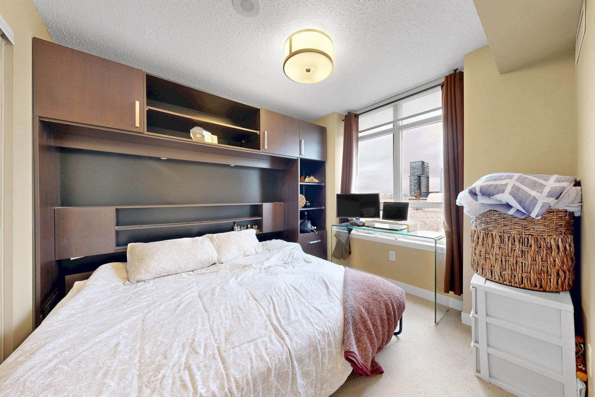 • Includes parking and access to building amenities like a gym and media room.