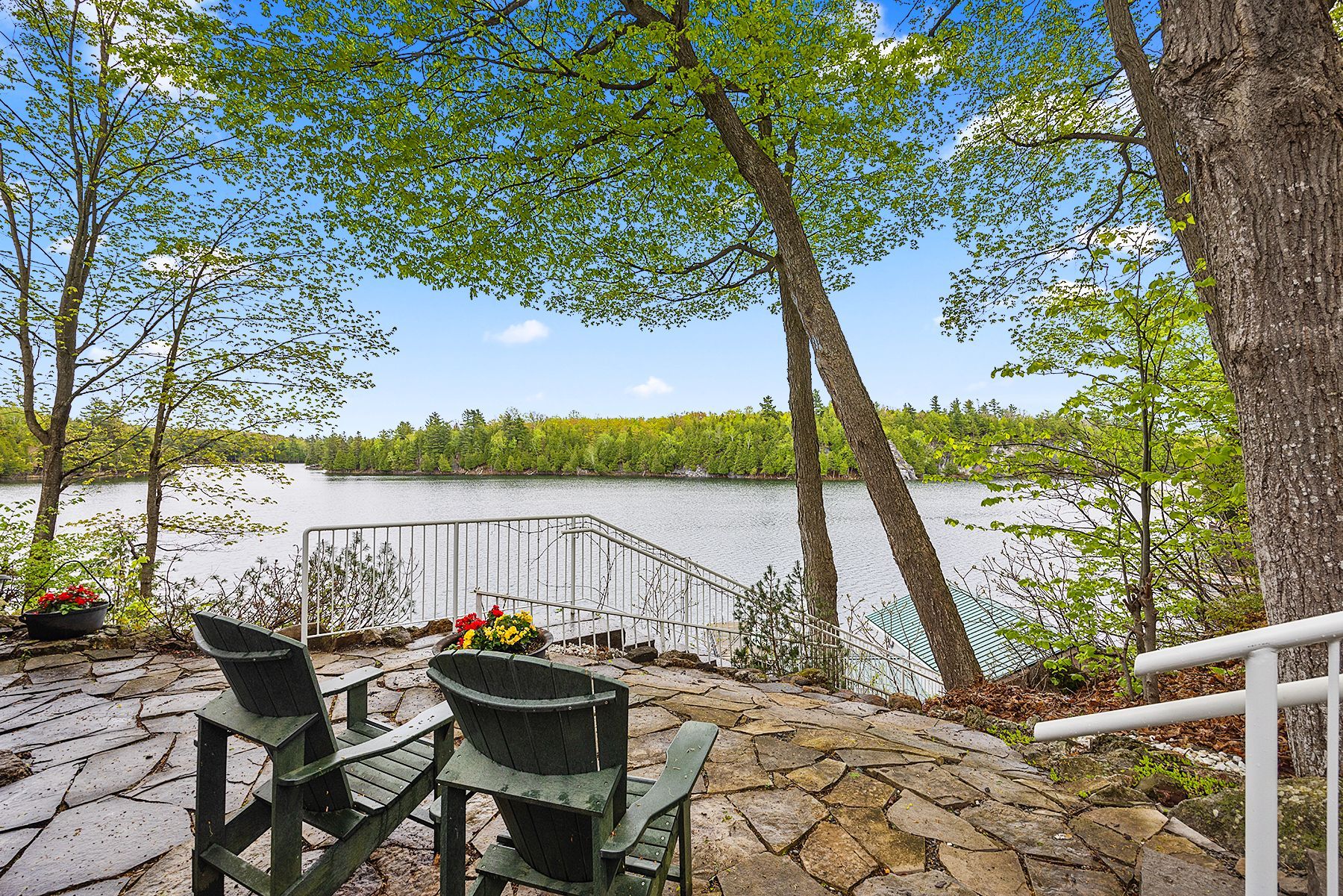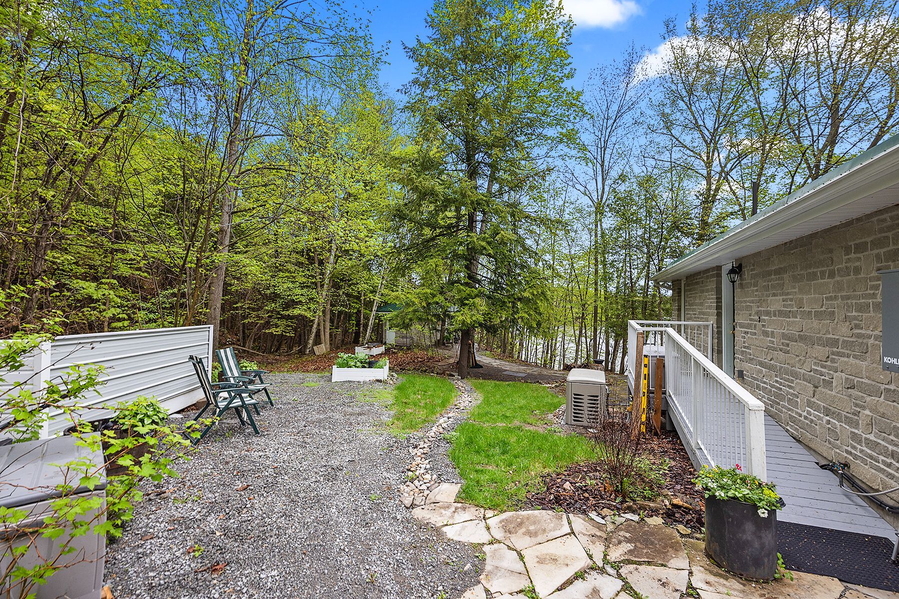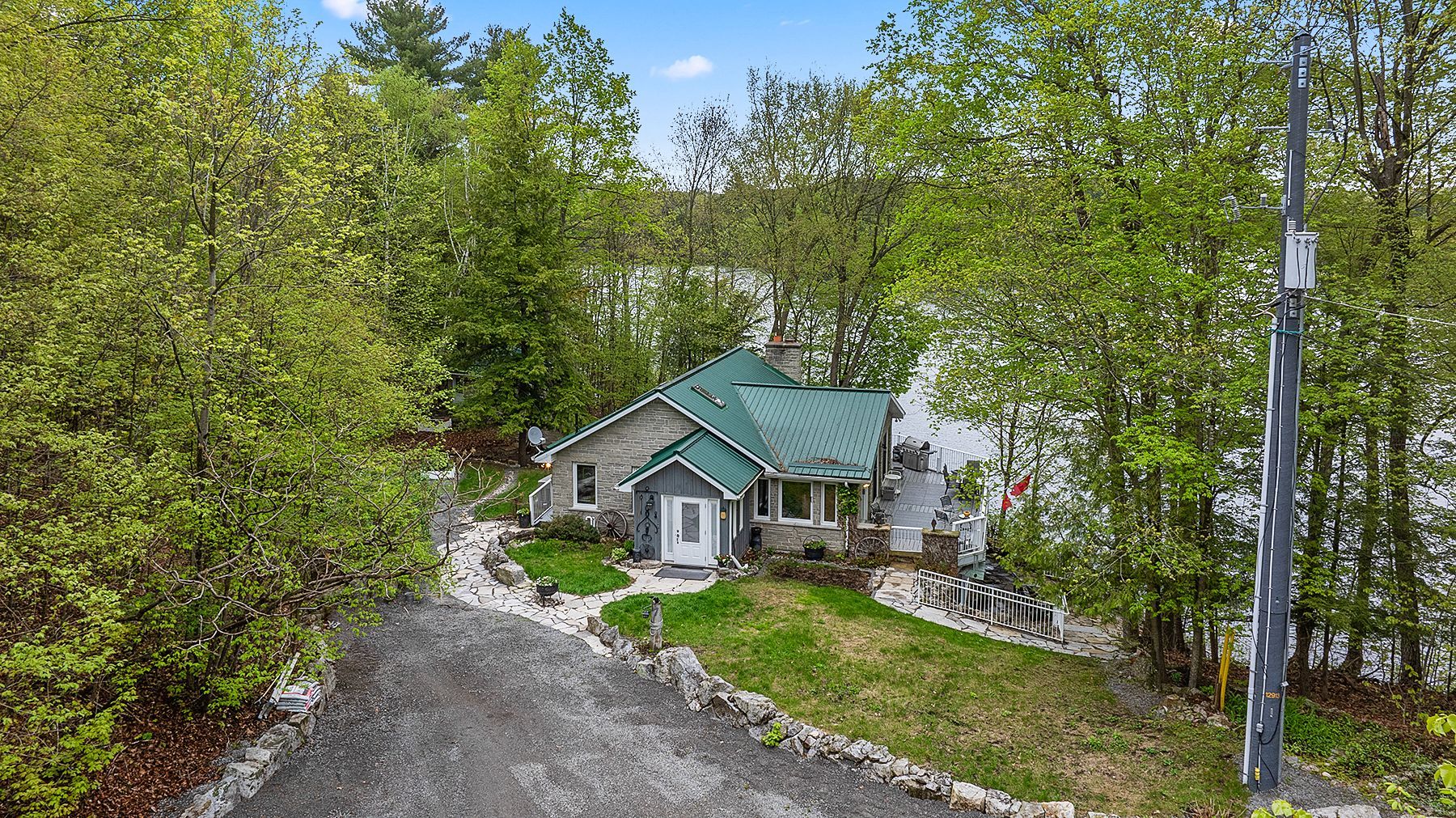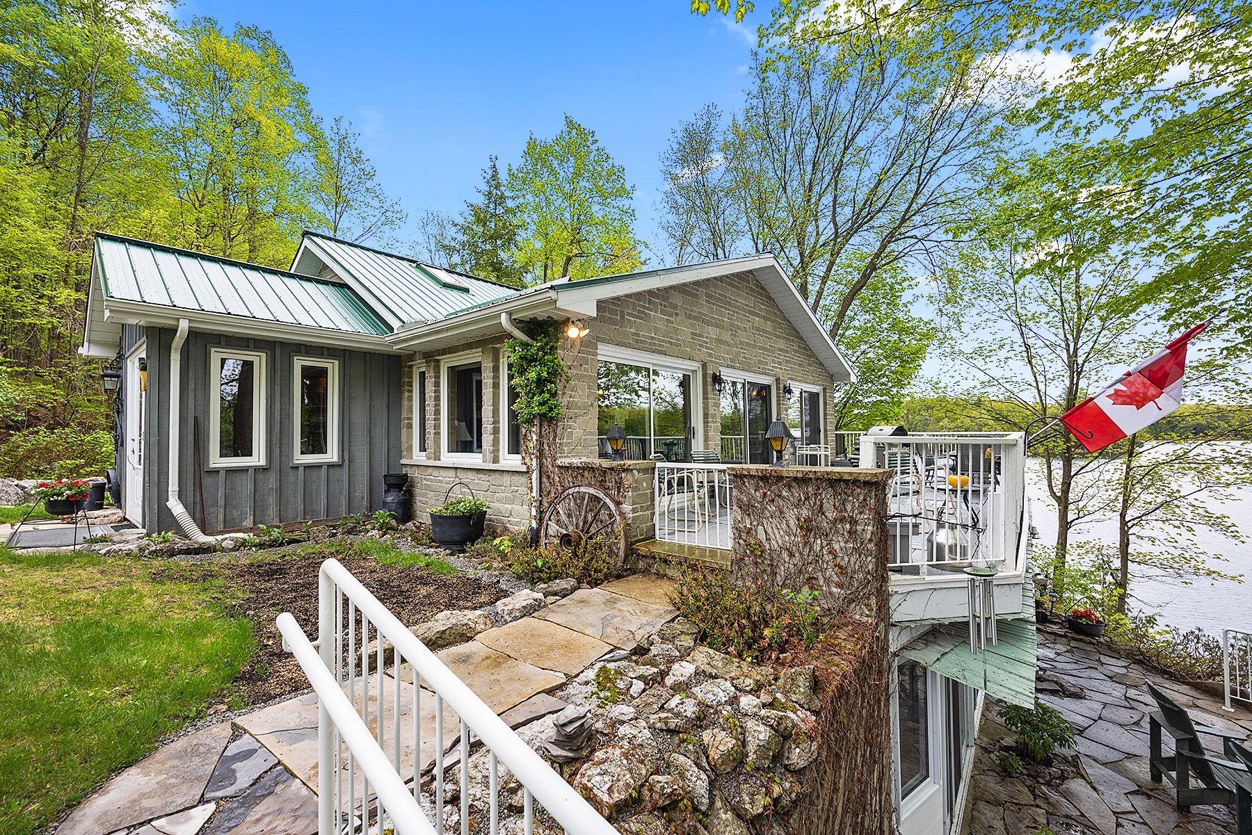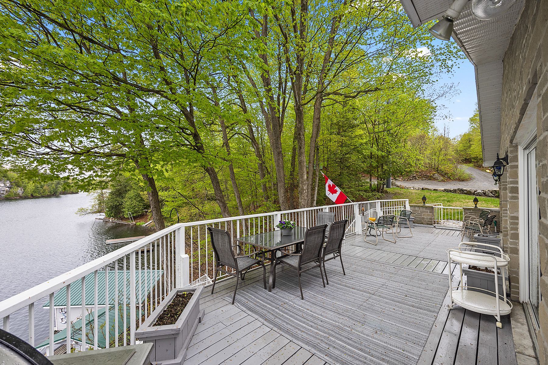 Just a short drive from downtown kingston and a quick jaunt into westport, nestled among more than 20 varieties of mature trees, on spring fed buck lake and in the canadian shield, this prestigious stone, raised bungalow is waiting for you to call home. The main floor boasts floor to ceiling windows and patio doors to the wrap around deck and clear, 180 degree view of crown land including exclusive direct sight of the famous local landmark, pulpit island with the iconic "devil's pulpit". The lower level, which is a walk-out, has two additional bedrooms (that could be 3), a 4-piece bathroom, laundry closet, cozy rec room with propane fireplace and like upstairs, floor to ceiling windows and patio doors so that you never lost the view. You walk out into a three season space under the deck, here you'll spend many nights playing cards/games. Just a few steps from the main house is a beautiful 4 season guest house, complete with a single/double bunk bed, toilet, sink and outdoor shower. Take the stone steps down to the crystal clear and deep shoreline, pop open the cabana and host the best dock party around! There is plenty of room on the dock for all sorts of activities and the original solid boat house is ready, waiting to house your watercraft of choice. The period style of the building's living space (2,078 sq ft) is enhanced by artful, expansive and expensive landscaping of local stone and materials; patios, pathways, limestone steps, iron railings, border rock fences, 2 large rough cut board and batten pine sheds, with steel roofs to match the main house! Upgraded septic system, brand new kohler-generator, and bunkhouse cabin. This is a home that needs to be seen and experienced in person!