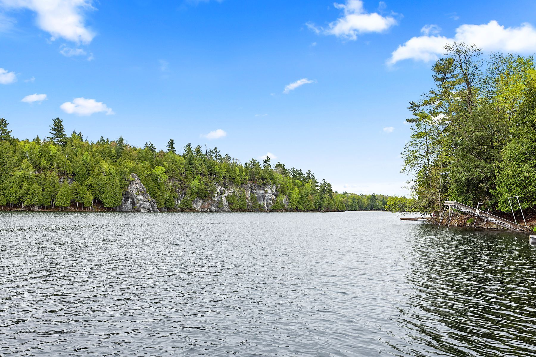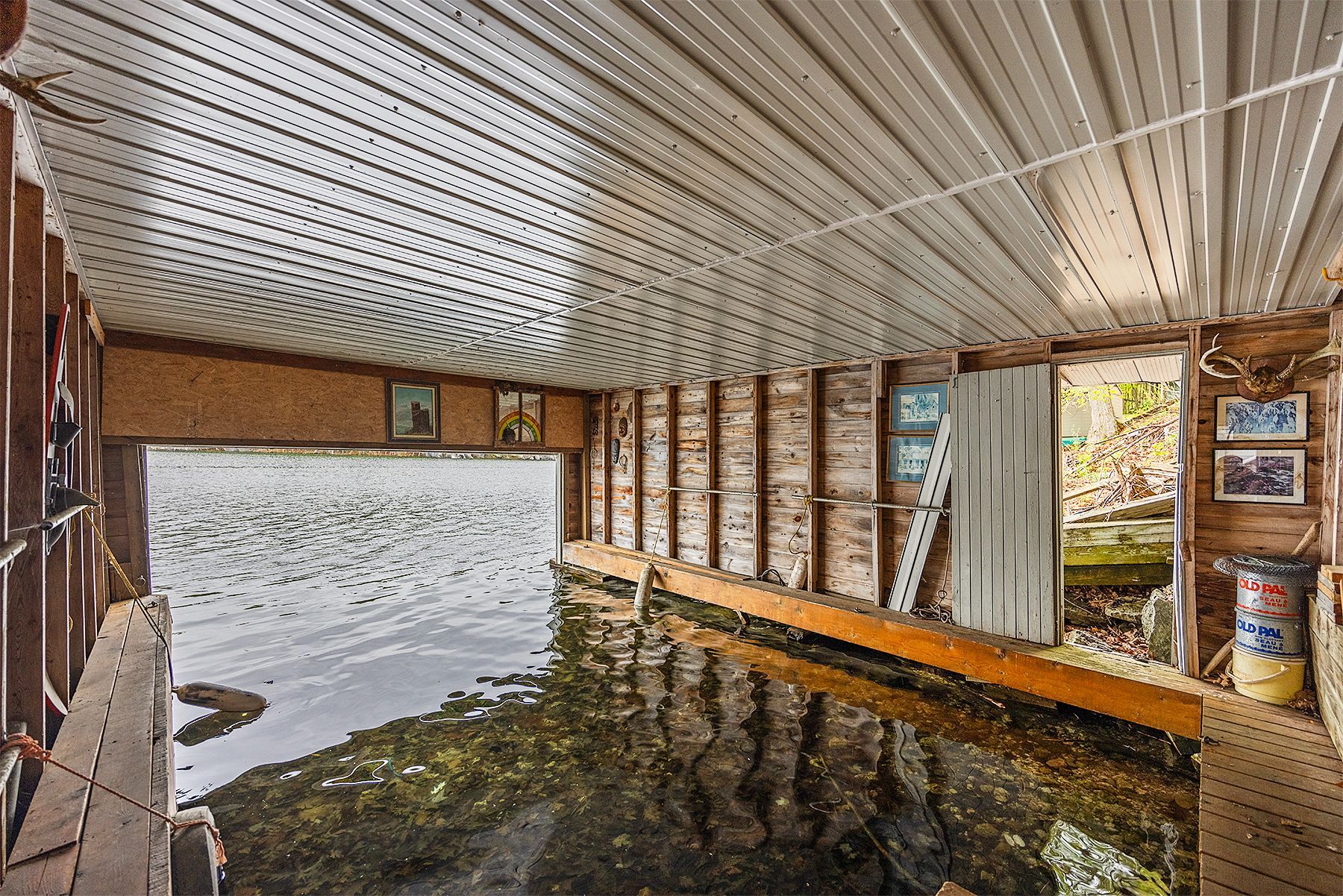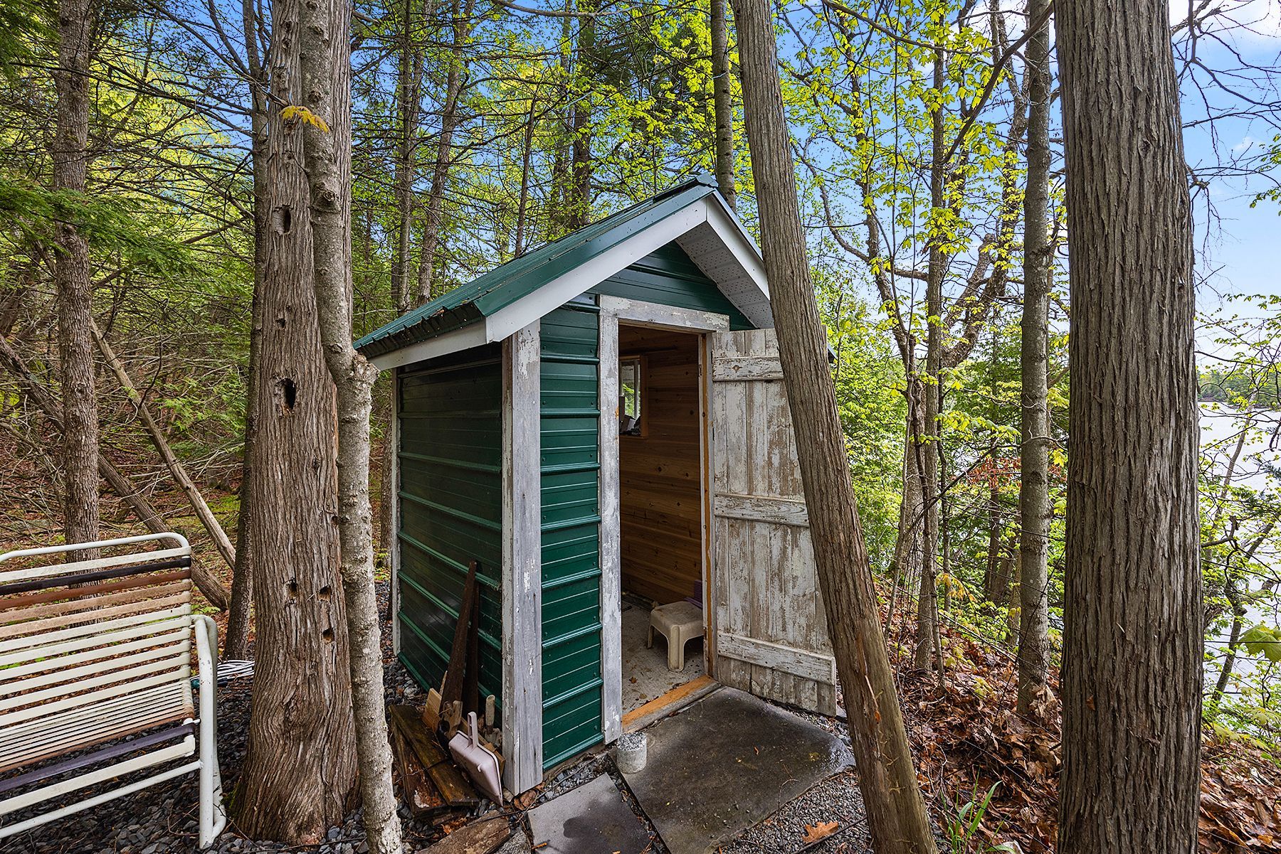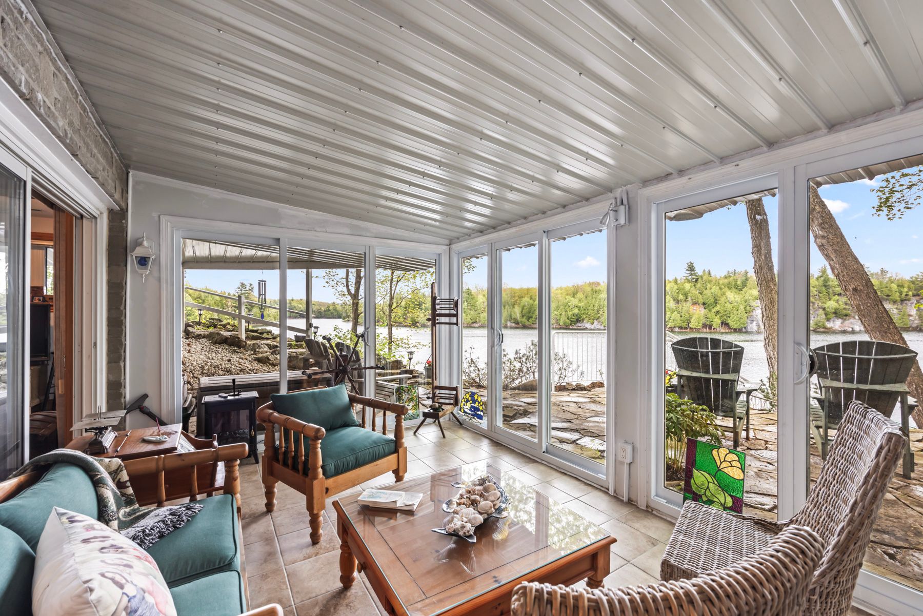 Just a short drive from downtown kingston and a quick jaunt into westport, nestled among more than 20 varieties of mature trees, on spring fed buck lake and in the canadian shield, this prestigious stone, raised bungalow is waiting for you to call home. The main floor boasts floor to ceiling windows and patio doors to the wrap around deck and clear, 180 degree view of crown land including exclusive direct sight of the famous local landmark, pulpit island with the iconic "devil's pulpit". The lower level, which is a walk-out, has two additional bedrooms (that could be 3), a 4-piece bathroom, laundry closet, cozy rec room with propane fireplace and like upstairs, floor to ceiling windows and patio doors so that you never lost the view. You walk out into a three season space under the deck, here you'll spend many nights playing cards/games. Just a few steps from the main house is a beautiful 4 season guest house, complete with a single/double bunk bed, toilet, sink and outdoor shower. Take the stone steps down to the crystal clear and deep shoreline, pop open the cabana and host the best dock party around! There is plenty of room on the dock for all sorts of activities and the original solid boat house is ready, waiting to house your watercraft of choice. The period style of the building's living space (2,078 sq ft) is enhanced by artful, expansive and expensive landscaping of local stone and materials; patios, pathways, limestone steps, iron railings, border rock fences, 2 large rough cut board and batten pine sheds, with steel roofs to match the main house! Upgraded septic system, brand new kohler-generator, and bunkhouse cabin. This is a home that needs to be seen and experienced in person!