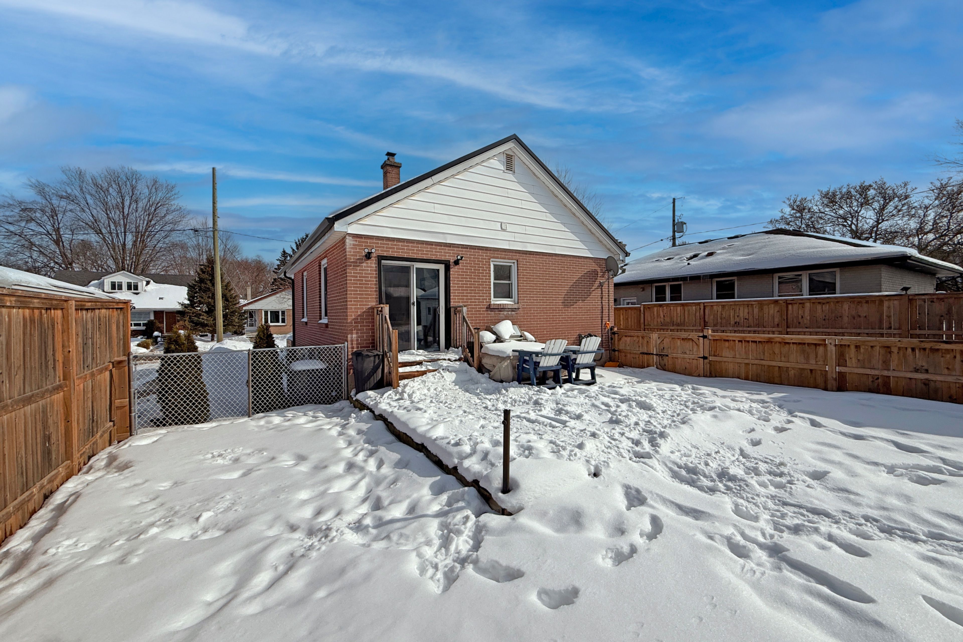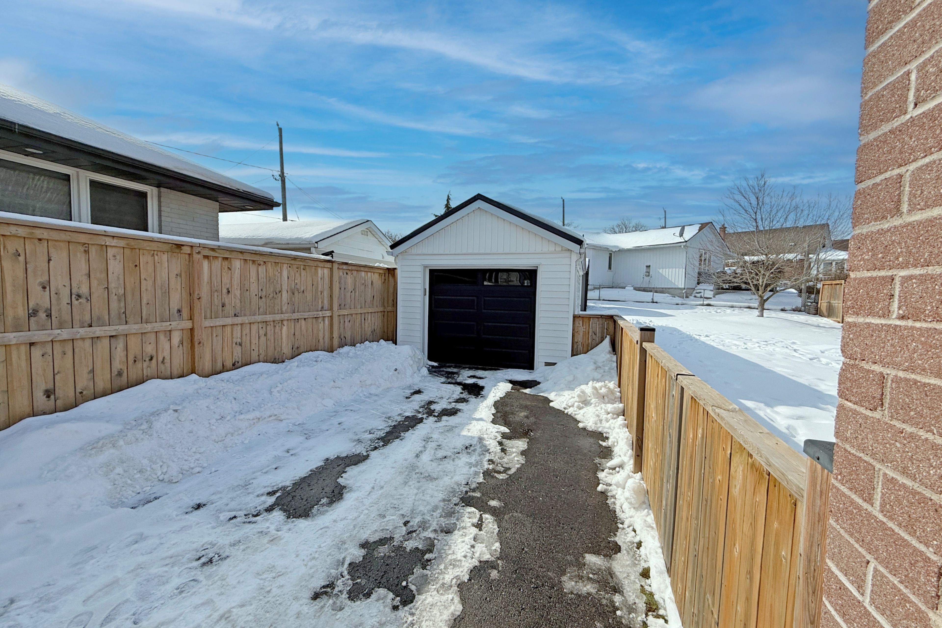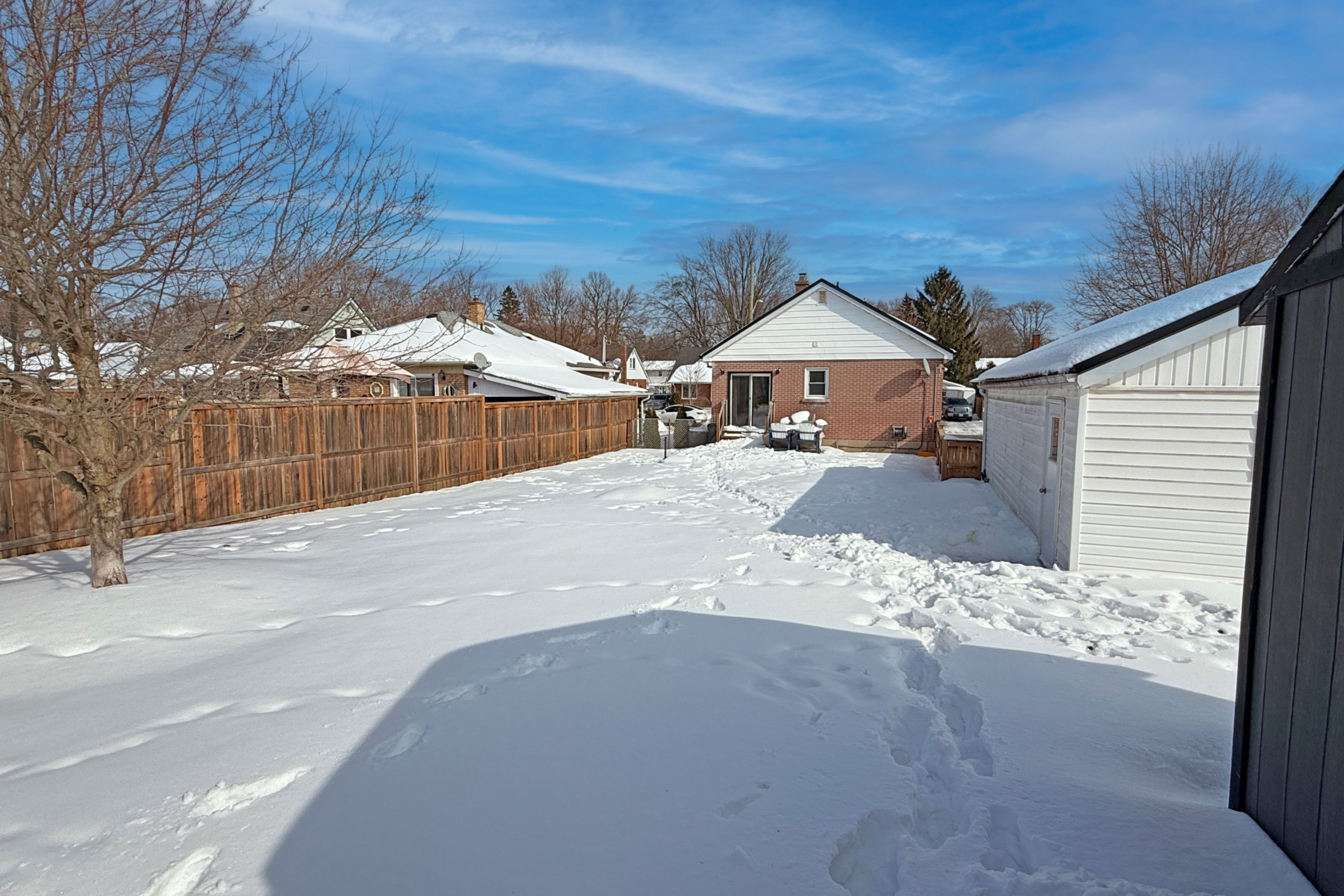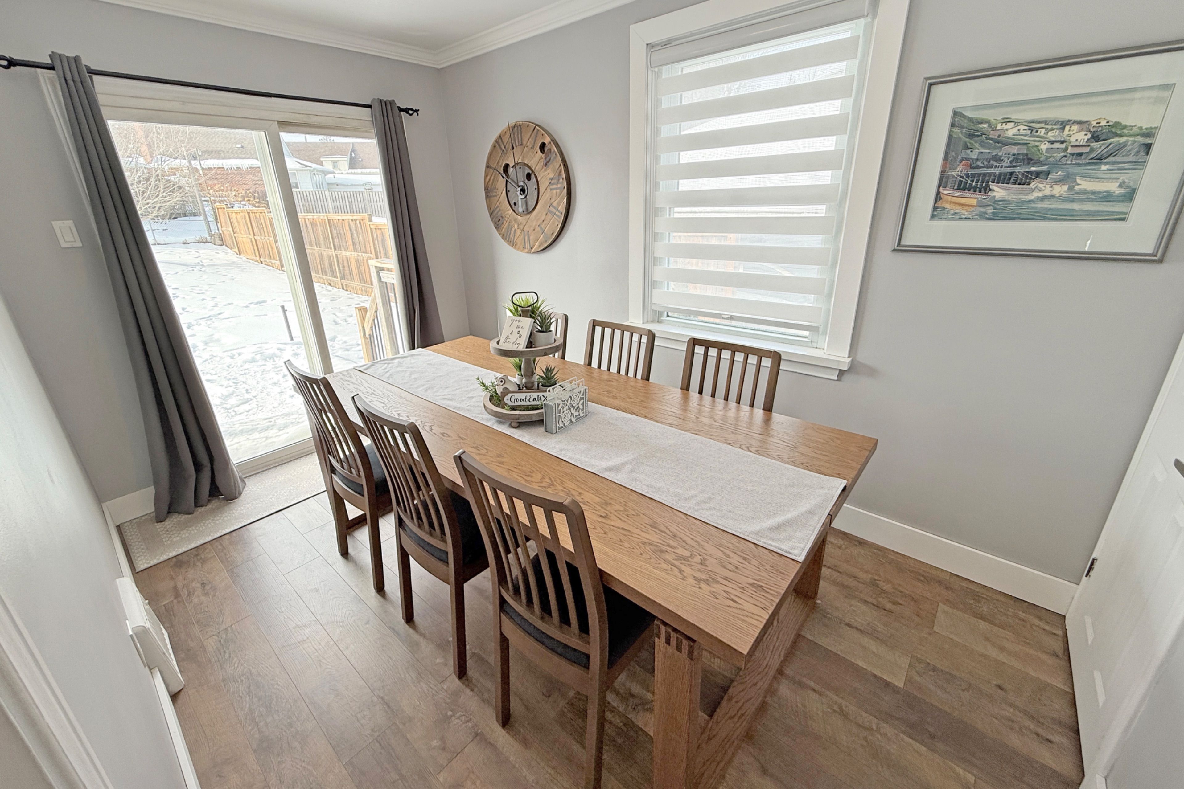 Immaculate two-bedroom bungalow on a quiet street with a large yard. This beautifully updated home features an open-concept layout ideal for entertaining, with a bright living room offering a large window for natural light. Living room flows into the updated kitchen with ample storage. There are two bedrooms on the main floor, with the second currently used as a dining room and featuring patio doors that lead to the back deck. The finished lower level includes a spacious family room perfect for movie nights or watching the game, along with an office, large utility/laundry room, and cold storage. A long driveway leads to the heated garage, and the fully fenced backyard offers a shed and plenty of space for gardening, kids, and pets. Recent updates include the porch (2021), house roof (2022), fence (2023), kitchen (2023), eavestroughs and downspouts (2023), garage door (2023), garage roof (2024), and a/c rental (2024).