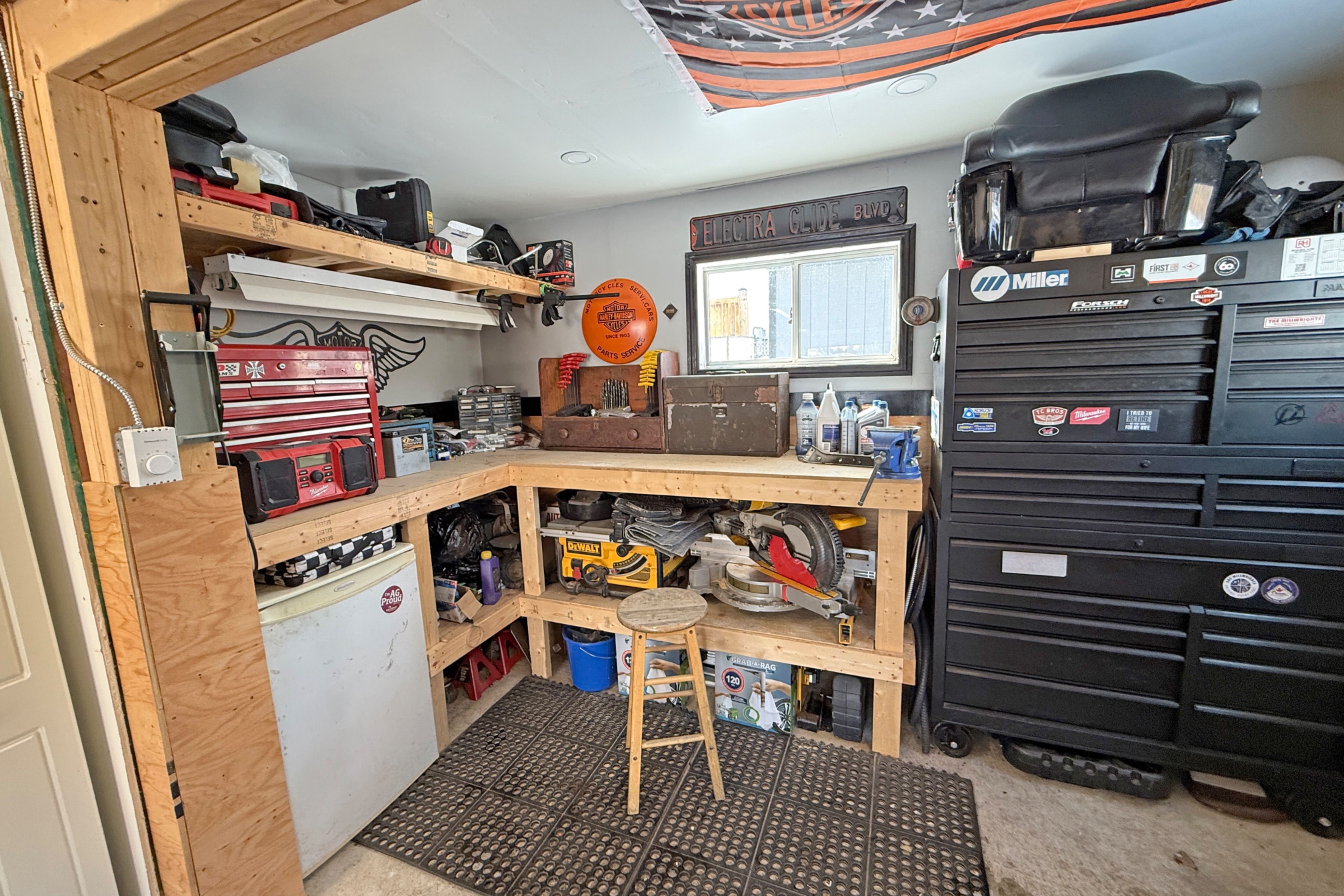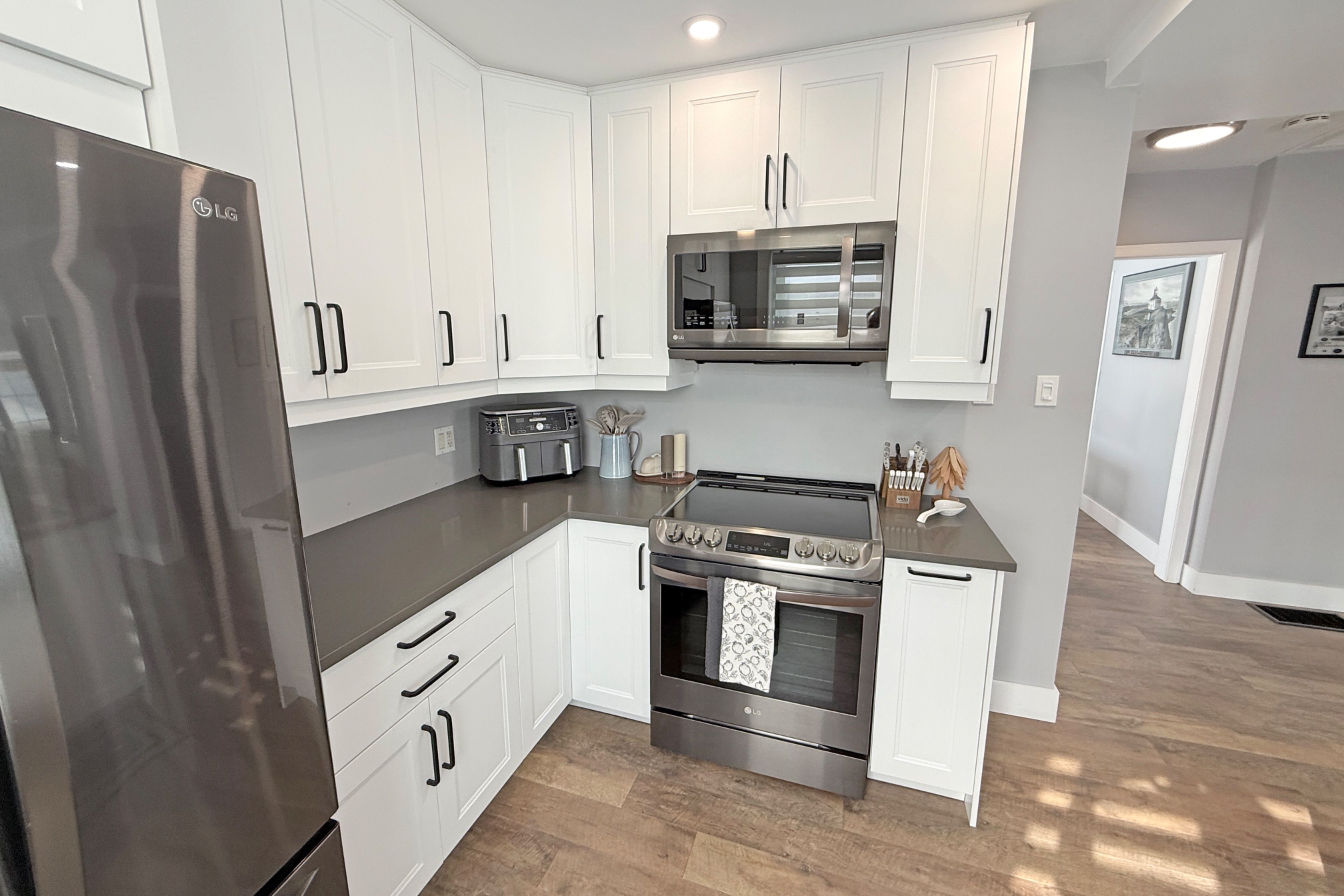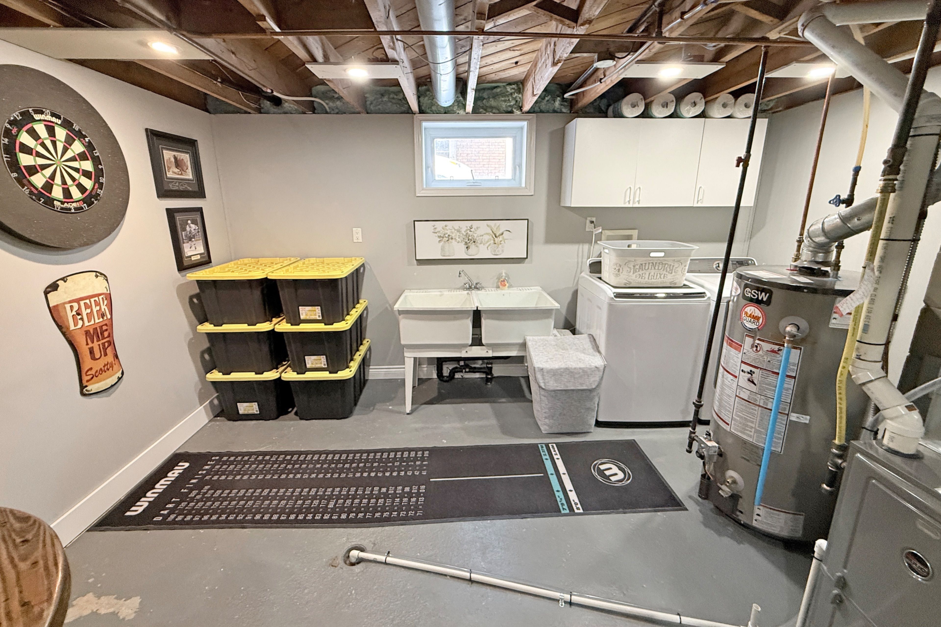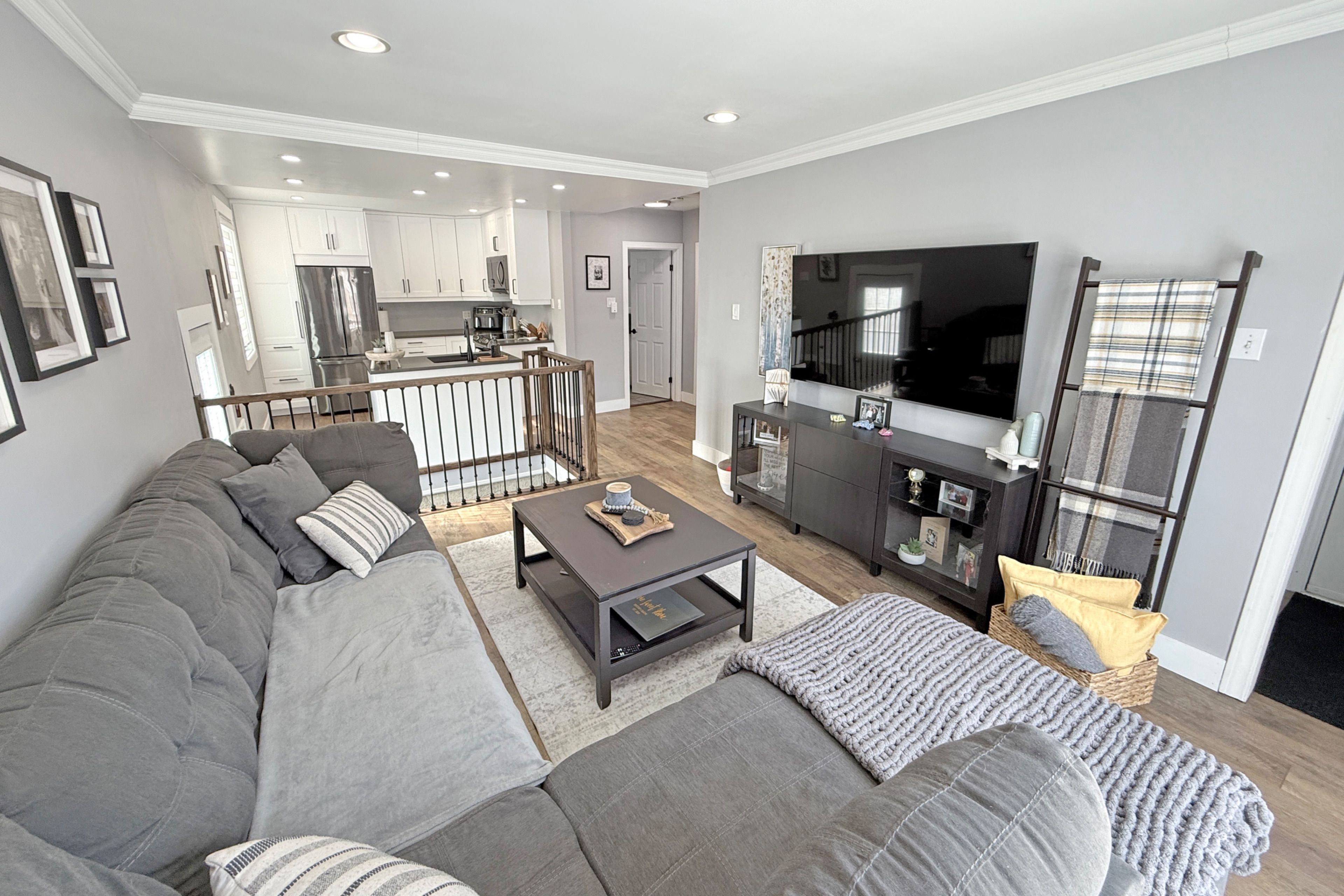 Immaculate two-bedroom bungalow on a quiet street with a large yard. This beautifully updated home features an open-concept layout ideal for entertaining, with a bright living room offering a large window for natural light. Living room flows into the updated kitchen with ample storage. There are two bedrooms on the main floor, with the second currently used as a dining room and featuring patio doors that lead to the back deck. The finished lower level includes a spacious family room perfect for movie nights or watching the game, along with an office, large utility/laundry room, and cold storage. A long driveway leads to the heated garage, and the fully fenced backyard offers a shed and plenty of space for gardening, kids, and pets. Recent updates include the porch (2021), house roof (2022), fence (2023), kitchen (2023), eavestroughs and downspouts (2023), garage door (2023), garage roof (2024), and a/c rental (2024).