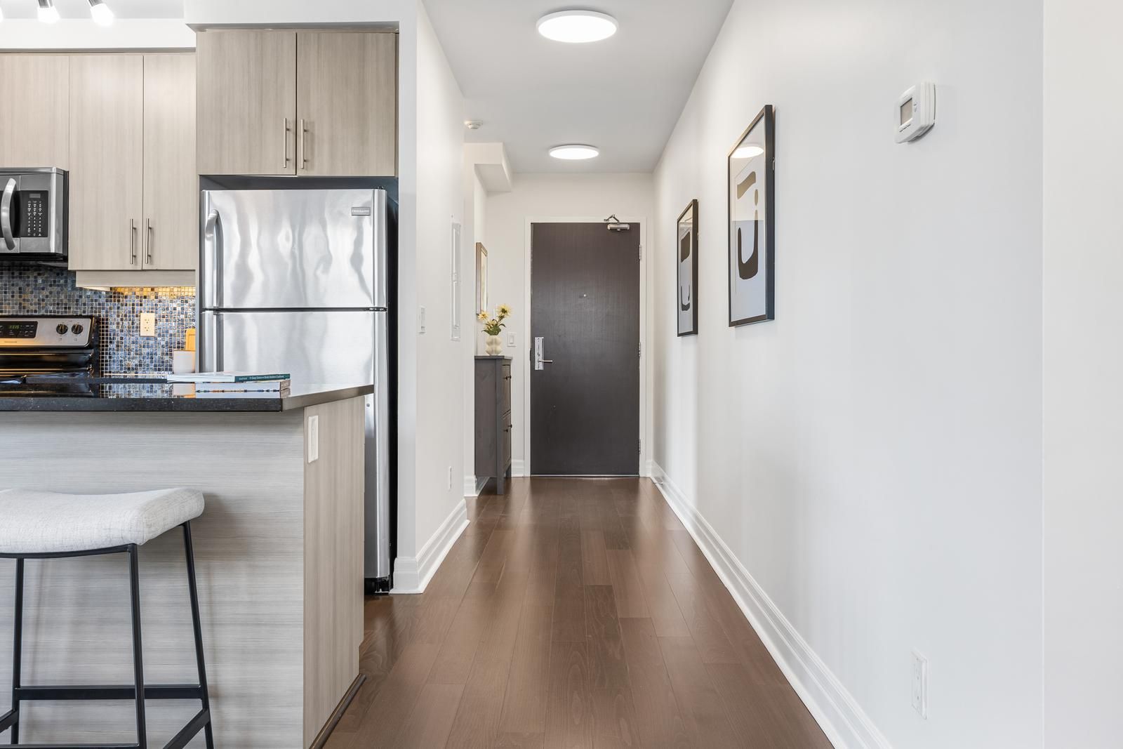 Welcome to exceptional urban living in the heart of downtown markham! This bright and spacious 2-bedroom + den condo is a true showstopper - thoughtfully designed with a split-bedroom layout that delivers both privacy and remarkable functionality rarely found in condo living. Floor-to-ceiling windows flood the open-concept living and dining area with natural light, creating an inviting atmosphere perfect for everyday living and entertaining. The stylish modern kitchen features stainless steel appliances, a sleek breakfast bar, and ample cabinetry, seamlessly flowing into the main living area with a walk-out to an oversized private terrace - a rare urban luxury and an entertainer's dream. The split layout places the primary bedroom on one side of the unit, offering a true retreat complete with two closets and a spa-inspired 4-piece ensuite featuring a walk-in shower. The generously sized second bedroom sits on the opposite end, offering guests or family members their own private space, serviced by an additional 3-piece bathroom - also with a walk-in shower. The versatile den rounds out this intelligent floorplan, functioning beautifully as a home office or easily converted into a third bedroom. For those looking to downsize without compromise, this is the upgrade you've been waiting for - all the space, luxury, and style of a premium home, wrapped in the ease and convenience of condo living. Residents enjoy access to world-class amenities including 24-hour concierge, party room, indoor pool, sauna, media room, and a rooftop terrace. Unbeatable location just minutes to highways 404 & 407, steps to viva transit and go train access, and walking distance to york university - surrounded by cf markville, dining, medical facilities, the ymca, and everyday conveniences. A perfect opportunity for end-users and investors alike - modern living, exceptional outdoor space, and a prime location all in one.