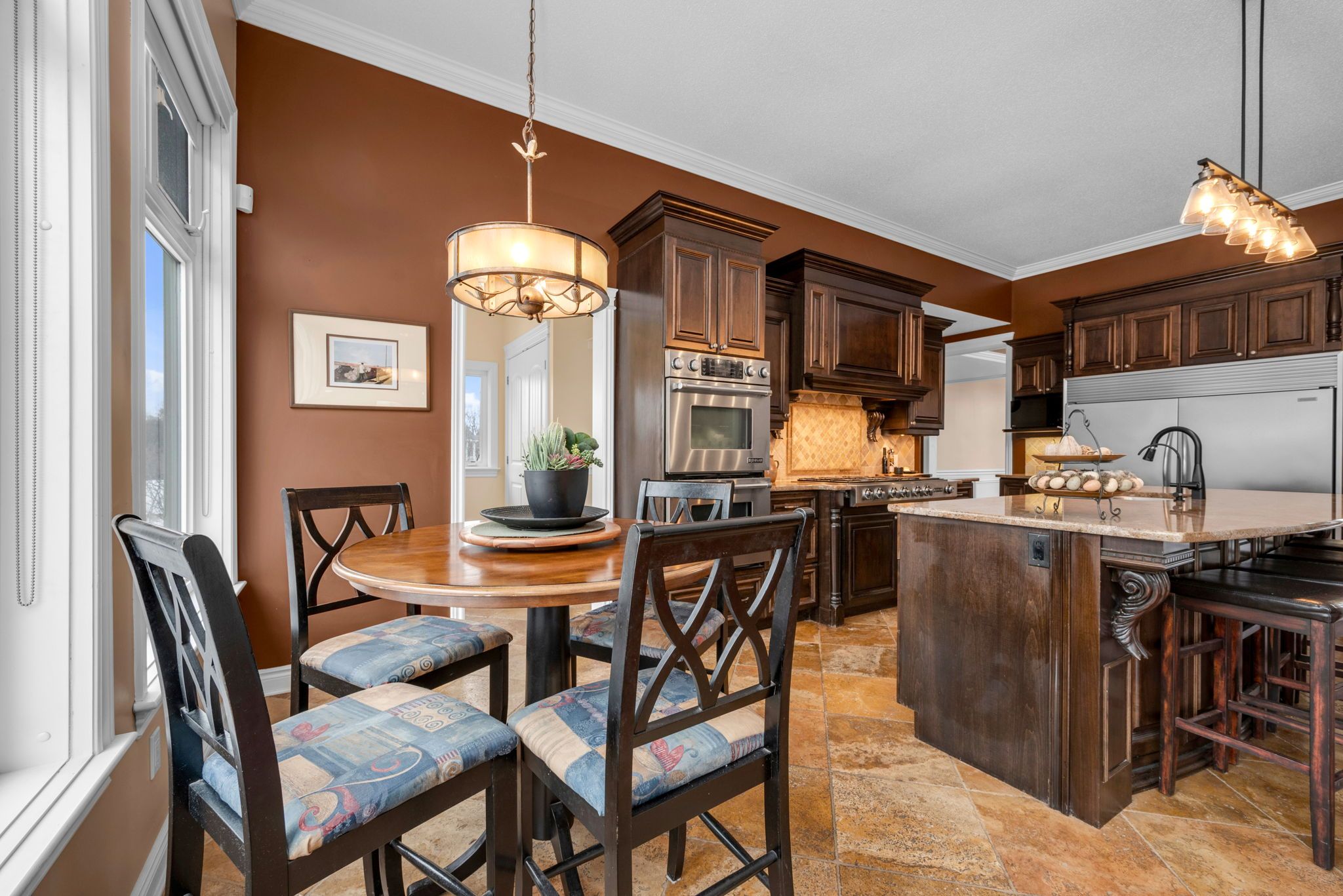 • Gourmet kitchen features granite countertops and JennAir appliances.