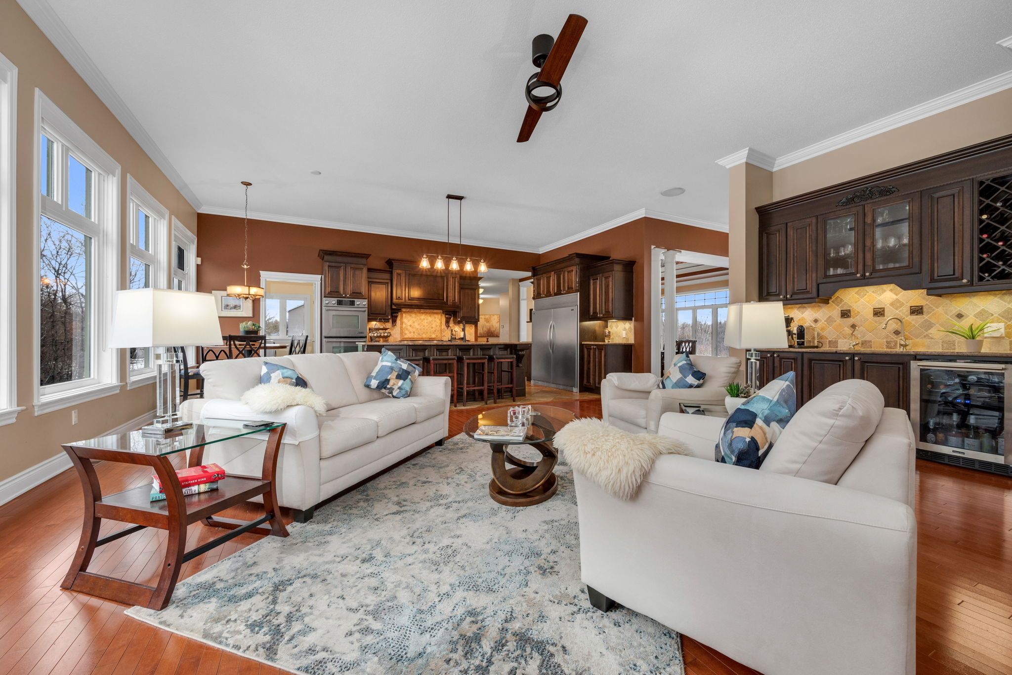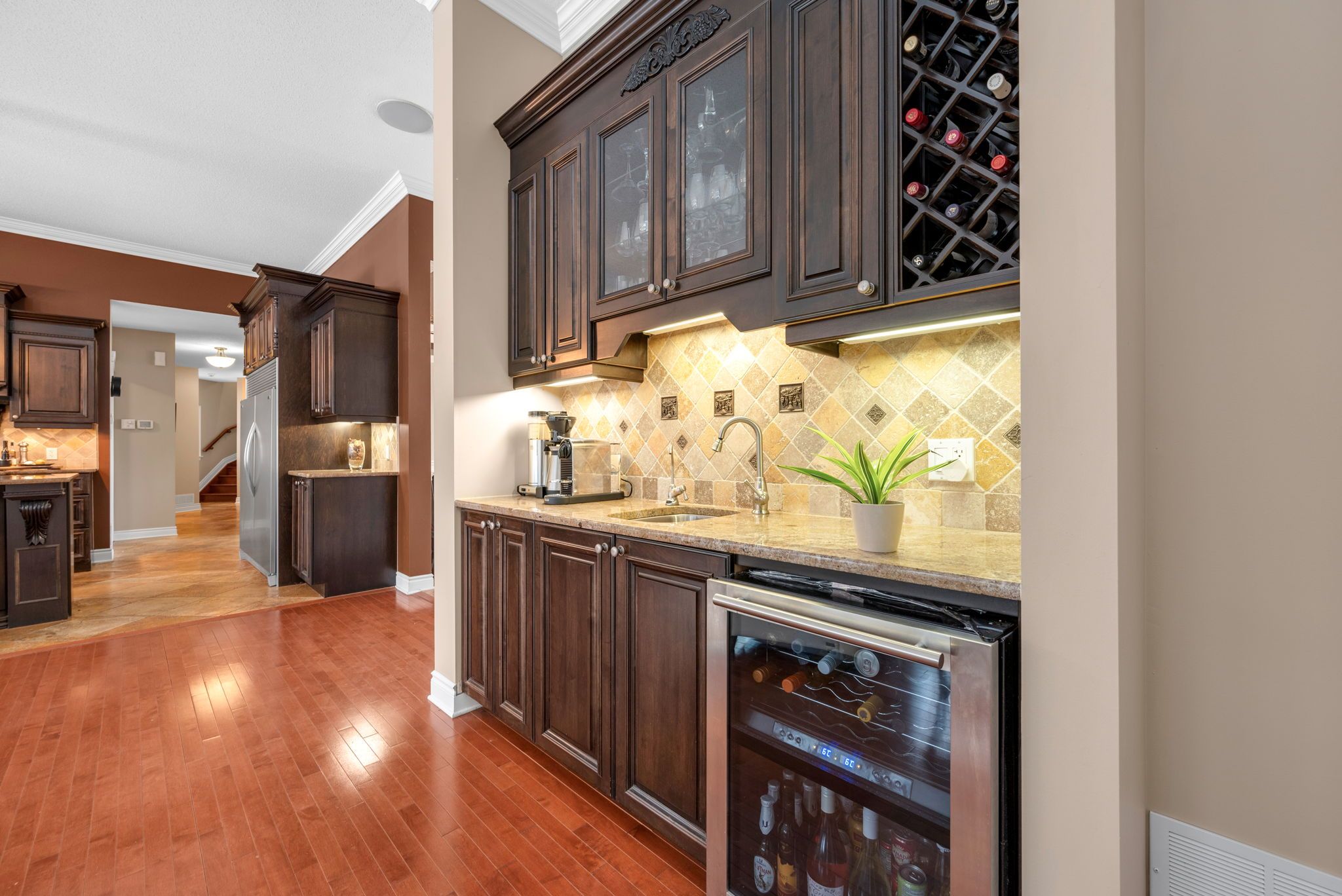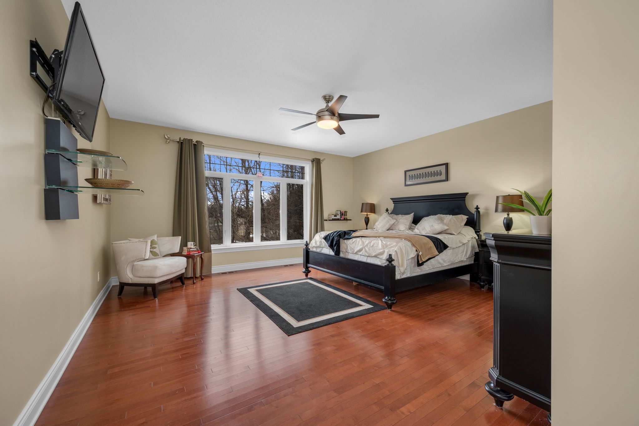 Set on a private, wooded 1. 97-acre executive lot just 20 minutes from downtown ottawa, this custom corvinelli bungalow features over 4,800 sq. Ft. Of thoughtfully designed finished living space with 3+2 bedrooms and 3 full bathrooms. An extra-wide foyer welcomes you into beautifully appointed principal rooms. The living room impresses with 11ft ceilings, architectural mouldings, a warm fireplace, and expansive windows showcasing forest views. A wet bar with a beverage fridge and wine storage adds the perfect touch for entertaining while the formal dining room, framed by decorative columns, features a custom coved ceiling and provides an elegant setting for gatherings. At the heart of the home is a chef-inspired kitchen with granite countertops, a large centre island with seating, heated floors, jennair double wall ovens, a gas cooktop, and custom maple cabinetry. A spacious walk-in pantry offers excellent storage. Just beyond, the three-season sunroom with a fireplace overlooks the landscaped gardens and deck, creating a warm and inviting retreat. The private primary suite offers rich hardwood flooring, large windows, a walk-in closet, and a spa-like ensuite with heated floors, a double vanity, and an oversized walk-in shower with dual shower heads. An additional main floor bedroom, a full bathroom, and a well-designed laundry room with custom cabinetry complete this level. A bonus room above the garage offers the perfect space for teenage retreat, guest room, or studio. The walk-out lower level is ideal for guests or multigenerational living with a bright family room, accessory kitchen, two bedrooms, a full bathroom with heated floors, plus flexible spaces including a home theatre/gym, office, and workshop. Additional highlights include a three-car garage with 9ft doors and ev charger connection, a 17kw generac generator, and upgraded insulated siding (2024). An exceptional property offering luxury, space, craftsmanship and privacy.