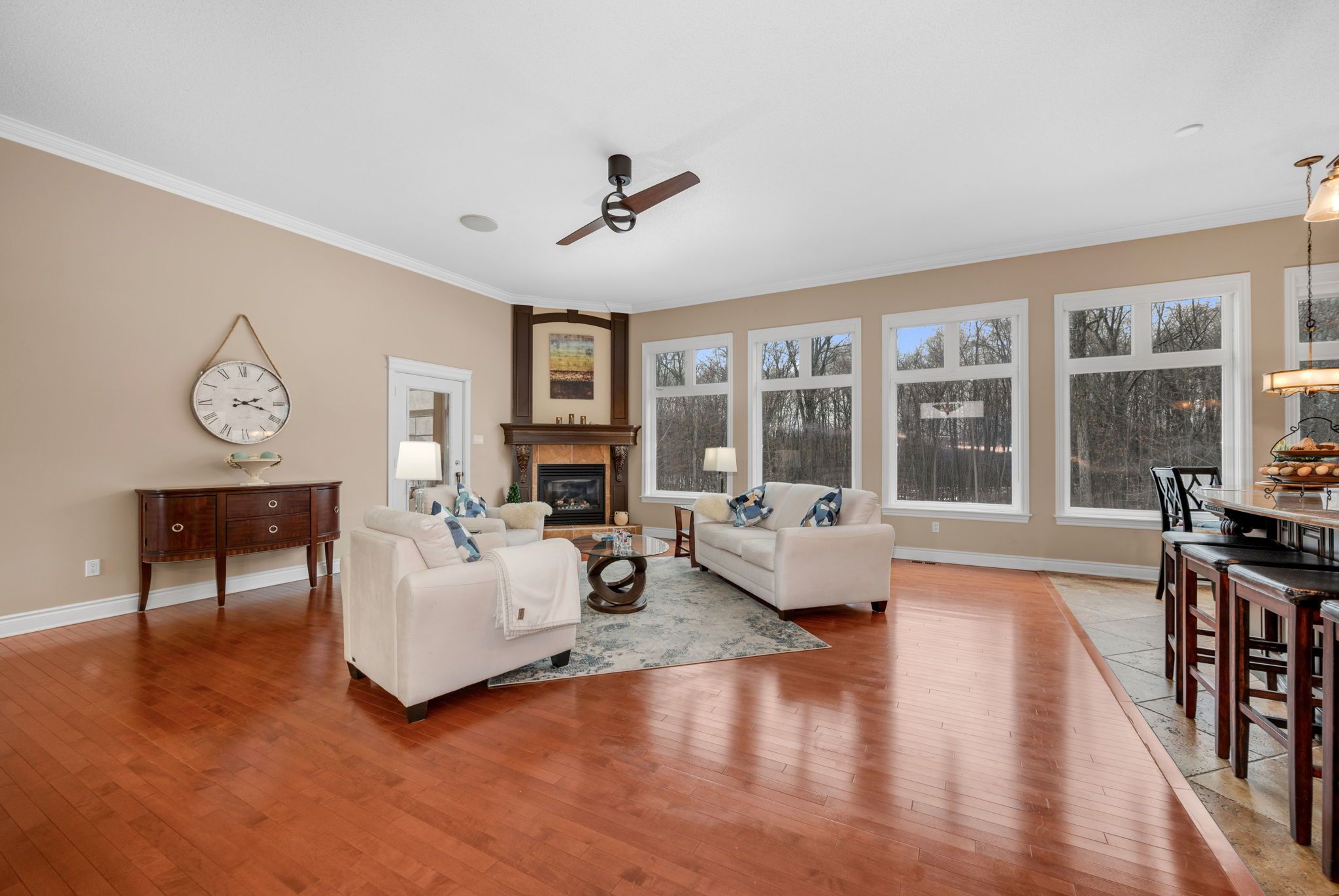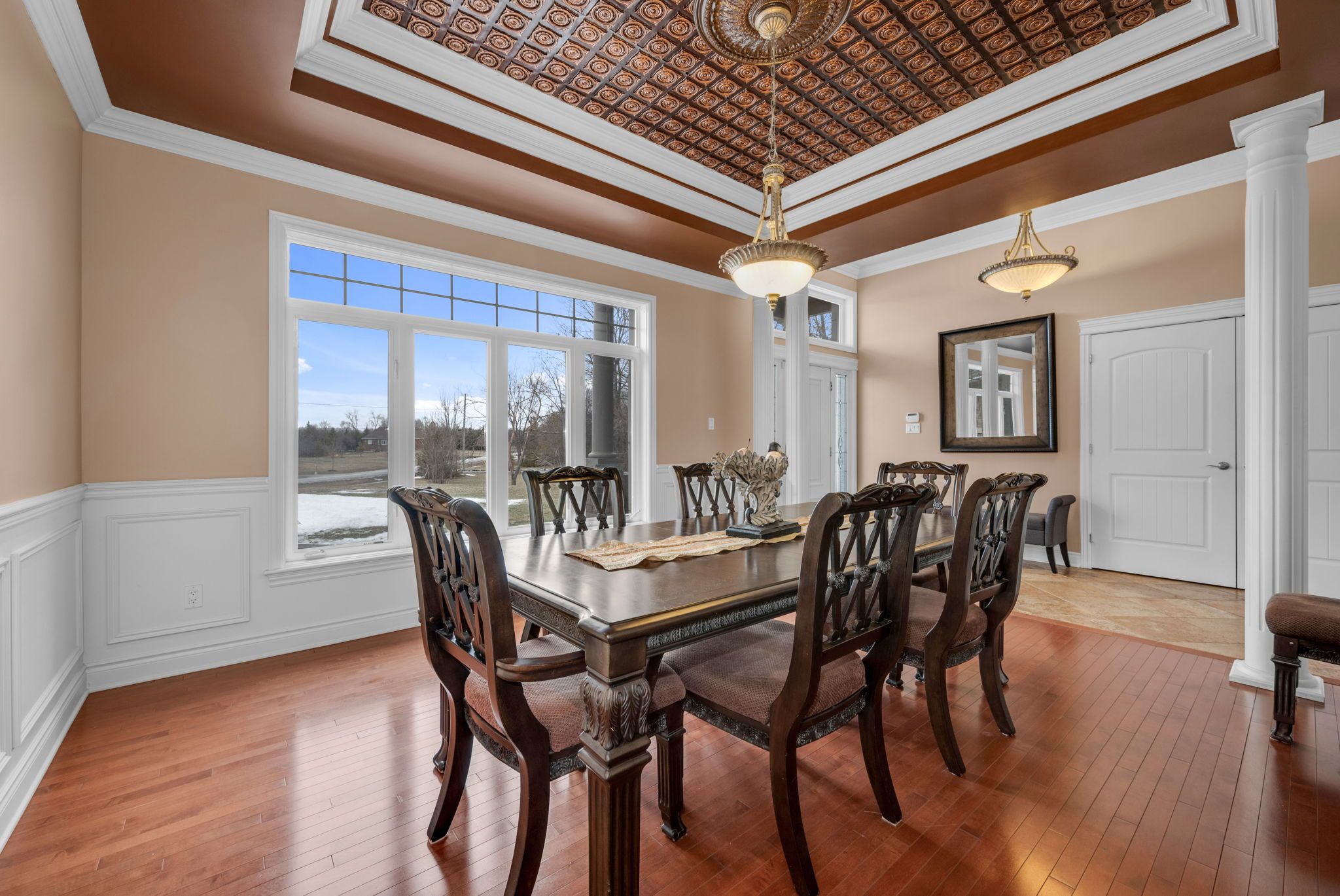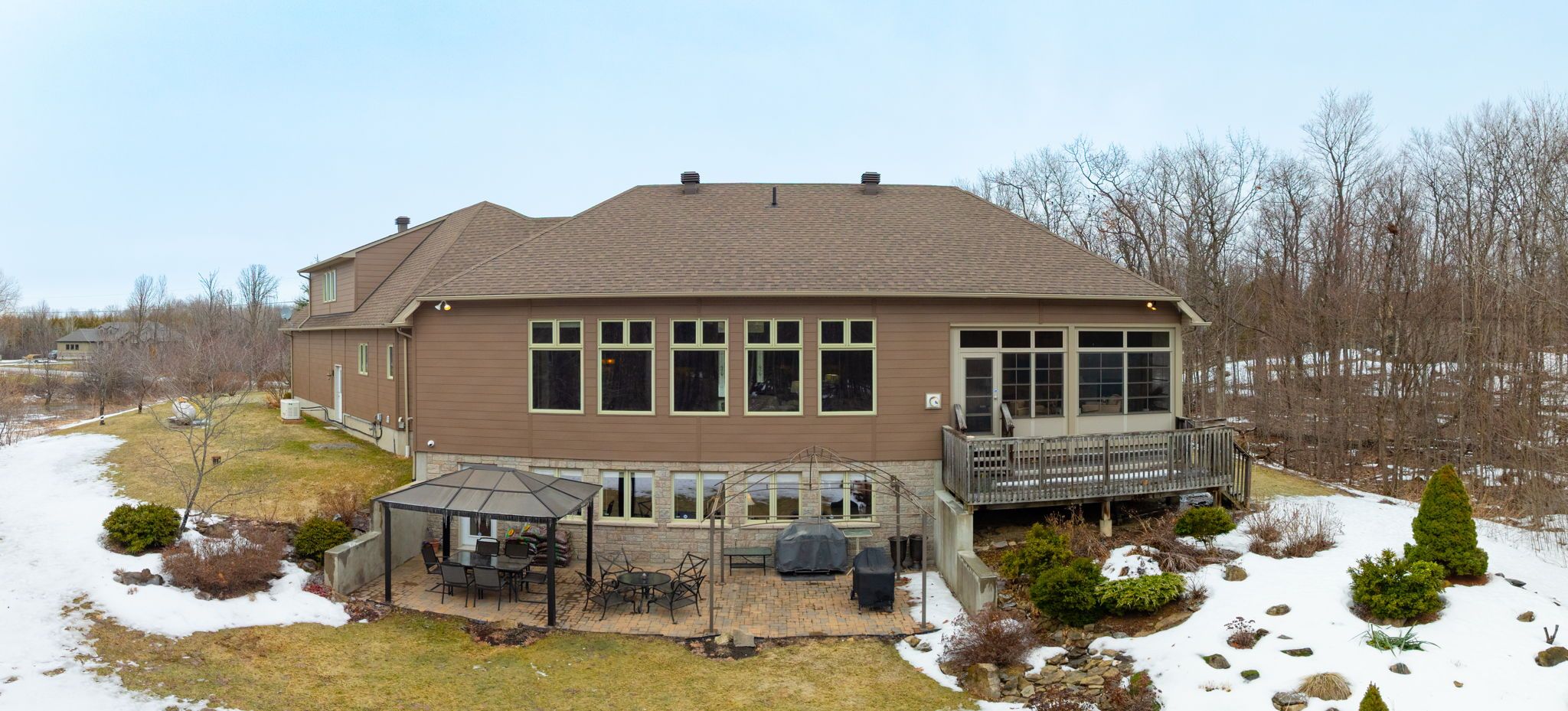 Set on a private, wooded 1. 97-acre executive lot just 20 minutes from downtown ottawa, this custom corvinelli bungalow features over 4,800 sq. Ft. Of thoughtfully designed finished living space with 3+2 bedrooms and 3 full bathrooms. An extra-wide foyer welcomes you into beautifully appointed principal rooms. The living room impresses with 11ft ceilings, architectural mouldings, a warm fireplace, and expansive windows showcasing forest views. A wet bar with a beverage fridge and wine storage adds the perfect touch for entertaining while the formal dining room, framed by decorative columns, features a custom coved ceiling and provides an elegant setting for gatherings. At the heart of the home is a chef-inspired kitchen with granite countertops, a large centre island with seating, heated floors, jennair double wall ovens, a gas cooktop, and custom maple cabinetry. A spacious walk-in pantry offers excellent storage. Just beyond, the three-season sunroom with a fireplace overlooks the landscaped gardens and deck, creating a warm and inviting retreat. The private primary suite offers rich hardwood flooring, large windows, a walk-in closet, and a spa-like ensuite with heated floors, a double vanity, and an oversized walk-in shower with dual shower heads. An additional main floor bedroom, a full bathroom, and a well-designed laundry room with custom cabinetry complete this level. A bonus room above the garage offers the perfect space for teenage retreat, guest room, or studio. The walk-out lower level is ideal for guests or multigenerational living with a bright family room, accessory kitchen, two bedrooms, a full bathroom with heated floors, plus flexible spaces including a home theatre/gym, office, and workshop. Additional highlights include a three-car garage with 9ft doors and ev charger connection, a 17kw generac generator, and upgraded insulated siding (2024). An exceptional property offering luxury, space, craftsmanship and privacy.