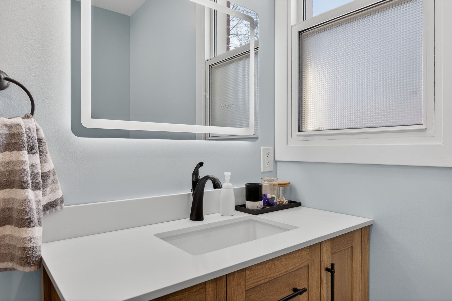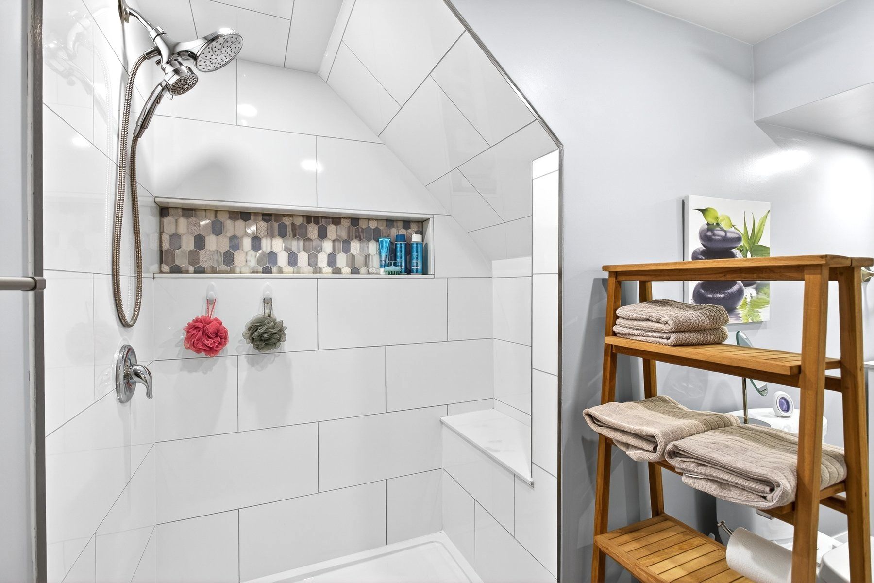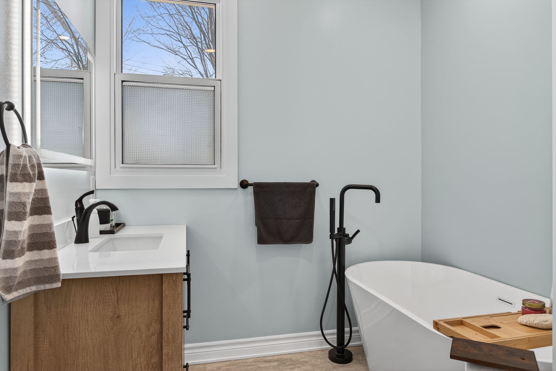 • Upper level features a spa-like soaker tub in the updated bathroom.