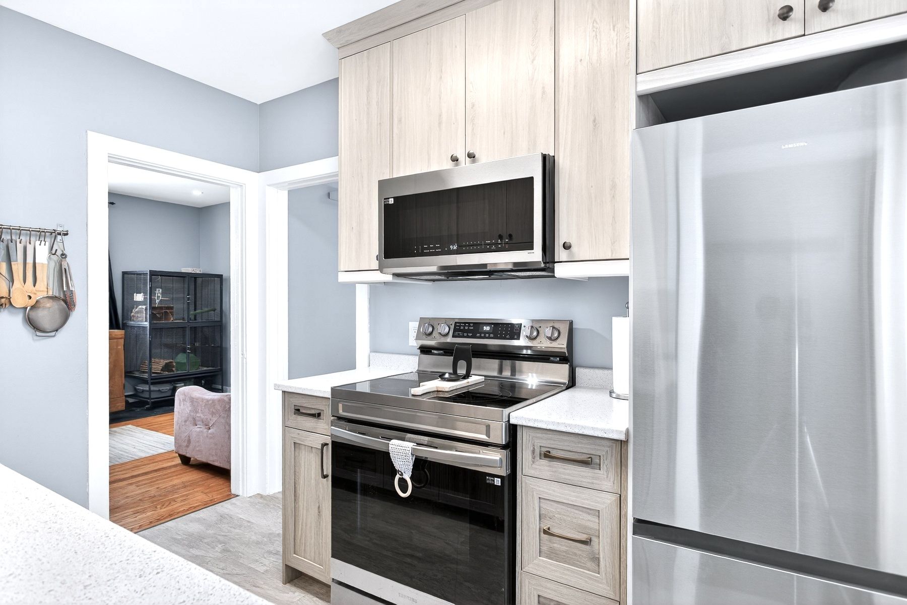 • Brand new kitchen with stainless steel appliances for modern cooking.