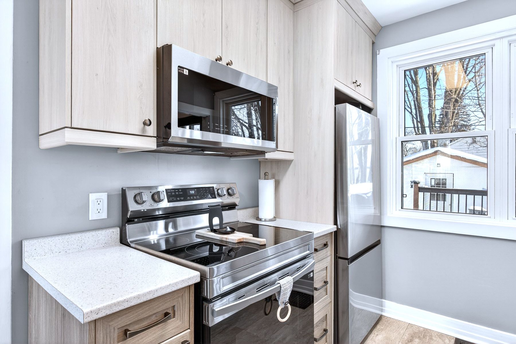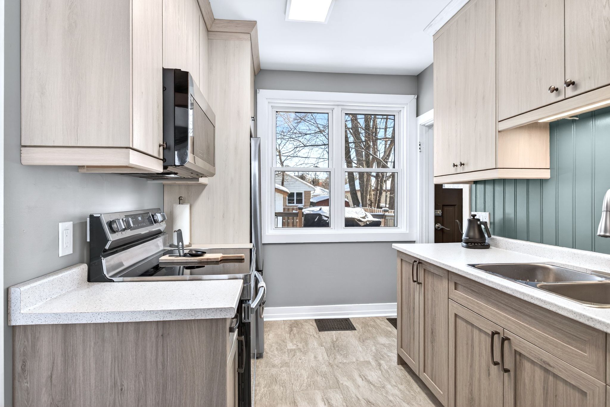 Lovely brick home set on a quiet north-end cul-de-sac, featuring a brand new 2025 kitchen with new stainless steel appliances overlooking a fully fenced, private backyard. The upper level includes a newly updated bathroom with a spa-like soaker tub, while the lower level offers a functional layout with a second new bathroom featuring a beautiful walk-in shower, quartz-topped vanity, and convenient stacked laundry. New flooring has been added in select areas, and a newer, large back deck extends the living space outdoors, with direct access to the lower level. A separate entrance provides flexibility and potential for an in-law suite. Close to trent university, transit, schools, and everyday amenities - a north-end home with meaningful updates throughout.
