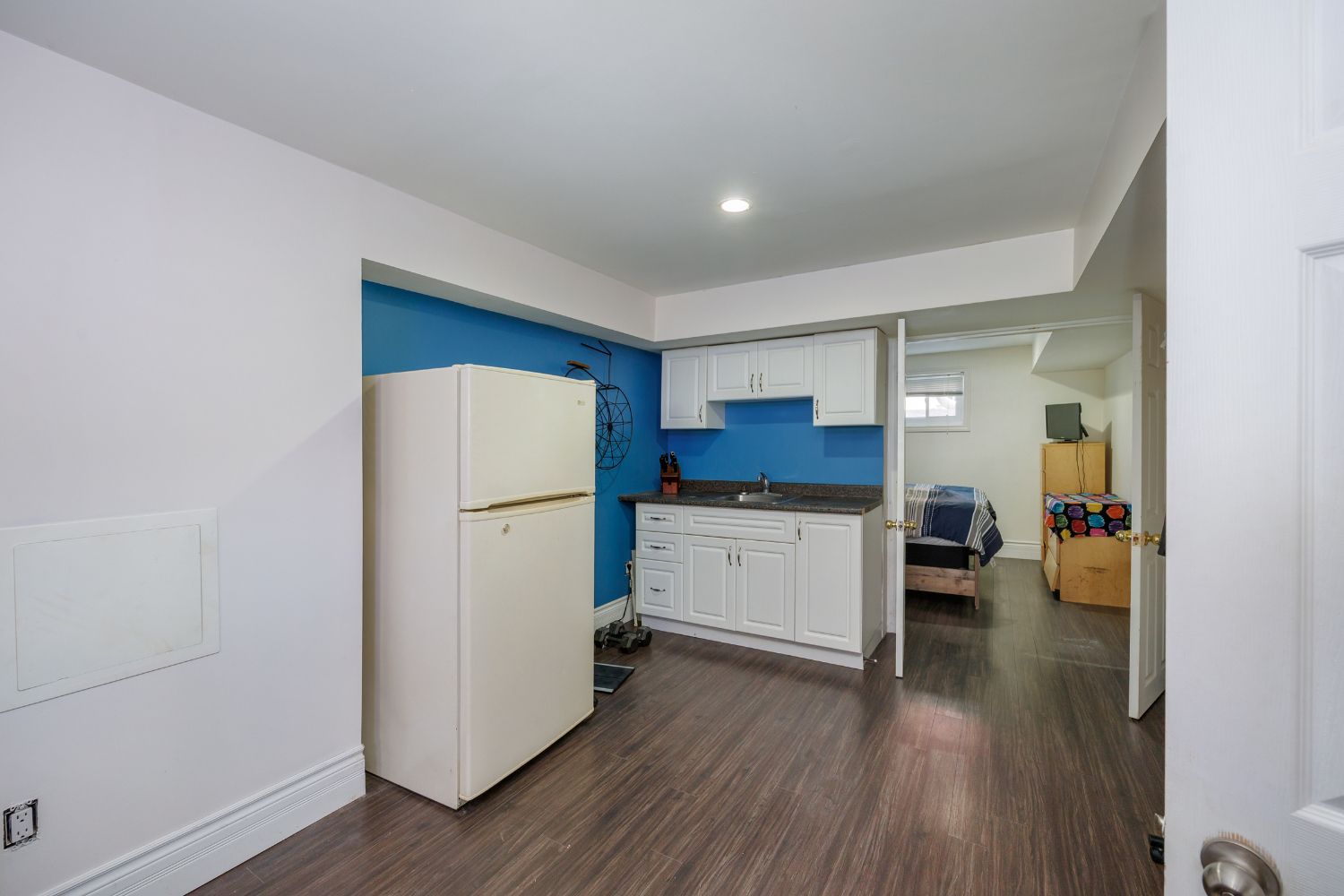 • Basement offers a finished rec room, kitchenette, and separate entrance.