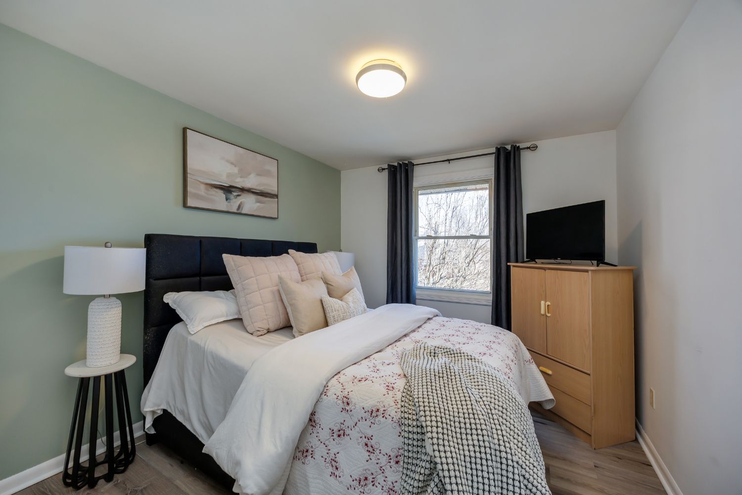 • Bright living room featuring a newer bay window for natural light.