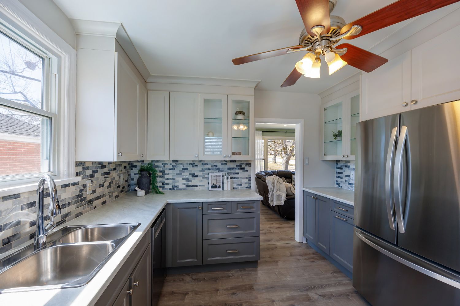 • Updated kitchen with stainless appliances and stylish glass accents.