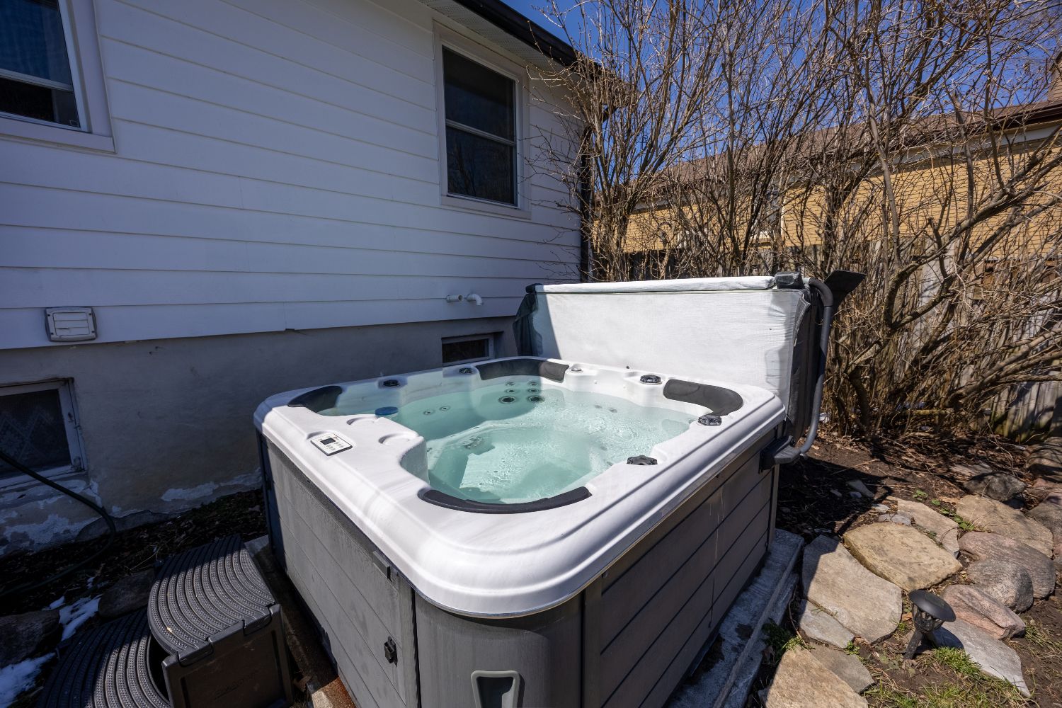 • Enjoy a hot tub and deck in a privately fenced yard.