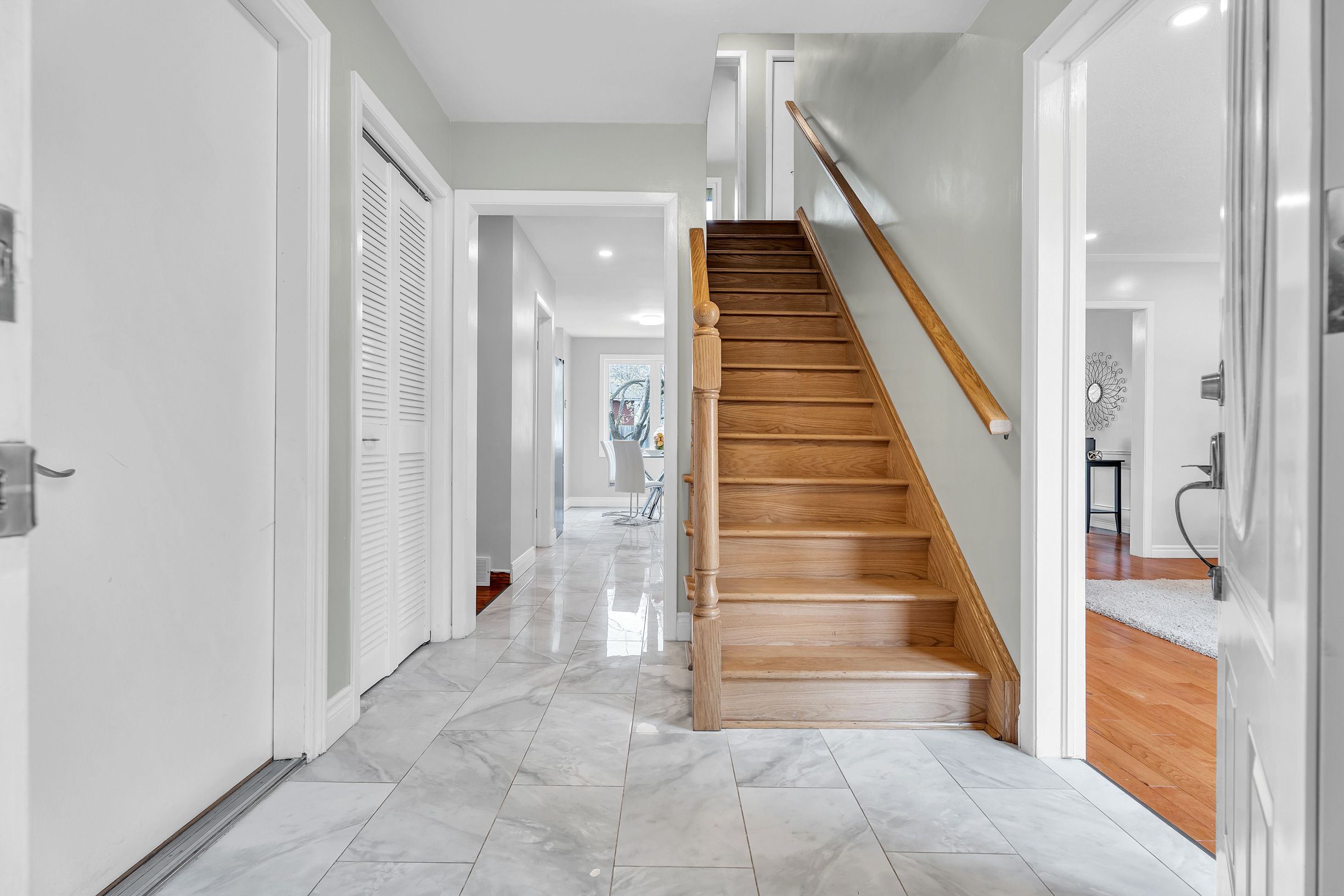 Well-maintained 2-storey home in sought-after stoney creek, set on a rare large lot with an oversized double garage. The main floor is bright and welcoming, with large front windows bringing in plenty of natural light. A comfortable living and dining area flows into an updated kitchen with a casual breakfast space, working well for everyday family life. The sunroom at the back adds extra living space and opens onto the backyard deck. Upstairs offers four good-sized bedrooms, including a primary with its own ensuite, plus a full main bath. The finished basement provides a large rec room with a wet bar and full bathroom , great for family use, entertaining, or setting up a flexible space as needed. Outside, the backyard is a standout - larger than what you typically find in the area, with plenty of room for kids, gardening, or simply enjoying the space. Recent updates include most windows (2021), exterior doors (2022), enclosed front porch (2019), furnace (2019), owned hot water tank, and a 200 amp electrical panel (2021). Located within the catchment for stoney creek ps, a. B. Lucas ss, and mtc ss. Steps to transit with a direct bus to western, and just minutes to masonville and all amenities. Move-in ready for its next family!