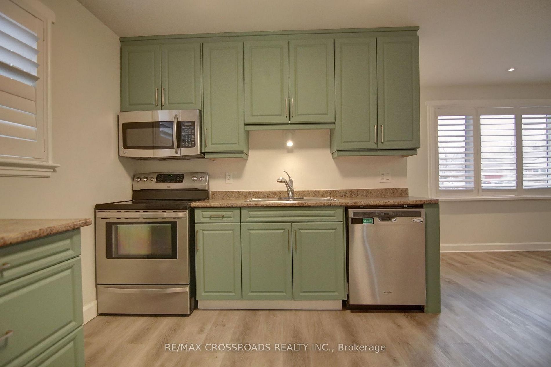 • Open-concept layout with elegant laminate flooring throughout.
