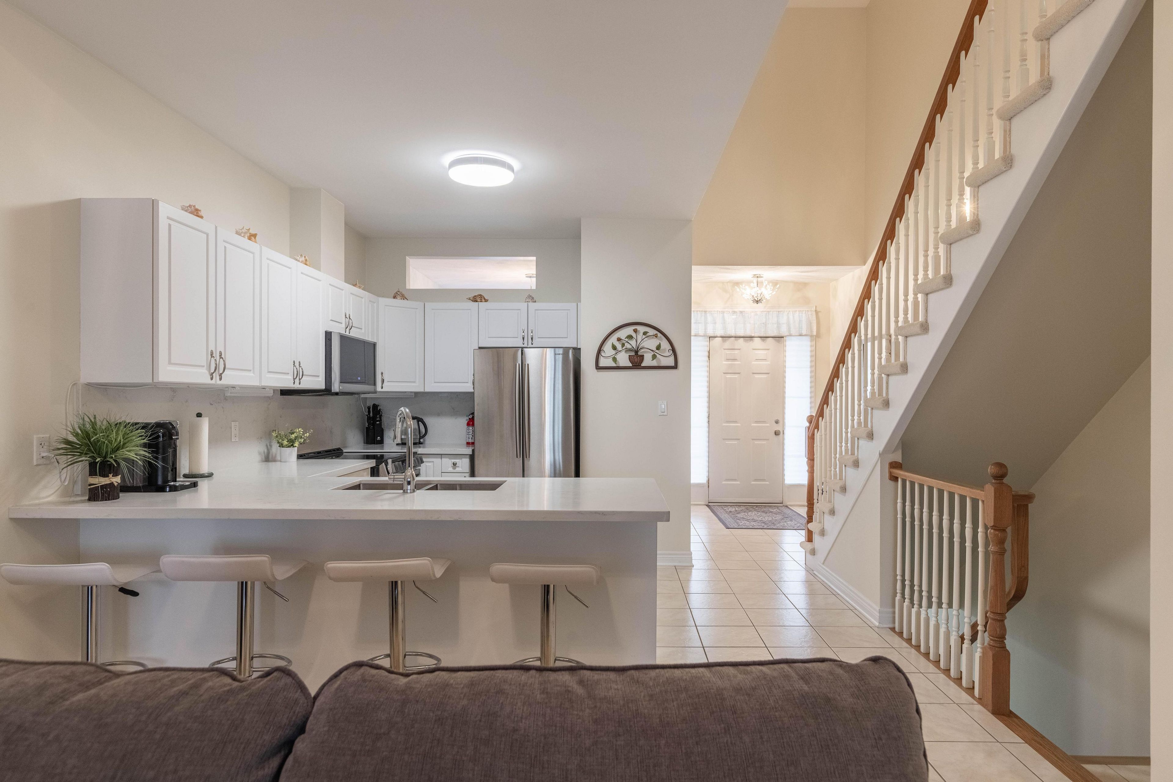 Beautiful & impeccably maintained! This townhouse condo is located in the "the courtyard", a sought after north end complex. Featuring 2 bedrooms, 2. 5 baths and a 2nd kitchenette in the basement, this floor plan is very versatile. The main floor layout features a front dining room, renovated white kitchen with quartz countertops (2023), large living room with vaulted ceilings & gas fireplace and walk-out to your rear deck. Main floor also offers a primary bedroom with walk-in closet and 4-piece ensuite privilege to the main bath. Second level is finished with an open loft area, 2nd bedroom and 4-piece bath with tub & shower. Basement level is fully finished with 2nd kitchenette, dining area, 2-piece bathroom, laundry room and over sized rec room with pot lights. Updates include furnace (2023) and central air (2023). All kitchen appliances plus washer & dryer included.