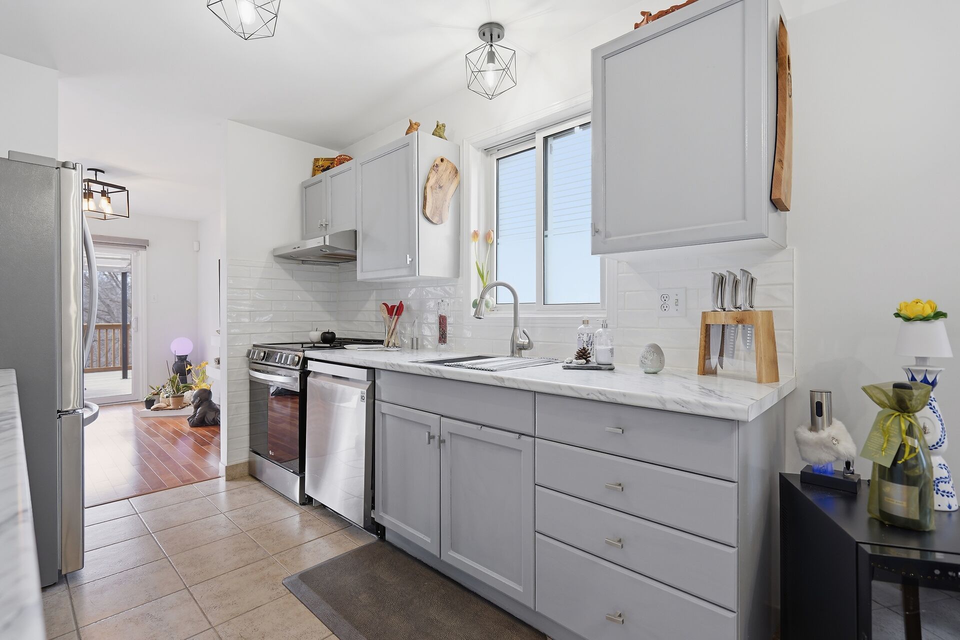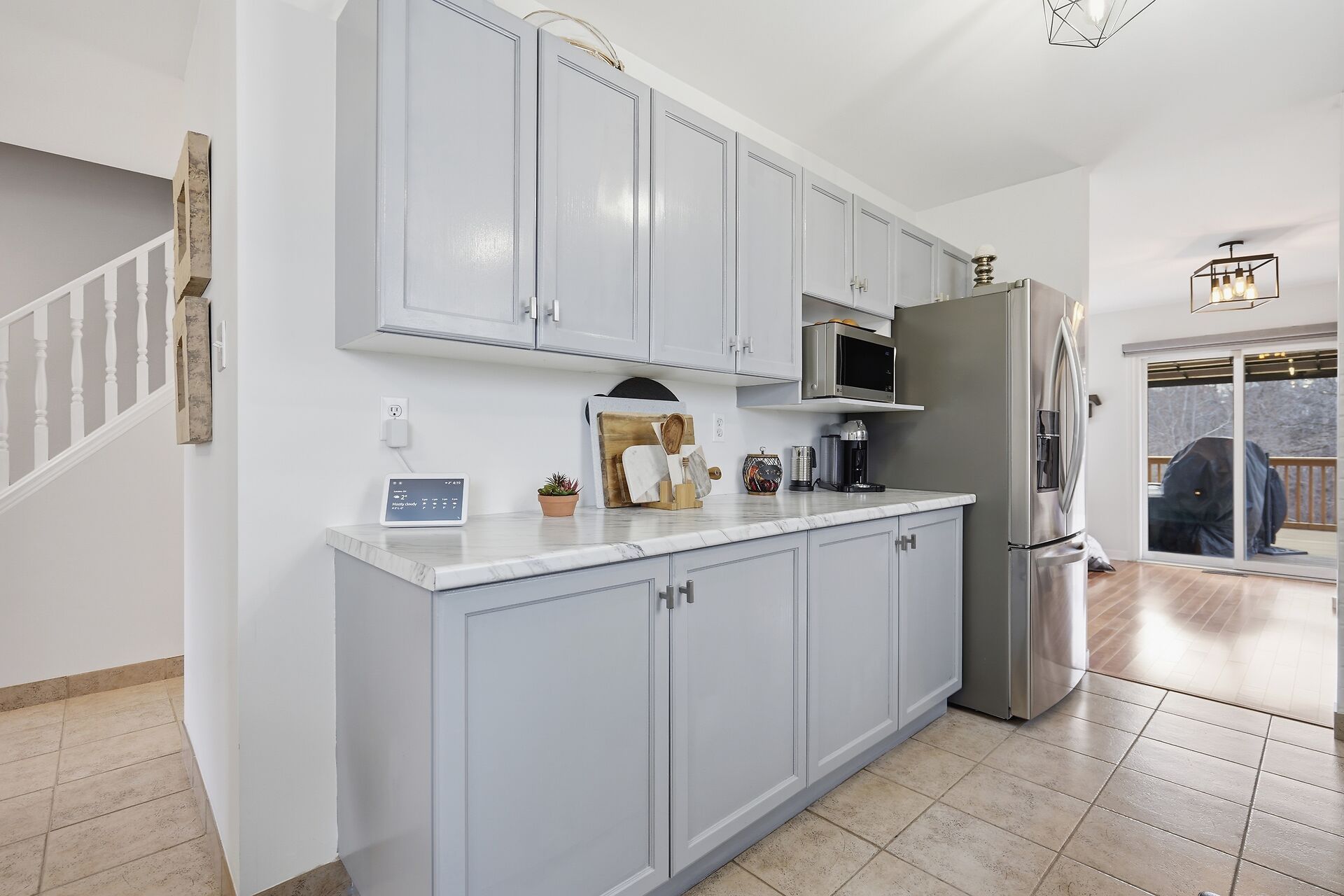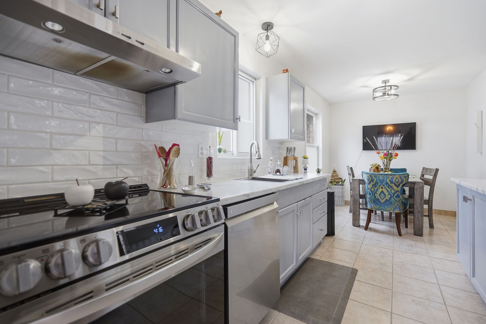 • Bright interior featuring updated flooring and upgraded kitchen appliances.