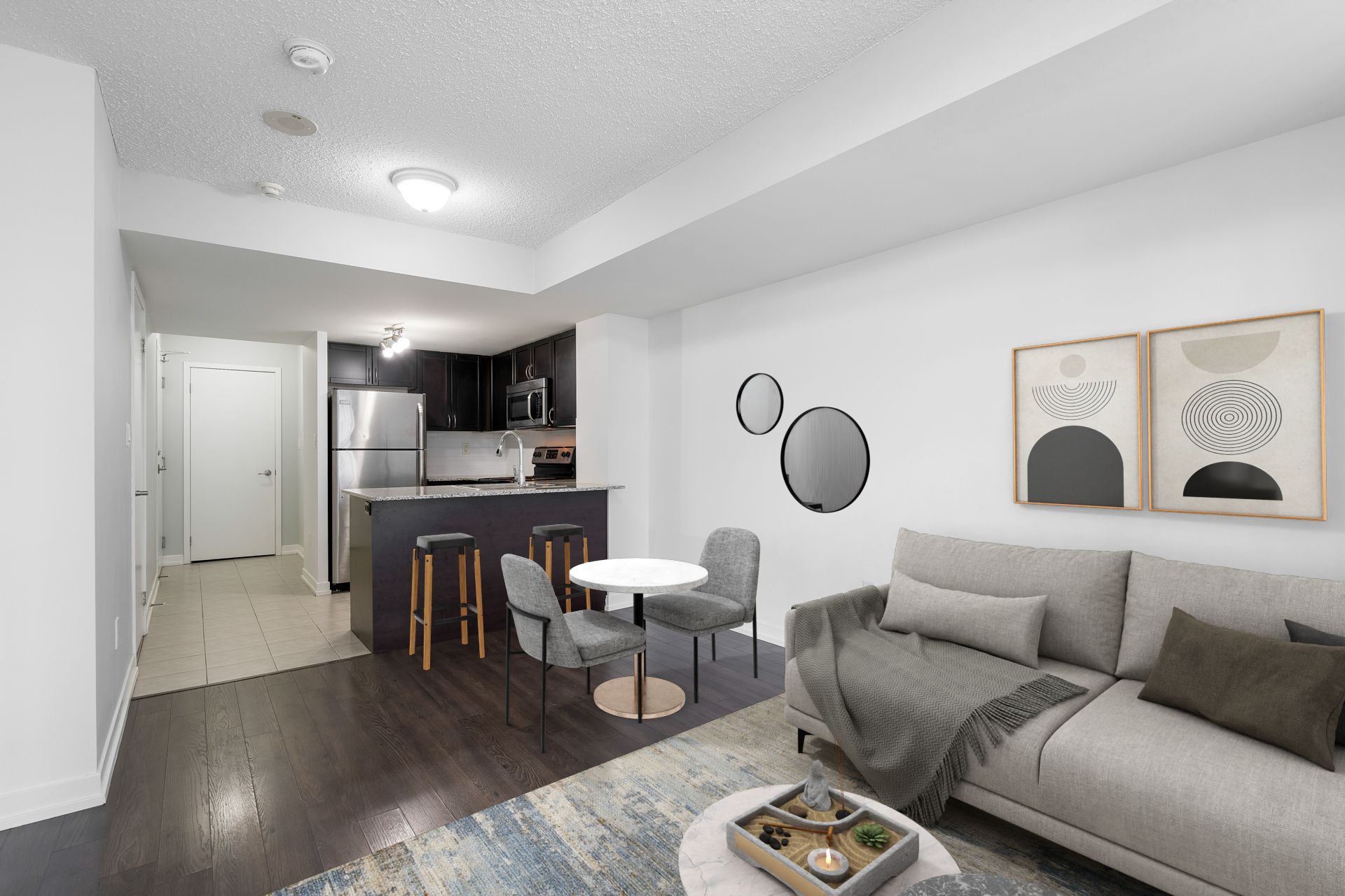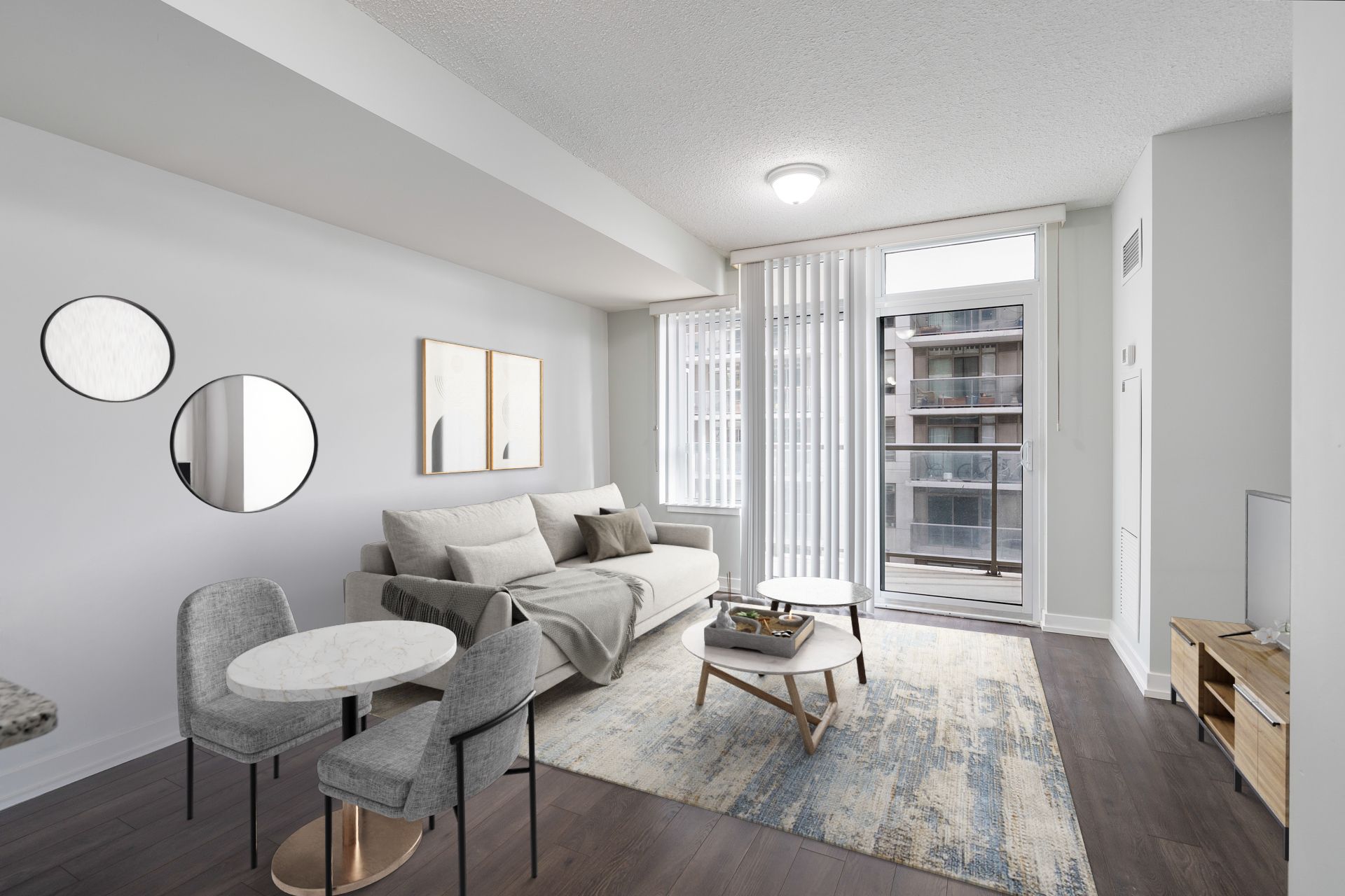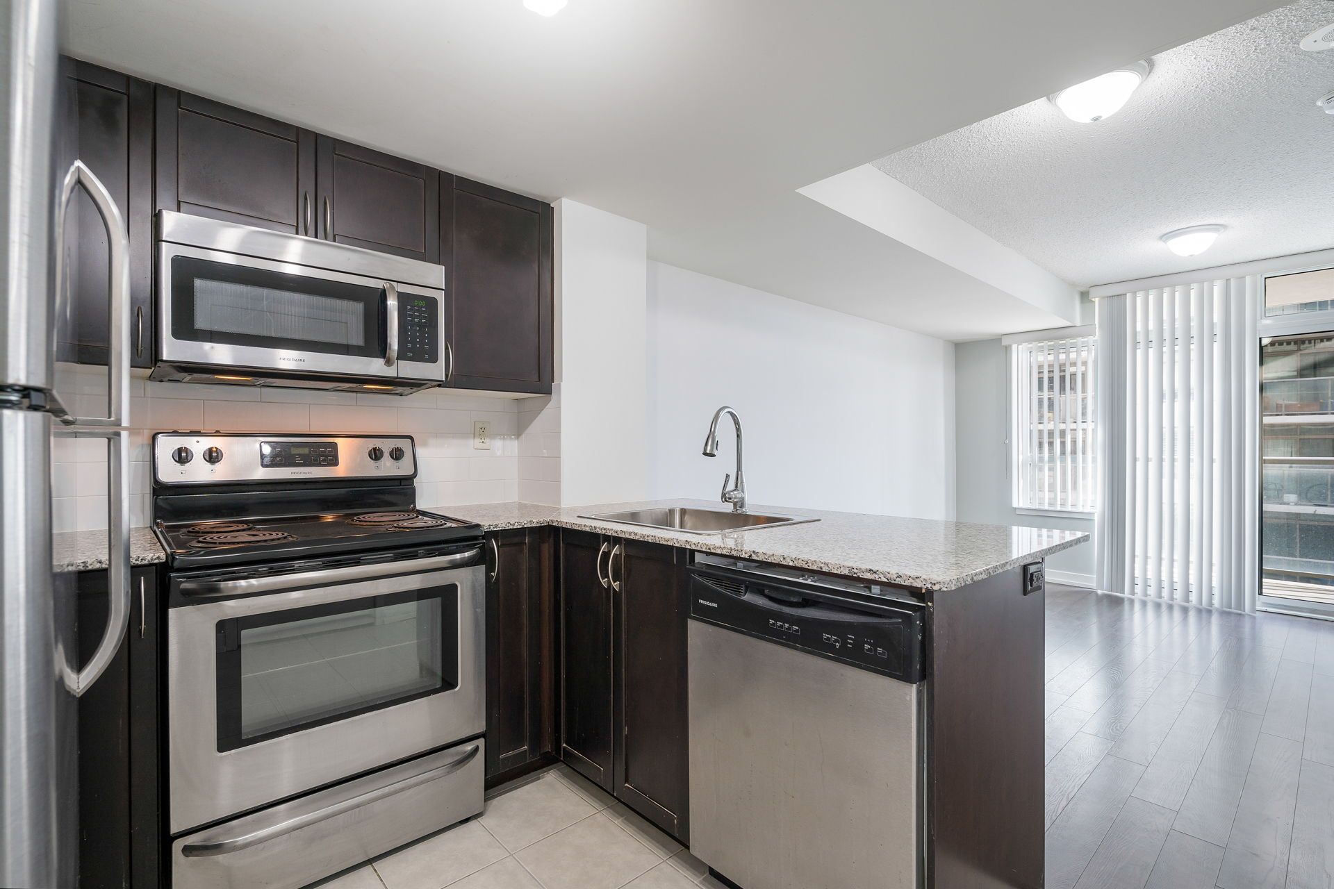• Bright south-facing open-concept layout with access to a large balcony.
