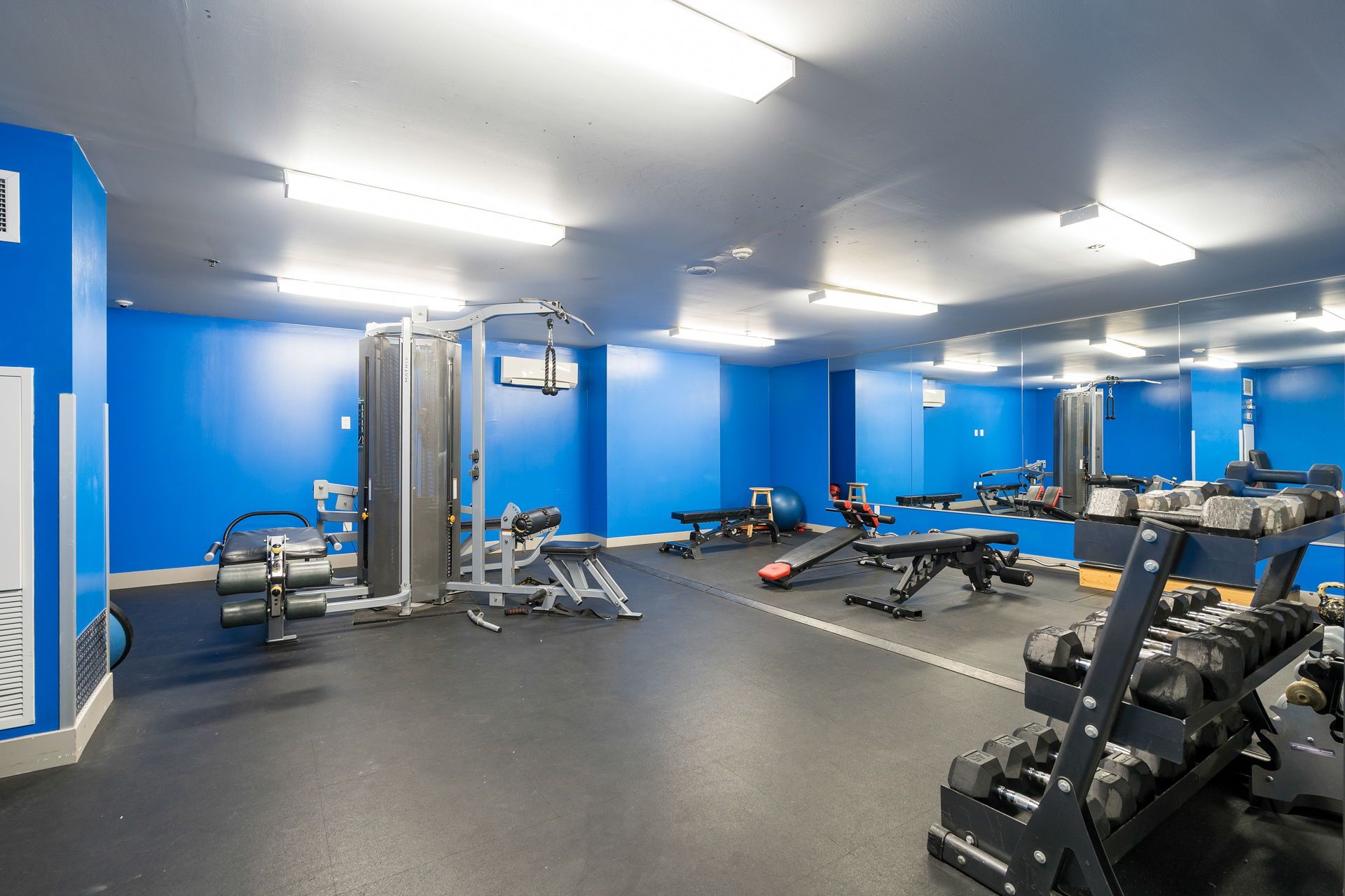 • Building amenities include exercise room, sauna, and pet-friendly policies.