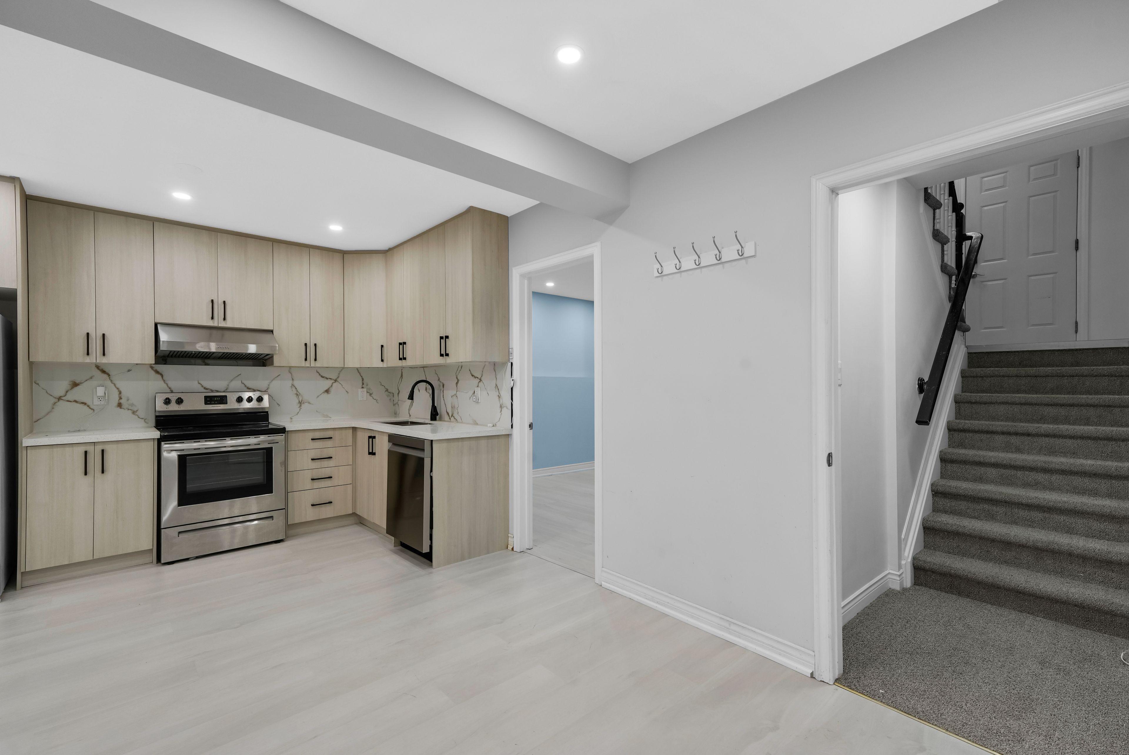 • Open concept main level with a modern kitchen and dining area.