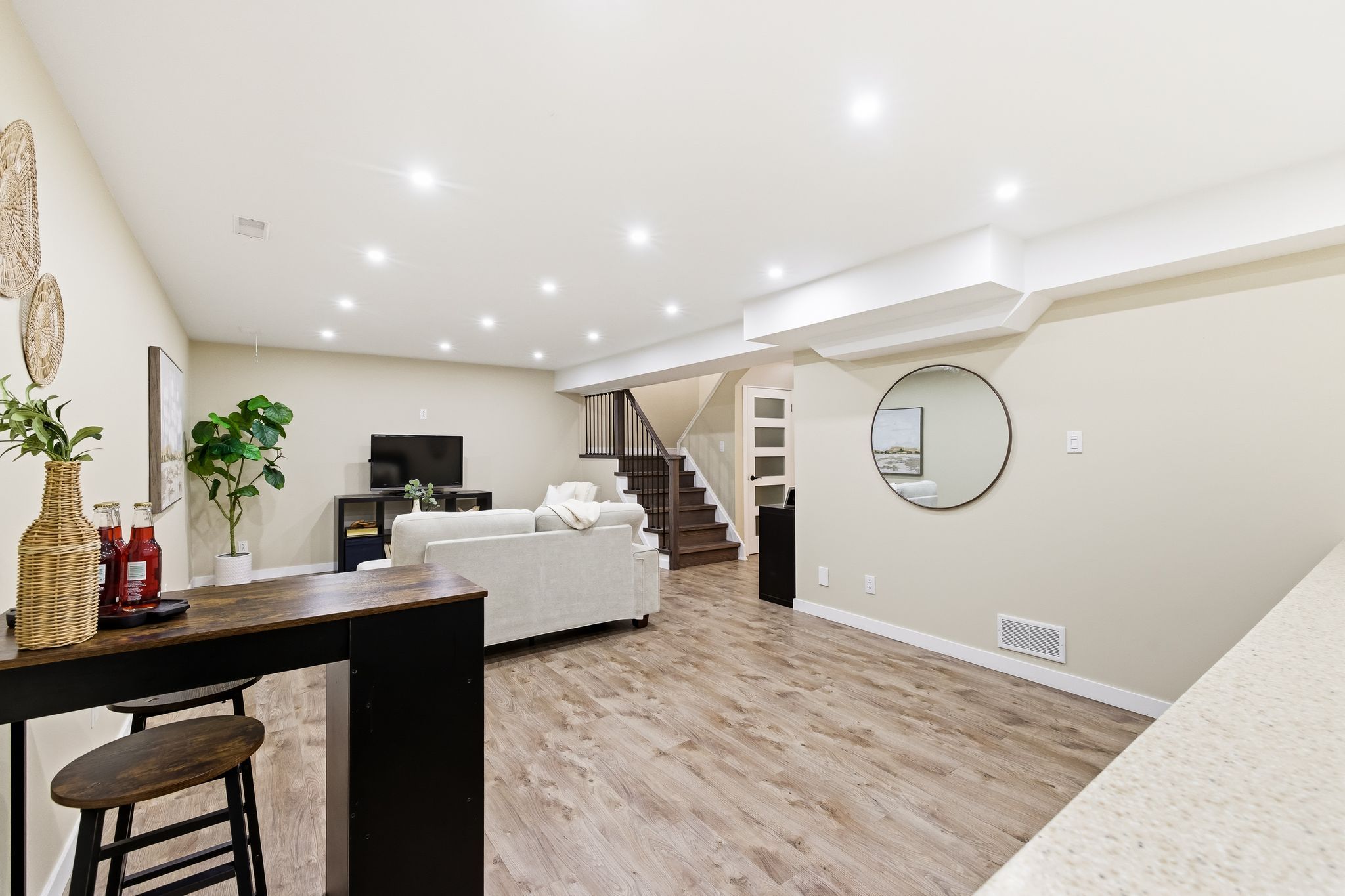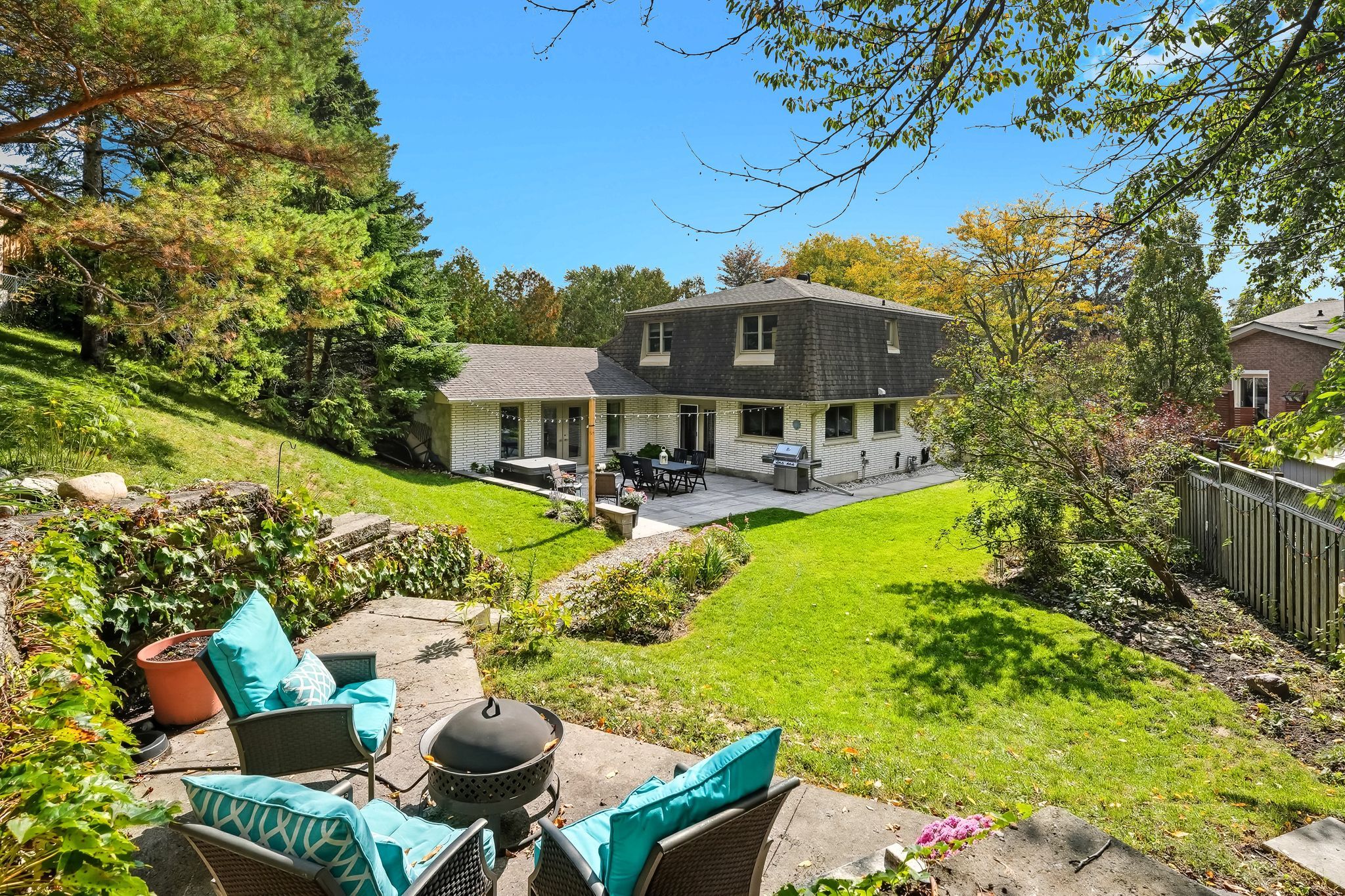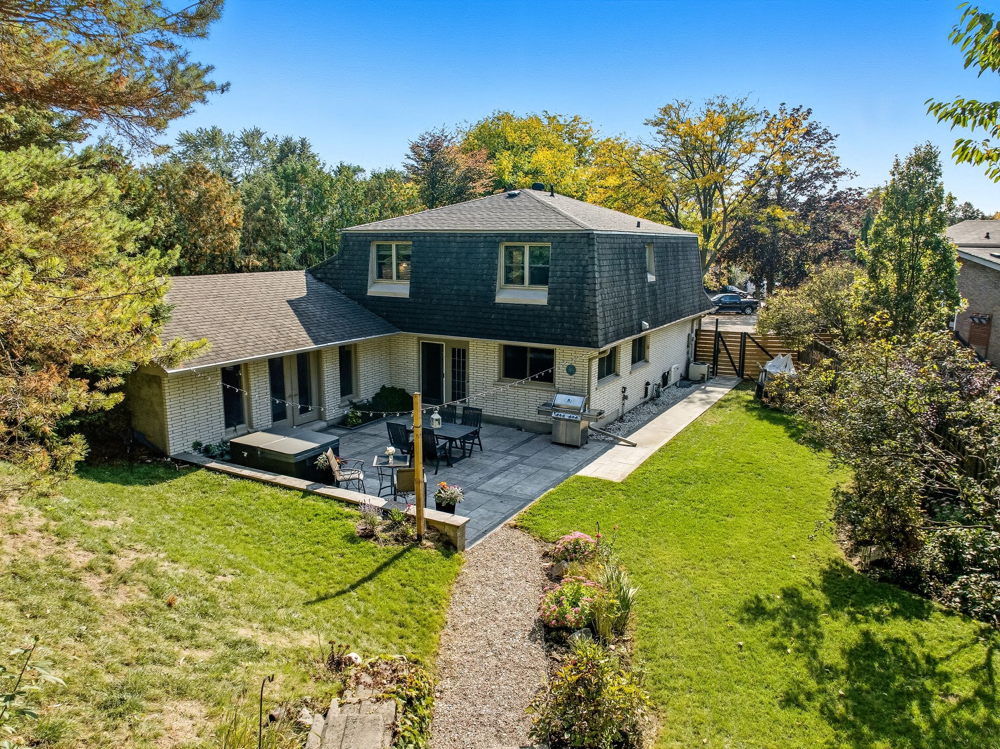 Welcome to this beautifully maintained 2 storey detached home tucked away on a quiet cul-de-sac in the highly sought after amberlea community of pickering. Offering approximately 2,319 sq ft above grade this 3+1 bedroom, 4 bathroom home that blends timeless charm with thoughtful upgrades throughout. The main floor features hardwood floors a welcoming foyer with ceramic flooring and a versatile office with bay window and pot lights perfect for working from home. The upgraded kitchen boasts quartz countertops, pantry and a seamless flow into the dining area with walk out to the private backyard. Enjoy the bright and airy living room complete with two skylights and walk out ideal for entertaining or relaxing. Upstairs the spacious primary bedroom includes hardwood flooring and is complemented by a spa like 5 piece bath with heated floors. Two additional bedrooms and an updated 3 piece bathroom complete the upper level. The finished basement offers a recreation room with wet bar, an additional bedroom and a separate 3 piece bath, ideal for guests or extended family. Additional highlights include heated floors in multiple areas; mudroom with walkout to side yard, main floor laundry with walk out to double garage with private triple driveway parking and a fully fenced landscaped yard with hot tub. Located close to parks schools hospital and all amenities! This home offers exceptional comfort space and location. A fantastic opportunity to own in desirable amberlea community.