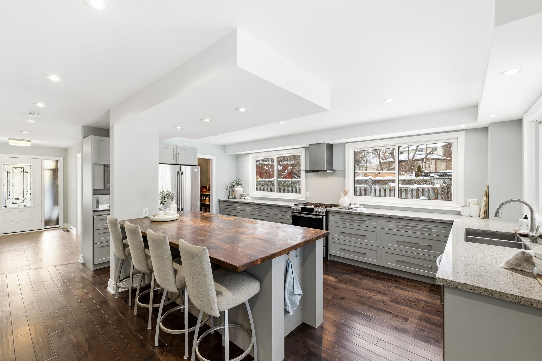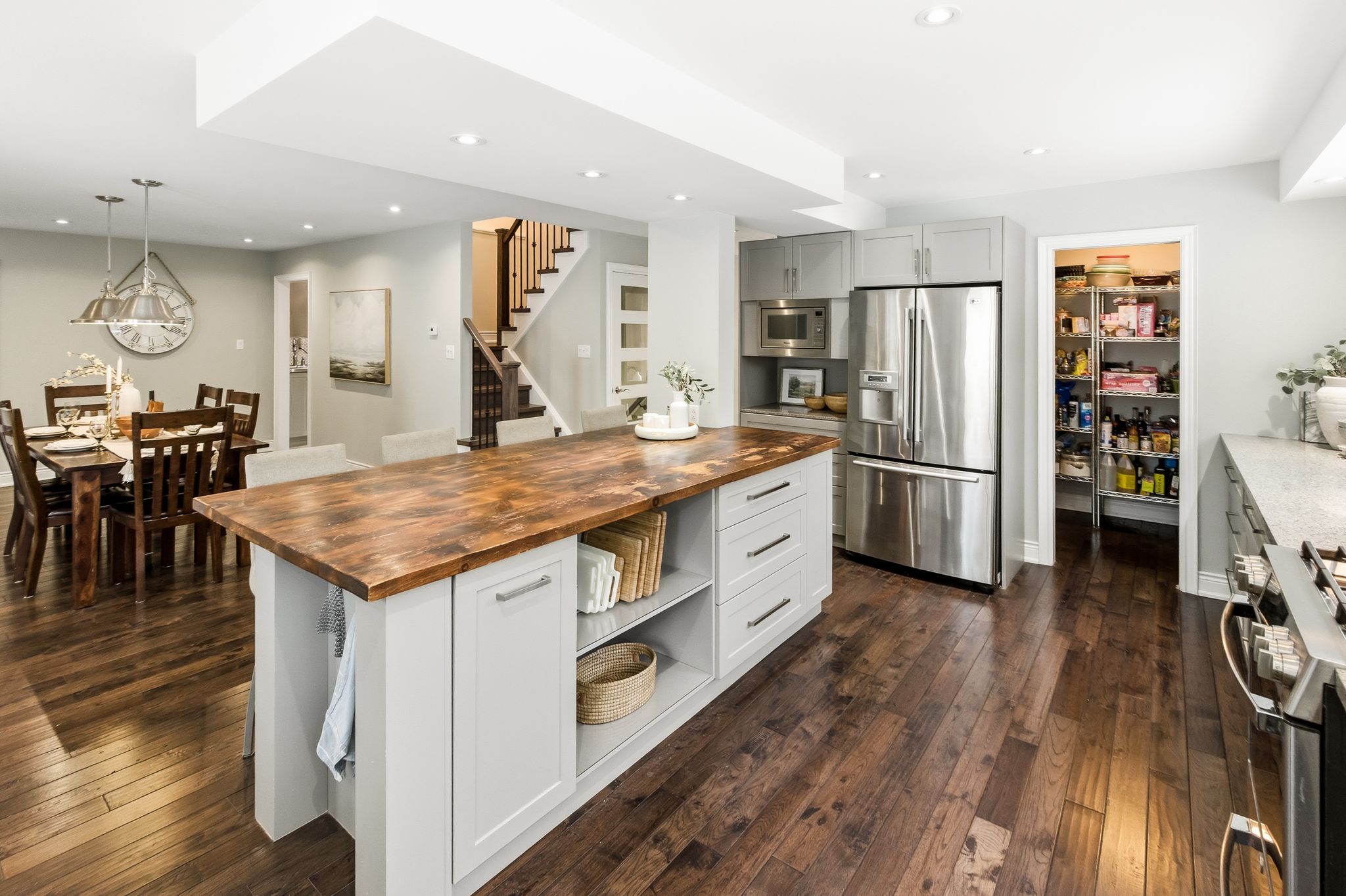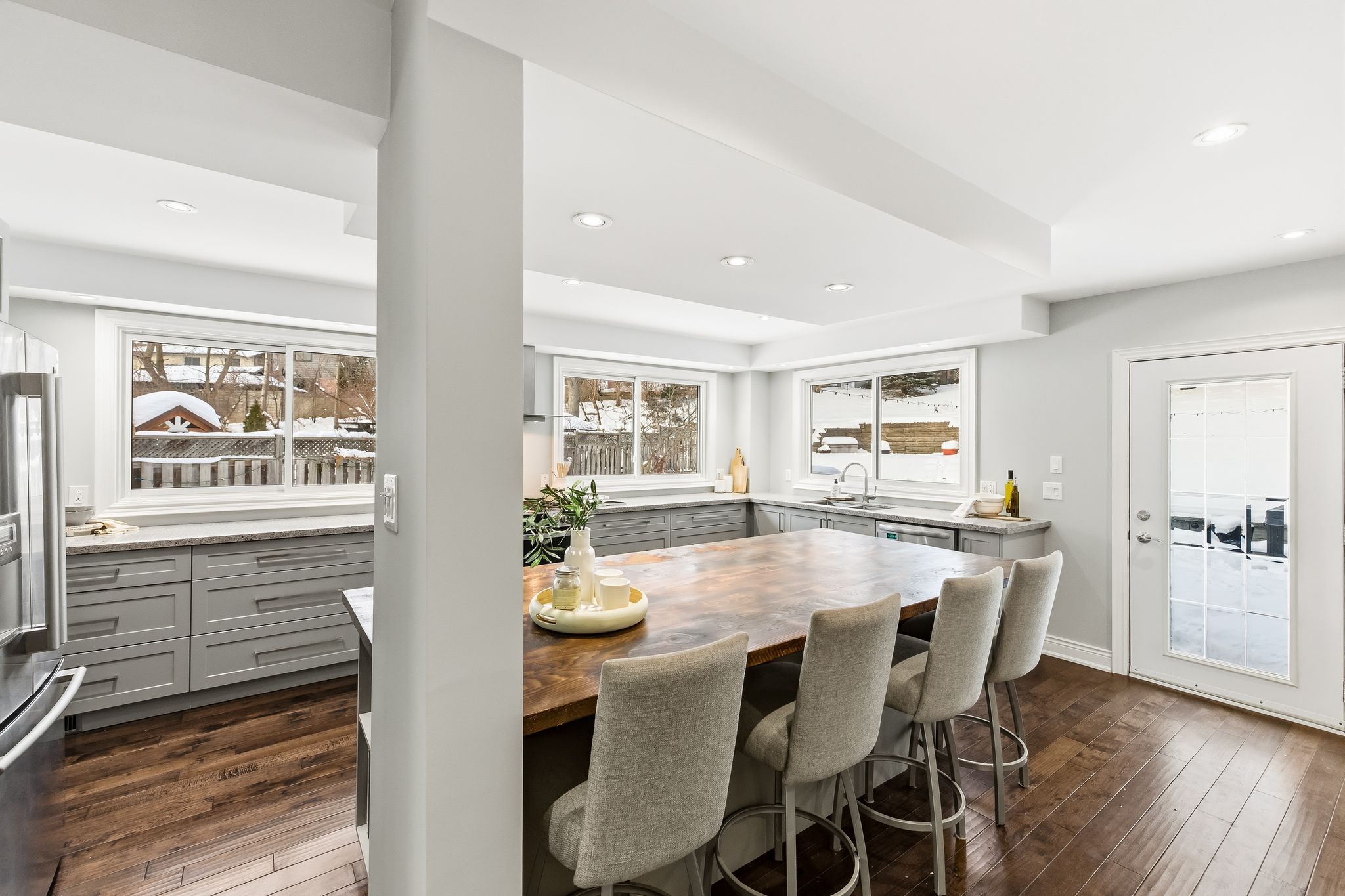 Welcome to this beautifully maintained 2 storey detached home tucked away on a quiet cul-de-sac in the highly sought after amberlea community of pickering. Offering approximately 2,319 sq ft above grade this 3+1 bedroom, 4 bathroom home that blends timeless charm with thoughtful upgrades throughout. The main floor features hardwood floors a welcoming foyer with ceramic flooring and a versatile office with bay window and pot lights perfect for working from home. The upgraded kitchen boasts quartz countertops, pantry and a seamless flow into the dining area with walk out to the private backyard. Enjoy the bright and airy living room complete with two skylights and walk out ideal for entertaining or relaxing. Upstairs the spacious primary bedroom includes hardwood flooring and is complemented by a spa like 5 piece bath with heated floors. Two additional bedrooms and an updated 3 piece bathroom complete the upper level. The finished basement offers a recreation room with wet bar, an additional bedroom and a separate 3 piece bath, ideal for guests or extended family. Additional highlights include heated floors in multiple areas; mudroom with walkout to side yard, main floor laundry with walk out to double garage with private triple driveway parking and a fully fenced landscaped yard with hot tub. Located close to parks schools hospital and all amenities! This home offers exceptional comfort space and location. A fantastic opportunity to own in desirable amberlea community.