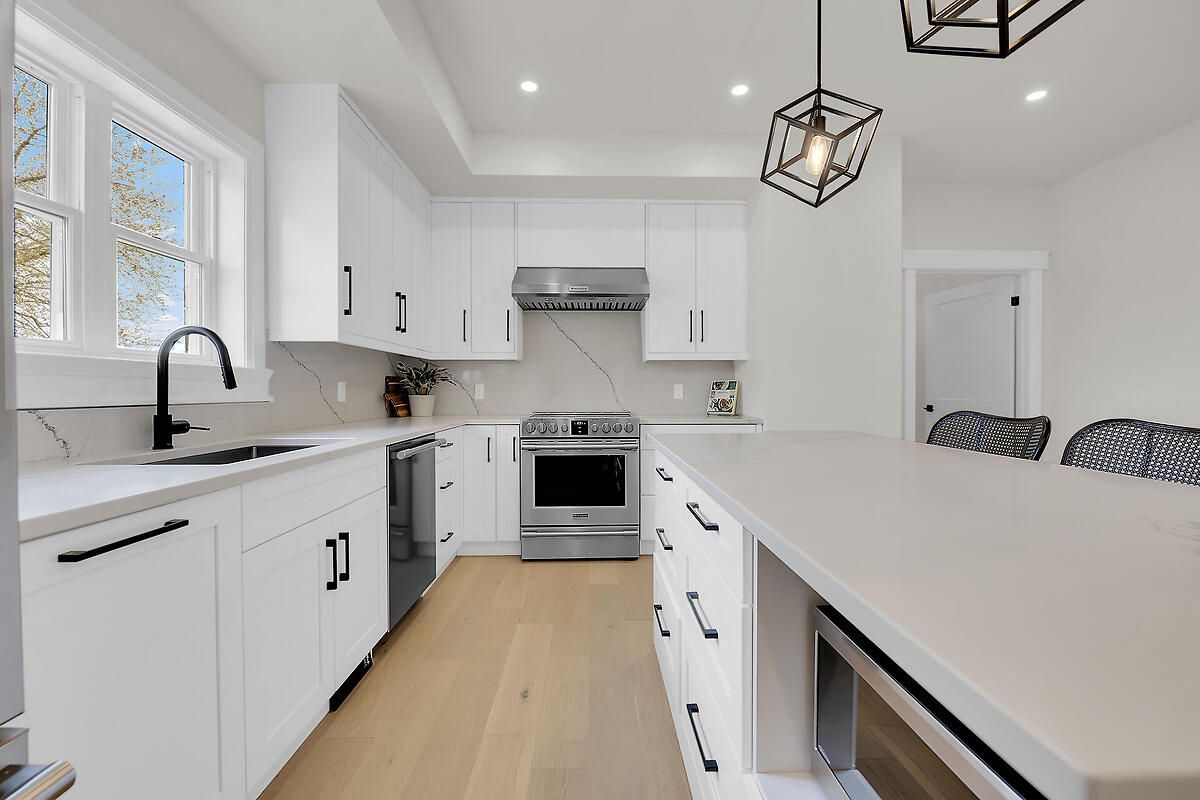 • Large kitchen with quartz counters and a spacious island for gatherings.