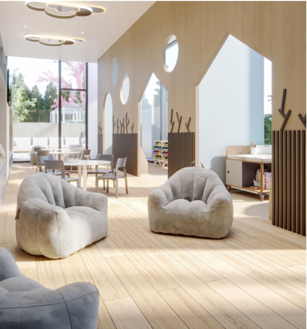 • Floor-to-ceiling windows allow for plenty of natural light.