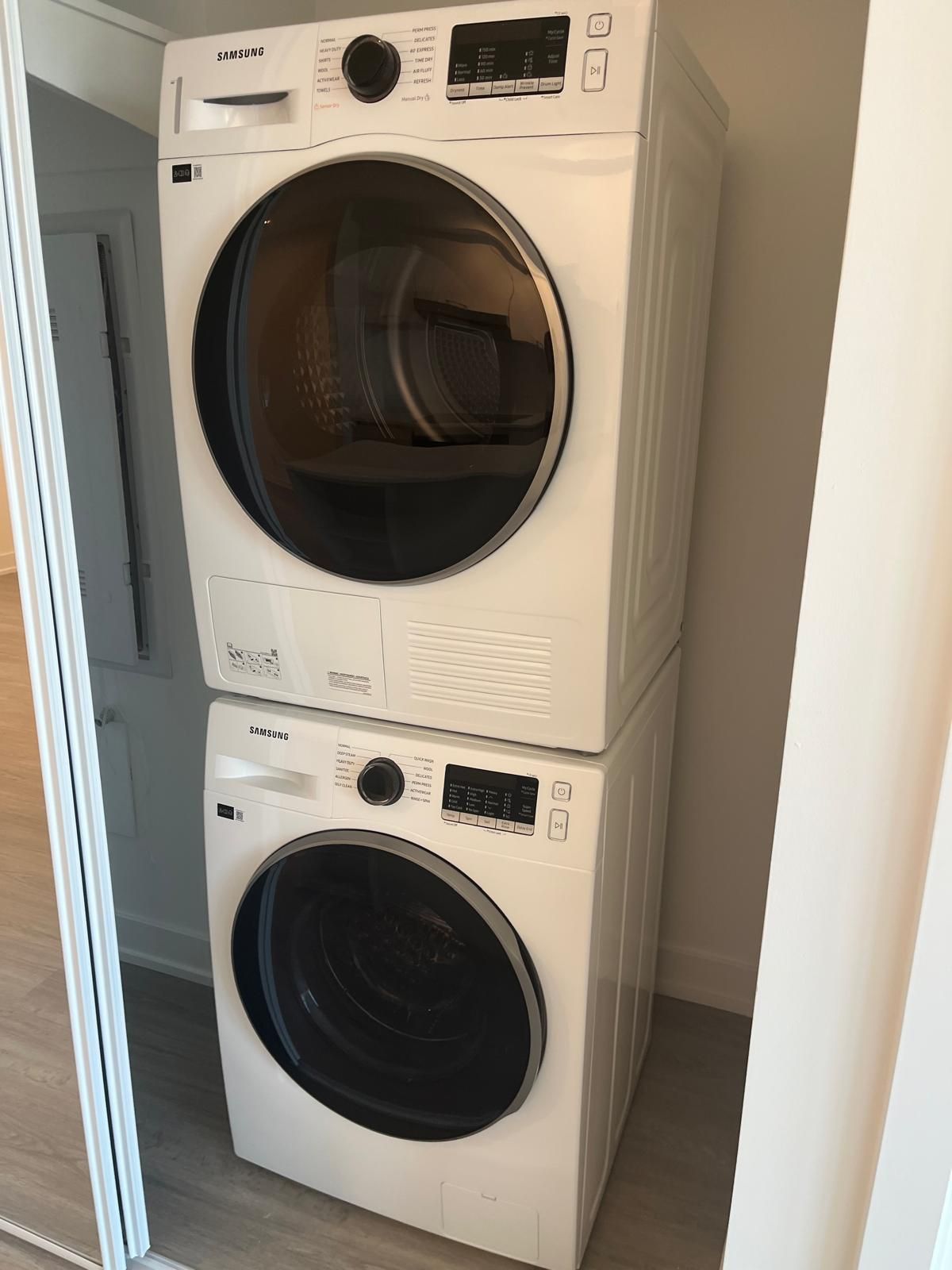 Welcome to the brand new luxury living in the heart of thornhill! This beautifully crafted 1 bedroom + den, 2 baths condo features an open-concept layout, premium finishes, and floor-to-ceiling windows that fill the home with natural light. Step onto your private 48 sq. Ft. Balcony and enjoy stunning north-facing views. The modern kitchen boasts quartz countertops, top-quality stainless steel appliances, and a samsung washer and dryer. The den offers the perfect space for a home office, while both full bathrooms showcase elegant, contemporary design. Residents enjoy exceptional amenities, including a state-of-the-art fitness and entertainment centre, outdoor pool, rooftop party room with terrace, co-working lounge, indoor kids' play area, and 24-hour concierge service. Perfectly situated on vibrant yonge street, you're just steps from the uplands golf & ski club, parks, trails, shops, dining, transit, and major highways, the ideal blend of luxury, comfort, and convenience.