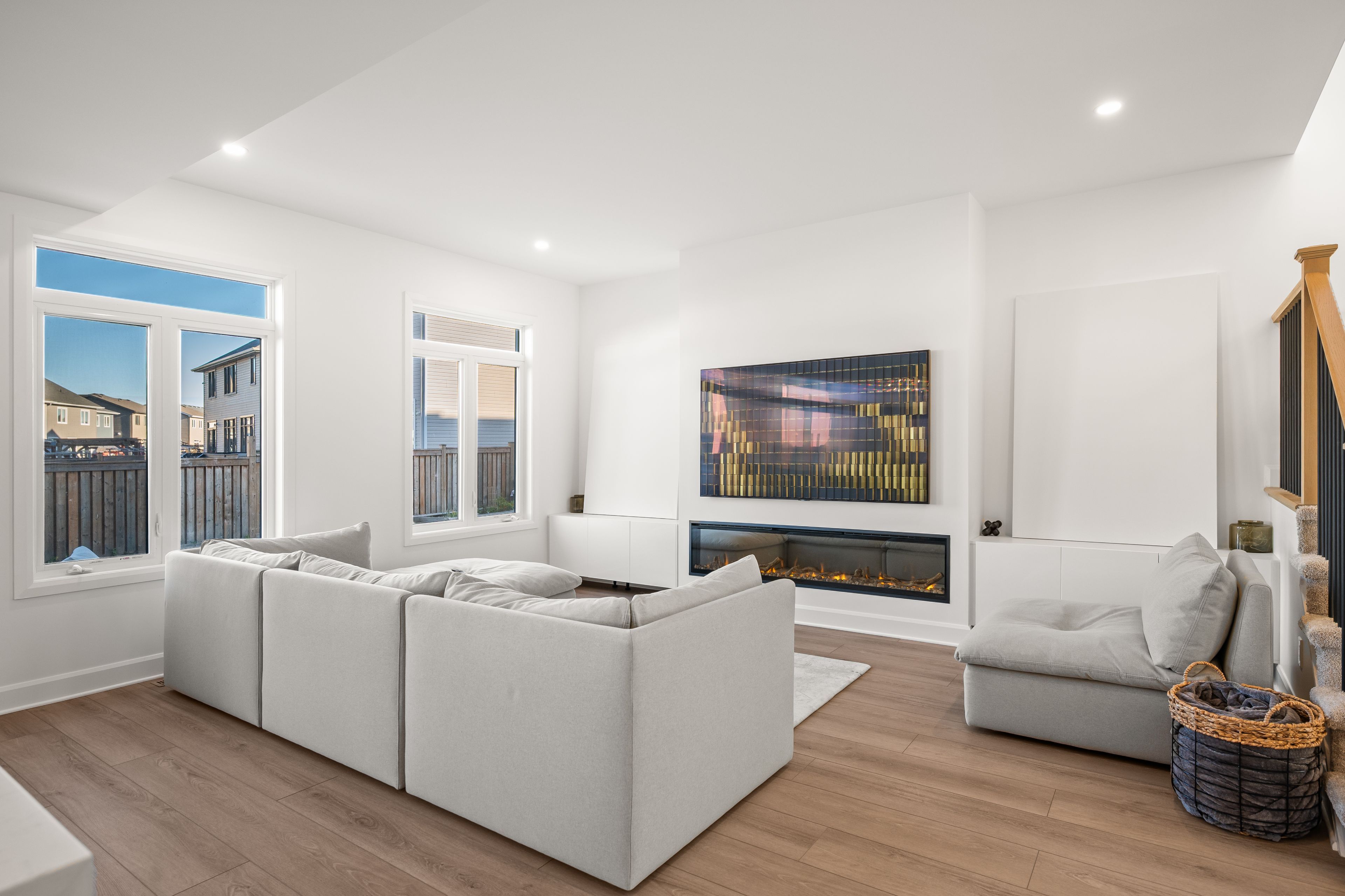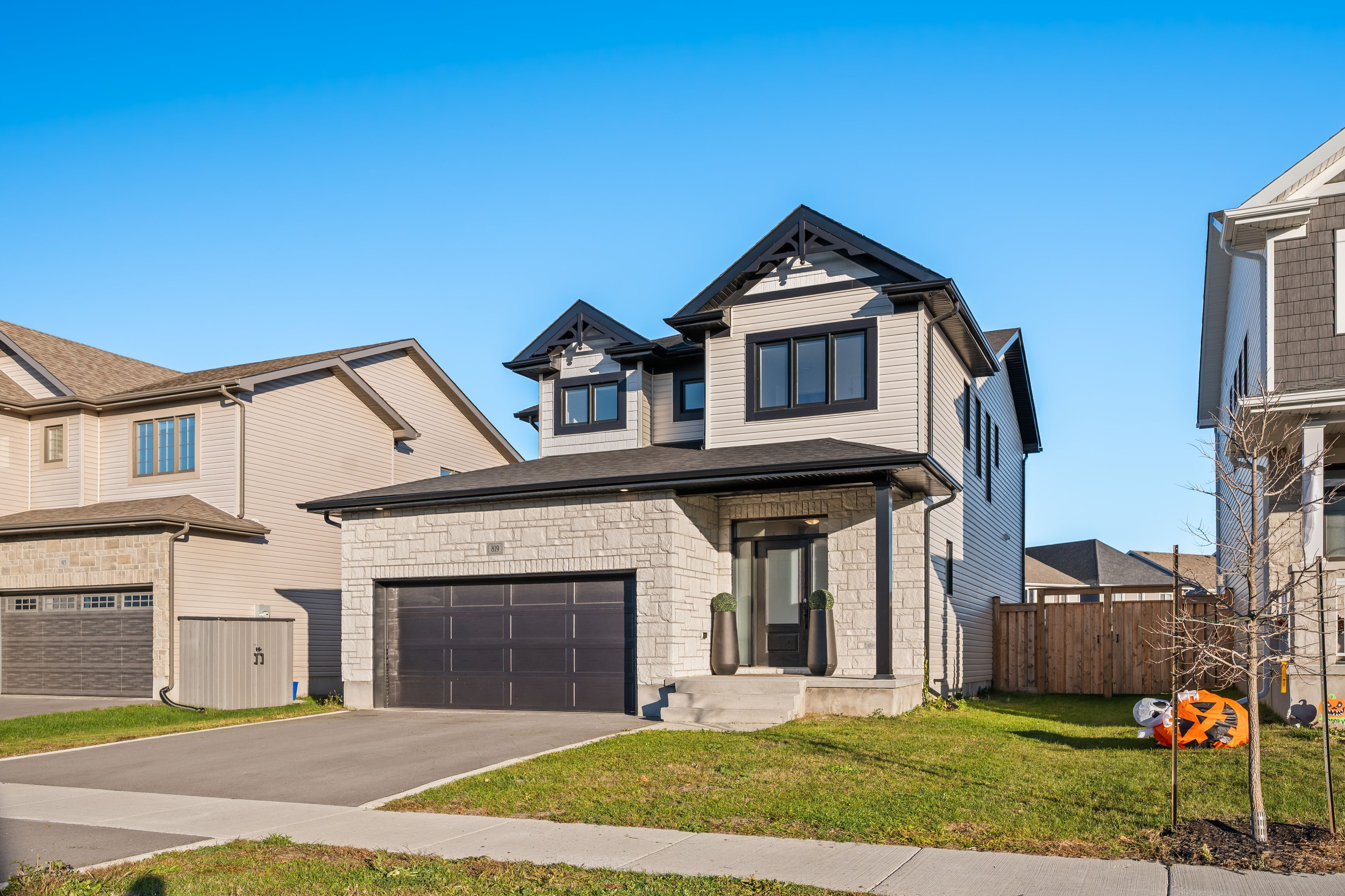 Welcome to riverview way-one of kingston's most desirable streets-featuring homes with double-car garages thoughtfully designed to minimize traffic and create a safe environment for kids to play. Situated at the end of the street, 819 enjoys a quiet, low-traffic setting. Premium 45-foot-wide lots on this side offer enhanced space and privacy between homes. This semi-custom property boasts a fully fenced backyard with a spacious patio, no rear neighbours, and no future development behind-providing rare privacy. Inside, the upgraded kitchen features a 10-foot island with seating for 5-7, complemented by a formal dining room that comfortably accommodates up to 10 guests. The open-concept layout flows into a warm, inviting living room with a luxury fireplace-perfect for entertaining or family movie nights. For added convenience, a butler's pantry offers extra prep space and storage, allowing you to keep the main kitchen pristine when hosting. The home includes four bedrooms, highlighted by a generous primary suite with a large ensuite and walk-in closet, along with upstairs laundry and ample space throughout for family living. Ideally located just a 10-minute drive from downtown kingston, this home is surrounded by green space, parks, and trails. Enjoy walking access to top-rated schools (10 minute walk), as well as groceries, restaurants, daycare, and shops just 5 minutes away - offering the perfect blend of suburban comfort and urban convenience.