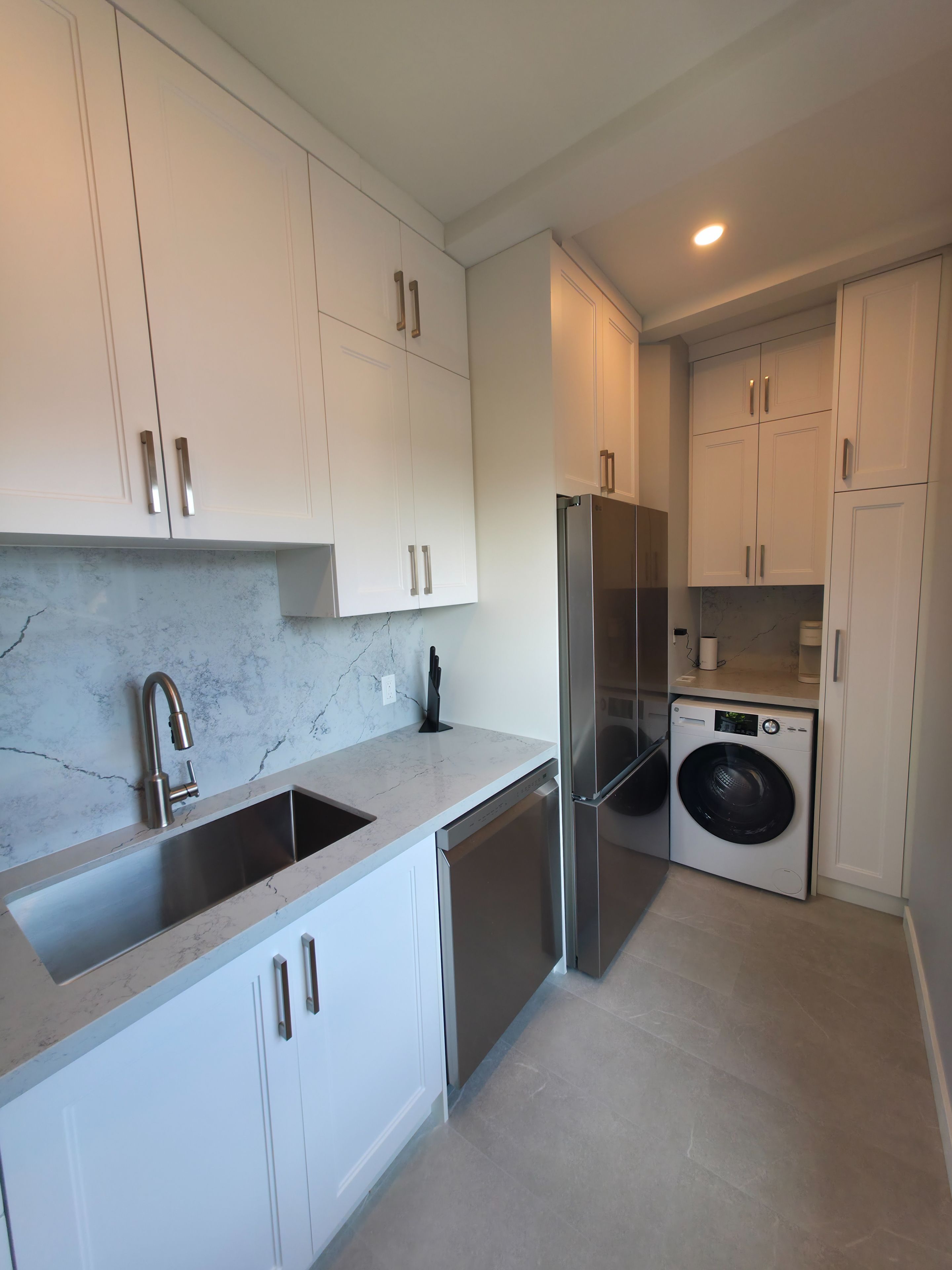 • High-end stainless steel appliances, including a washer/dryer combo.