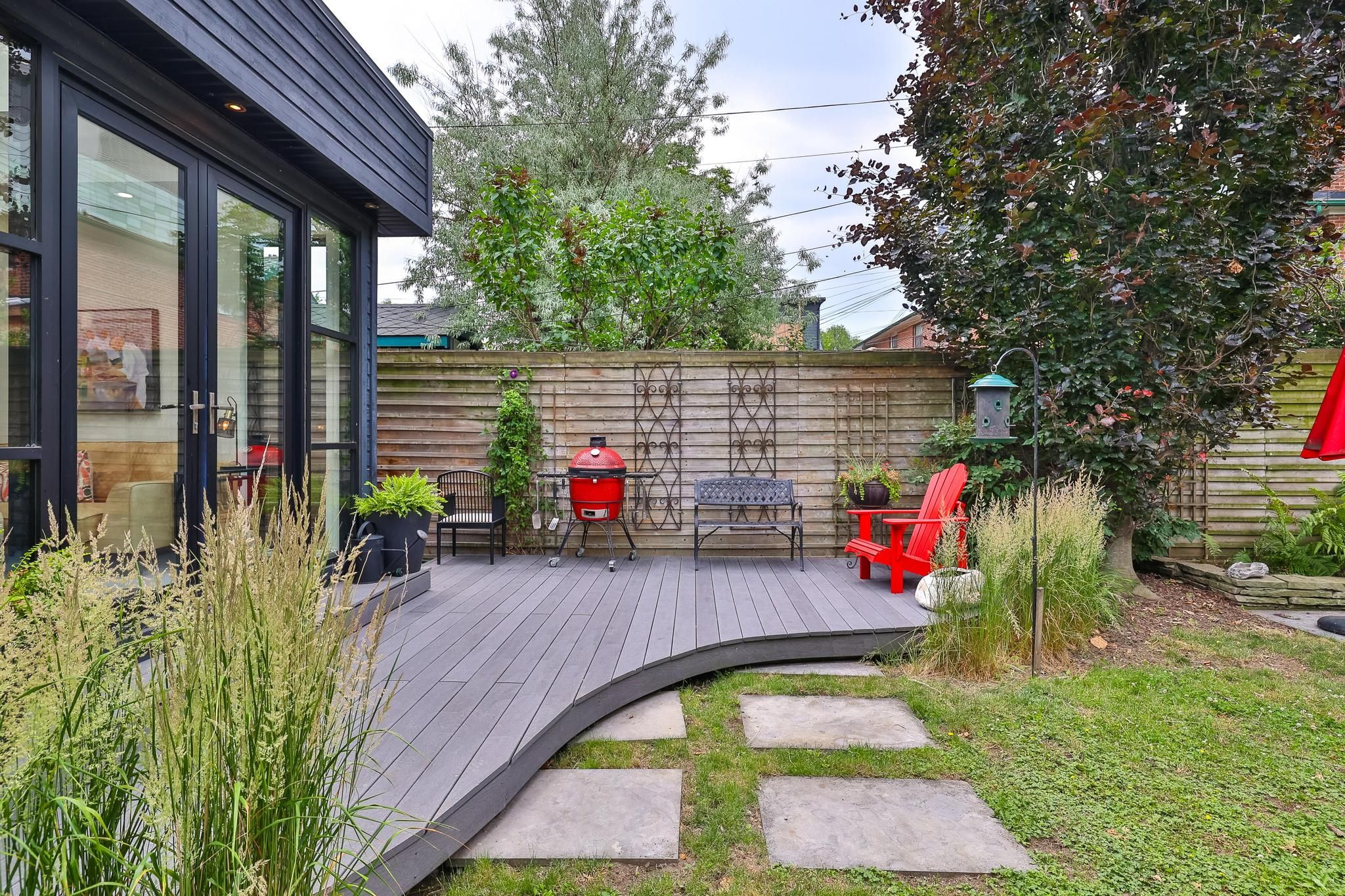• Private lush patio and detached studio for work or relaxation.