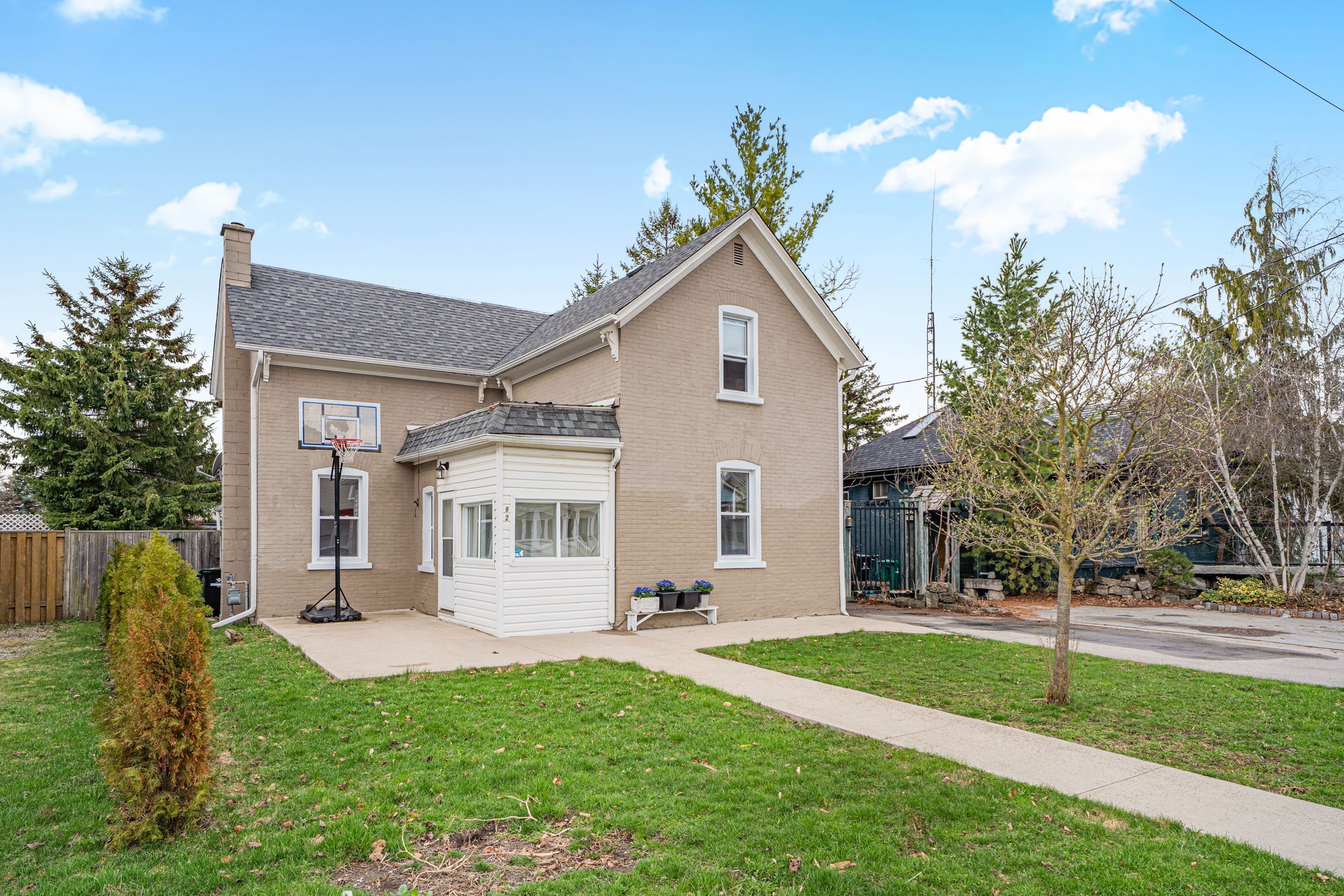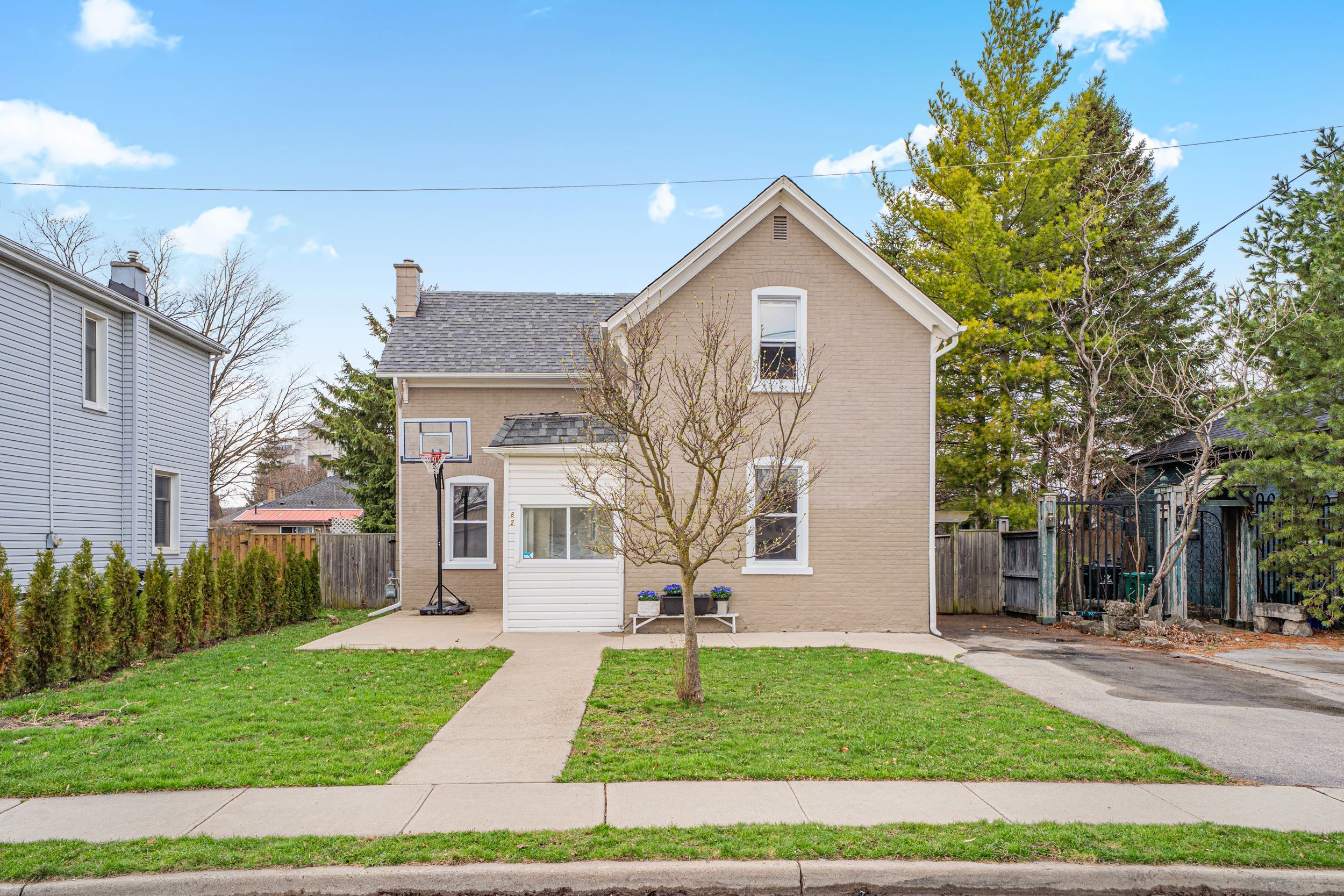 Welcome to 82 bond street, a charming detached home nestled in the heart of cambridge's highly sought-after historic galt neighbourhood. Rich in character and timeless appeal, this beautifully maintained 3-bedroom, 2-bathroom home offers the perfect blend of classic century-home charm and thoughtful modern updates. Step inside and immediately appreciate the impressive high ceilings that create an airy, spacious feel rarely found in many older homes. Large principal rooms, warm character details, and an inviting layout make this home feel both comfortable and full of personality. The bright side/sun room has been recently refreshed with brand new flooring (2026), offering the perfect space for morning coffee, a reading nook, home office, or mudroom. Recent upgrades also include a brand new owned water heater (2026). Outside, enjoy a fully fenced backyard-ideal for children, pets, entertaining, or simply relaxing in your own private outdoor space. The lot offers both charm and functionality, perfect for enjoying the warmer months. Located in the historic galt neighbourhood, this home is surrounded by beautiful architecture, mature trees, and a true sense of community. You're just minutes from schools (hs: galt collegiate institute, elementary: manchester public school) parks, shopping, restaurants, public transit, and the vibrant downtown core, with easy access to trails and everyday amenities. Galt has a specific blend of historic charm, stunning limestone architecture, and natural beauty, characterized by the grand river running through its core. Residents love the walkable, tree-lined streets - paired with a lively, rejuvenating downtown featuring the gaslight district, local cafes, and the farmers' market. An incredible opportunity to own a character-filled home in one of cambridge's most desirable neighbourhoods!