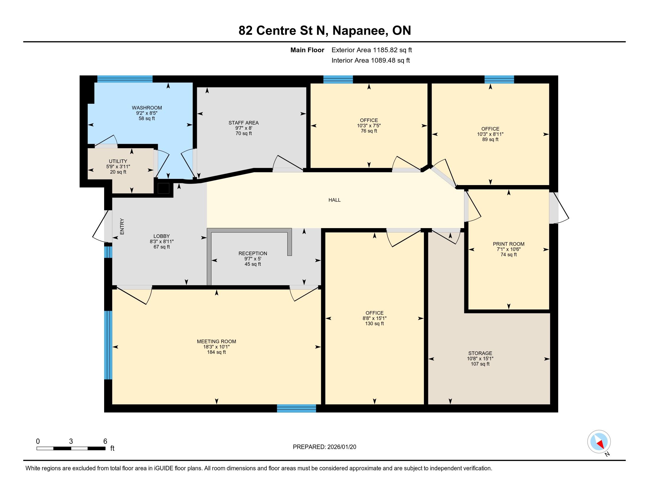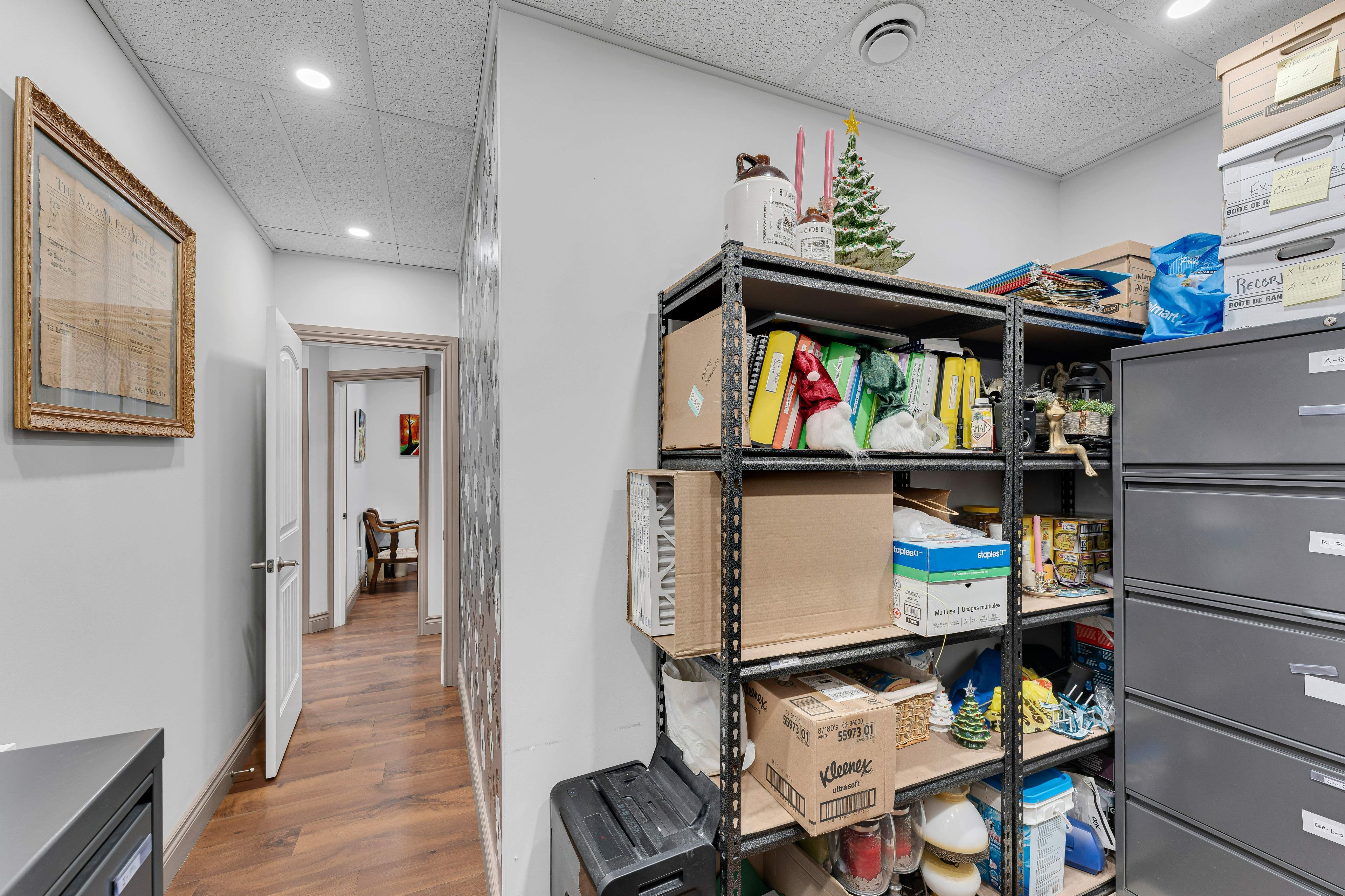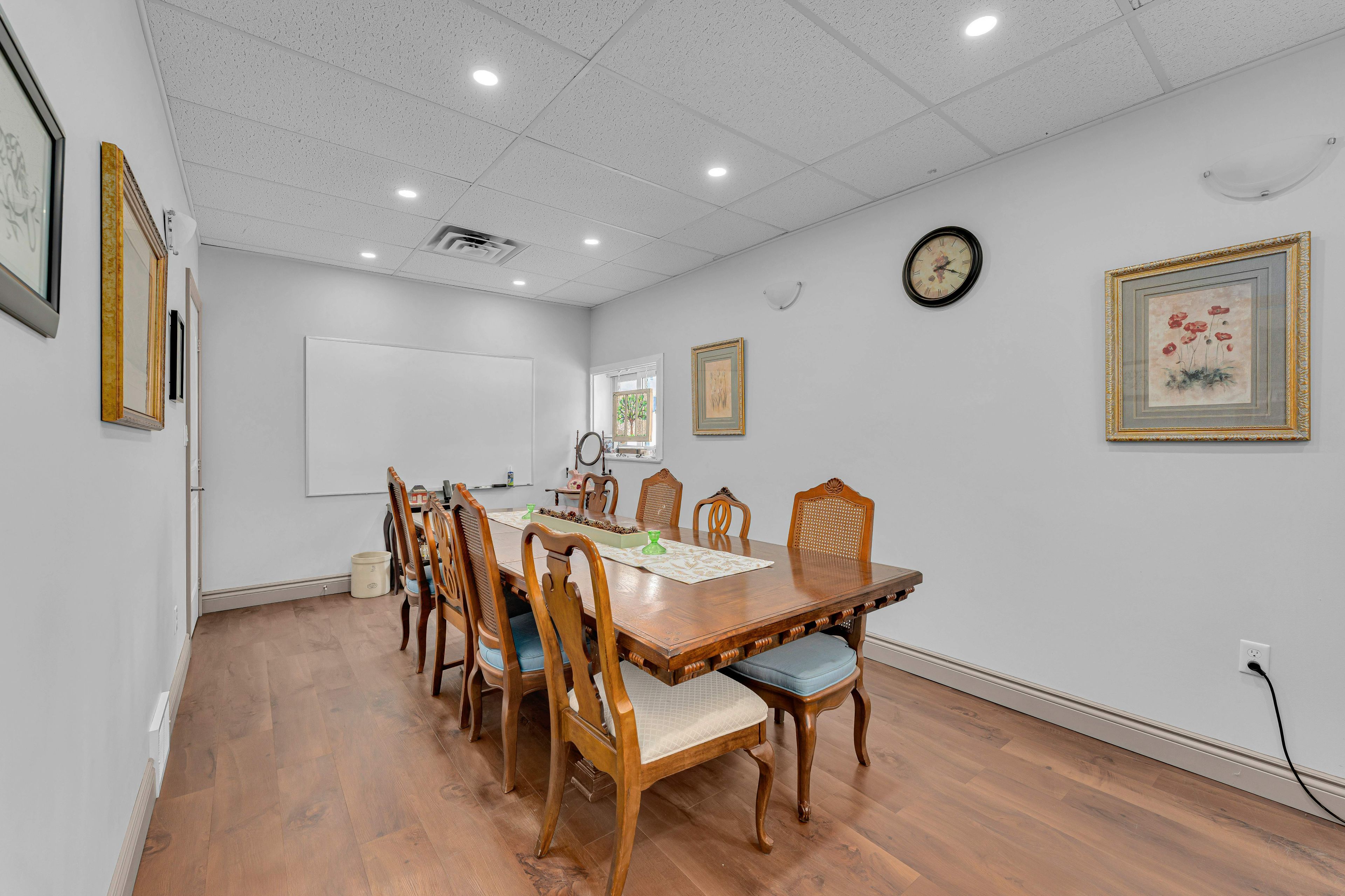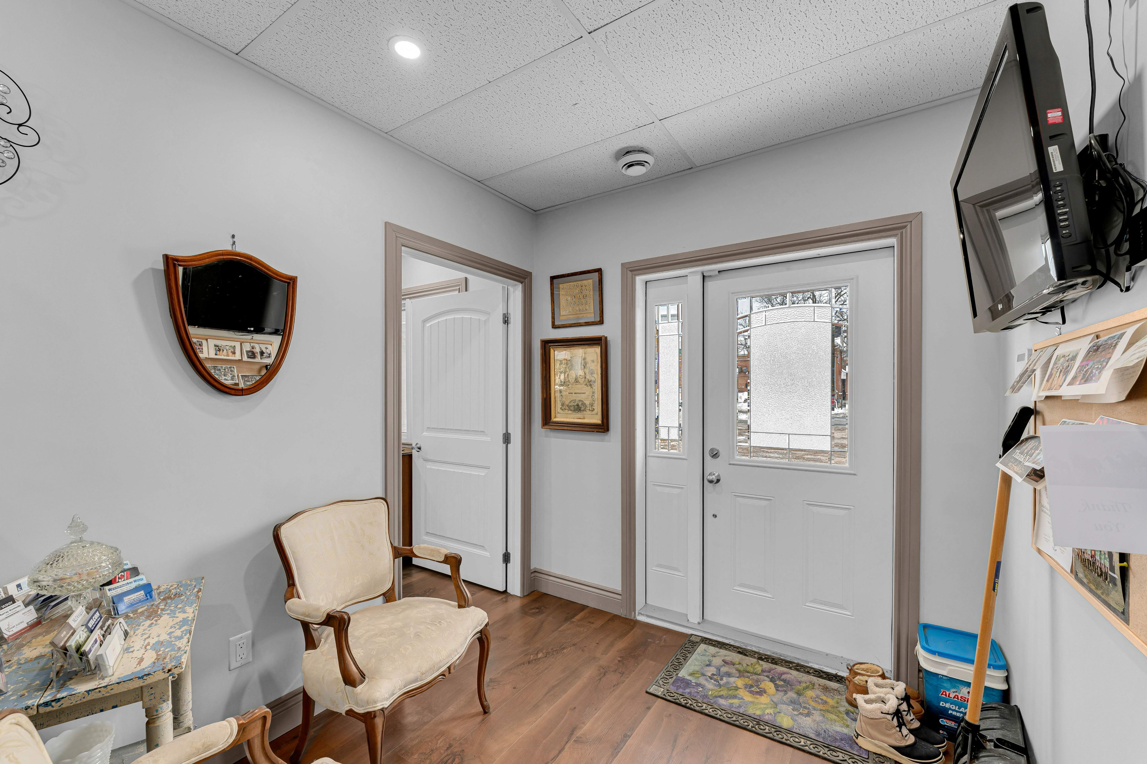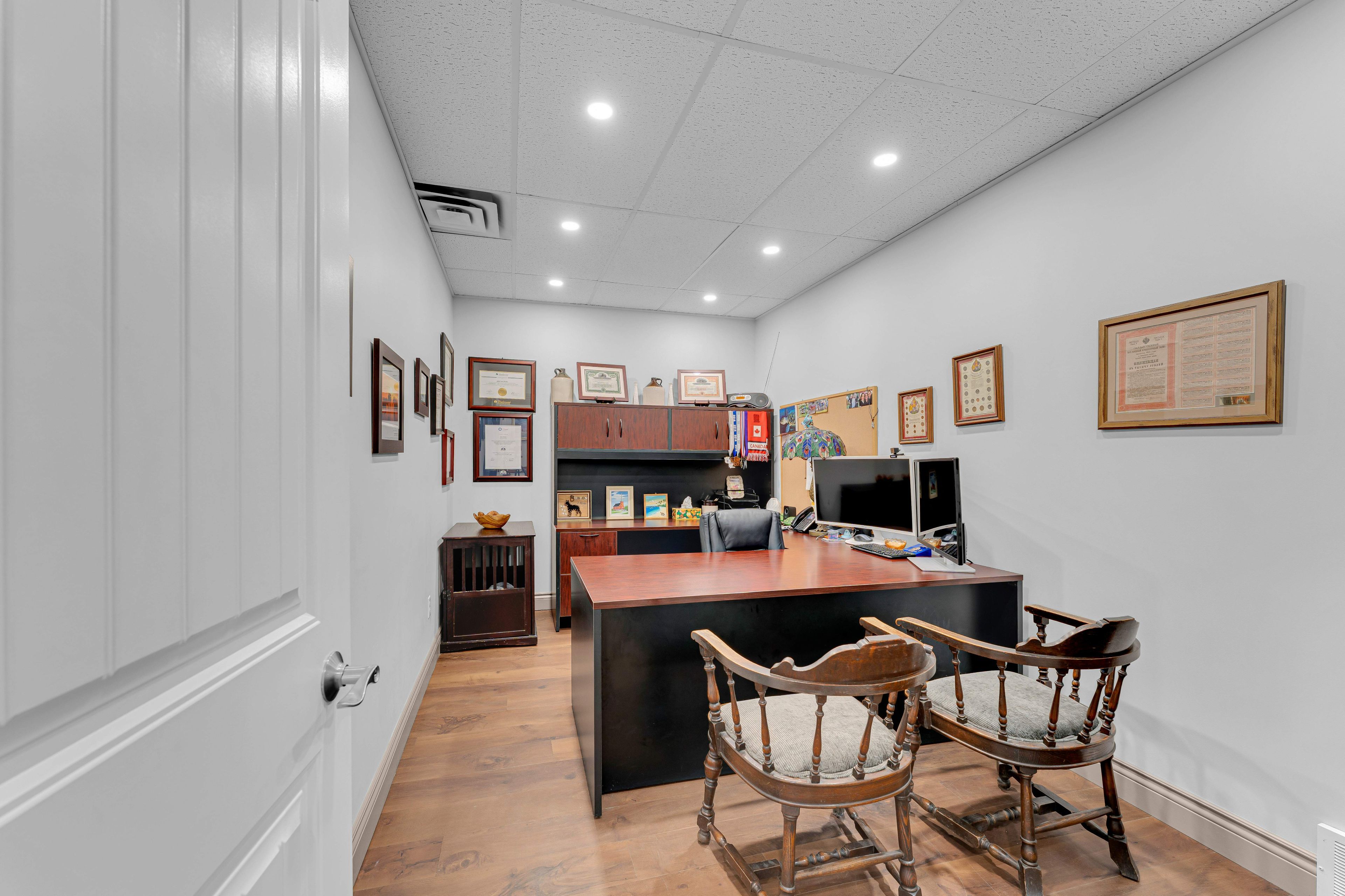 Well-appointed commercial building located in the heart of downtown napanee, offering excellent visibility, accessibility, and ample on-site parking. This one-level property features approximately 1,089 sq ft of functional interior space designed to suit a wide range of professional and commercial uses. The layout includes a welcoming front reception area, a large boardroom/meeting room, four private offices, a dedicated storage room, and a staff kitchen. A full bathroom with shower adds convenience for employees or extended business hours. The space is thoughtfully configured to support professional operations such as financial services, medical or wellness practices, legal or administrative offices, or owner- occupied businesses. Finished with durable flooring, updated lighting, and a neutral interior, the building offers a move-in-ready environment while still allowing flexibility for future customization. The single-storey design provides easy access for clients and staff, and the property's downtown core location ensures proximity to local amenities, services, and complementary businesses. With c3 central commercial zoning, this property presents an excellent opportunity for owner-users or investors seeking a versatile commercial asset in a strong central location. A rare chance to secure a standalone commercial building with parking in downtown napanee.