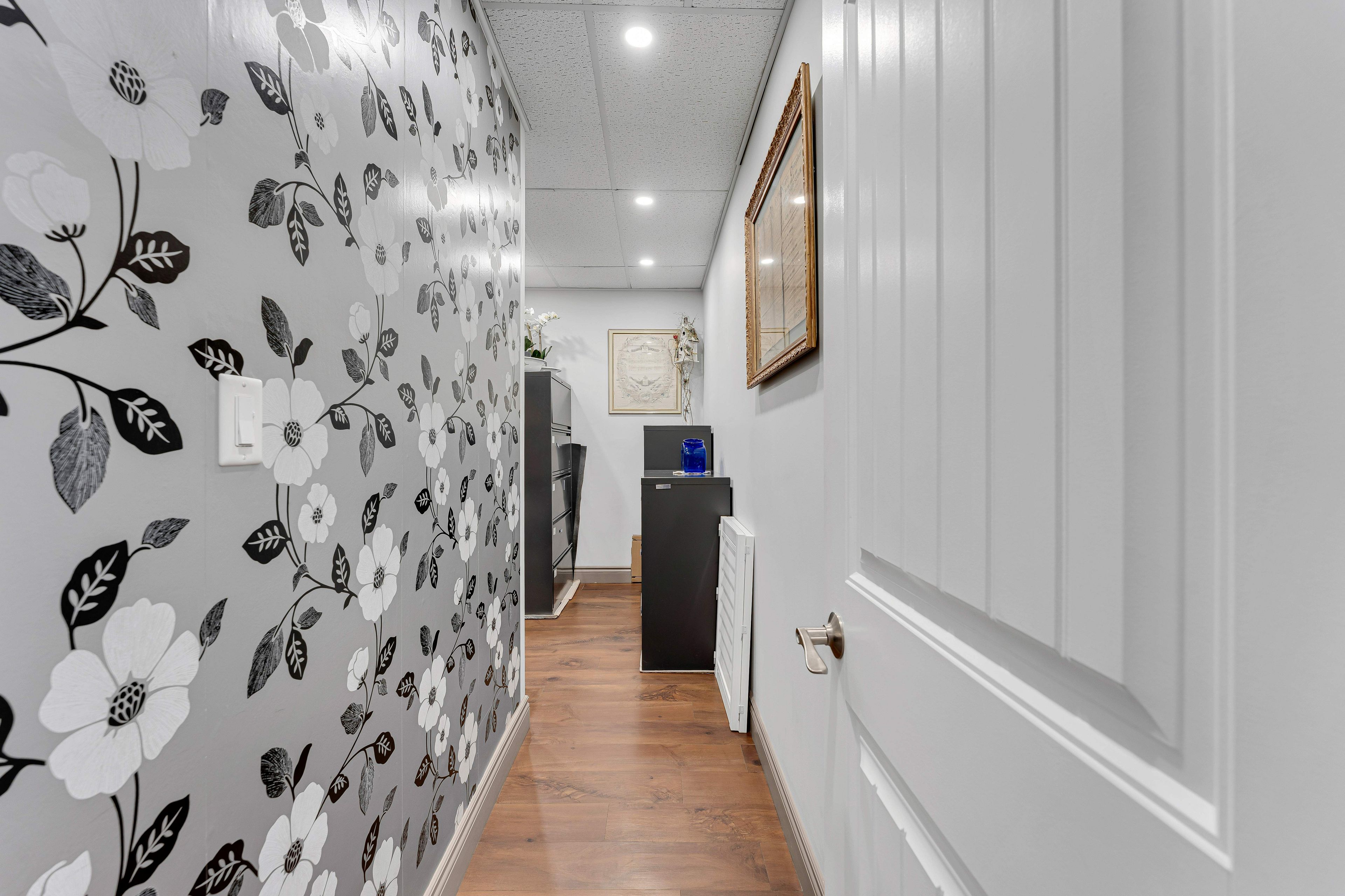• Includes welcoming reception, boardroom, four offices, and staff kitchen.
