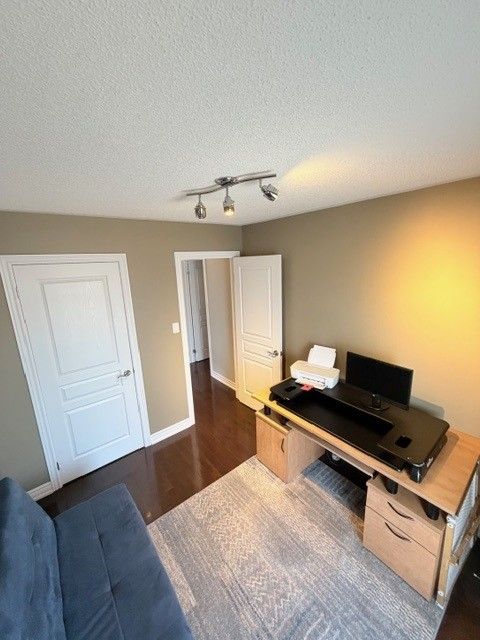 Welcome to this beautifully landscaped semi-detached home offering approximately 1,766 sq. Ft. Of thoughtfully designed living space with stylish, designer finishes throughout. From the moment you step inside, you'll appreciate the hardwood flooring, bay windows, and tasteful accent walls that create a warm an inviting atmosphere. The main level features a cozy electric fireplace, a separate dining room ideal for entertaining, and an open-concept kitchen overlooking the breakfast area, family room, and outdoor living space. Abundant storage and direct access to the garage add everyday convenience. The upper level was smartly converted from four bedrooms to a spacious three-bedroom layout, complete with an oversized laundry room with sink and ironing station. The generous primary retreat easily accommodates a king-sized bed with night tables on the same wall, while the extended bay window provides the perfect space for a home office or lounge. A coffered ceiling with an extended 9-foot feel enhances the sense of space, a generous sized walk-in closet, and the ensuite offers both a separate shower and a relaxing soaker tub. Two additional bedrooms provide excellent flexibility for a growing family, guests, or work-form-home needs. Enjoy your morning coffee or evening unwind on the private balcony off the third bedroom. The finished lower level adds even more living space, featuring laminate flooring, a large recreation room, and additional area suitable for a bedroom, gym, or hobby space. A built-in fish tank adds a calming focal point, while ample storage and a cold cellar complete the level. Enjoy the convenience of the new 3-piece bath that is plumbed but requires connection. Step outside to your backyard oasis, fully finished with concrete flooring, a hot tub under a gazebo, dedicated cooking area, and an oversized shed - an ideal setting for relaxing or entertaining year-round.