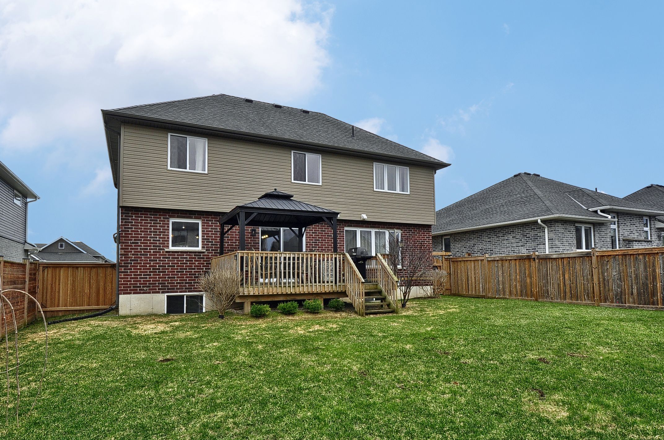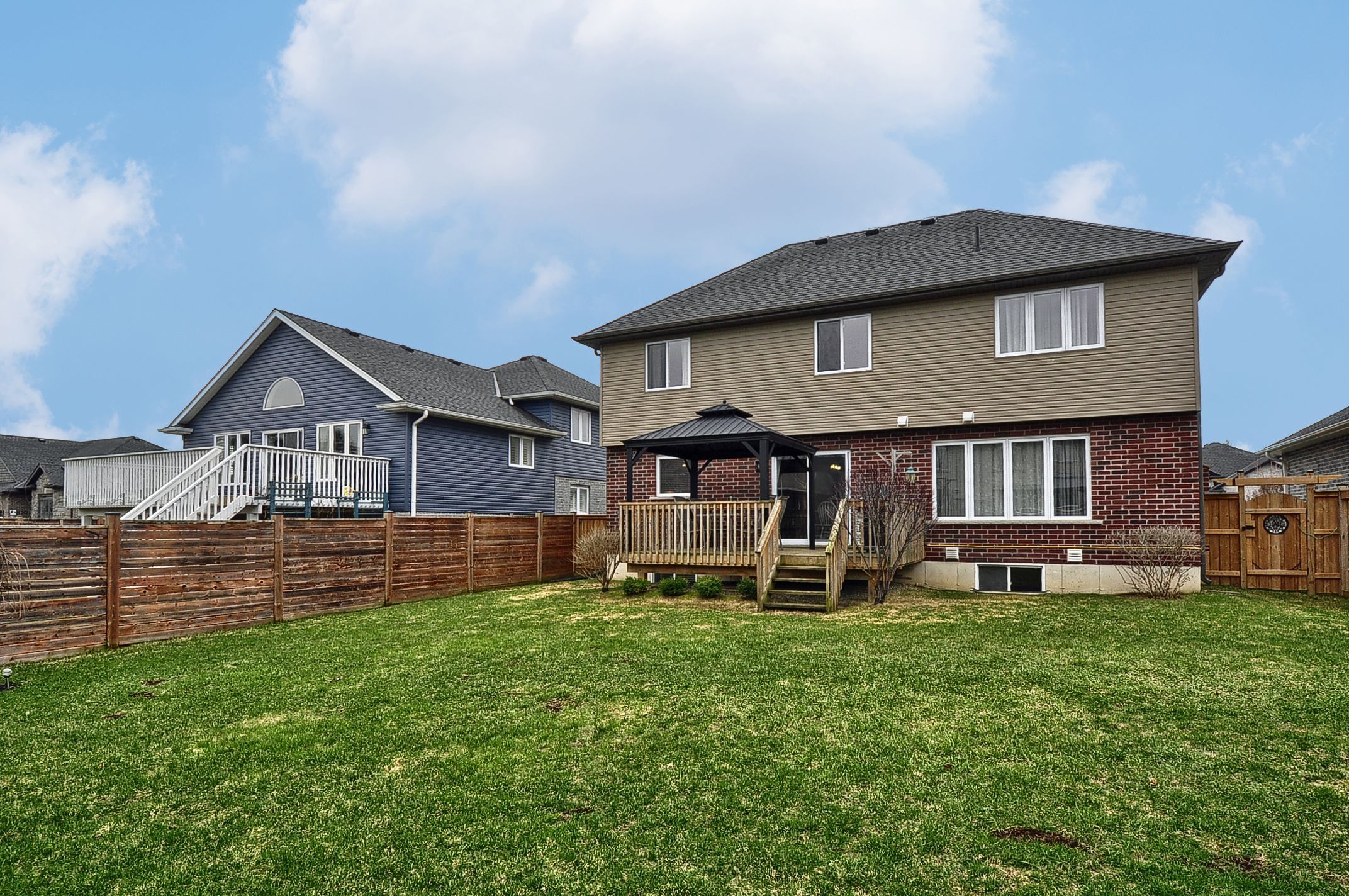 Welcome to 82 curtis st., nestled in the charming village of innerkip. Built by hunt homes, the sought-after "waterloo" model offers an exceptional blend of space, style, and functionality with 4 bedrooms, 4 bathrooms, and a double car garage with insulated garage door. Step inside to a bright and inviting two-storey foyer, featuring neutral décor, gleaming hardwood floors, and elegant tile. The open-concept main floor is perfect for both everyday living and entertaining, showcasing a spacious great room with a cozy gas fireplace and a gourmet eat-in kitchen complete with granite countertops, a breakfast bar, pantry, and sun-filled dining area. Sliding doors lead to a private backyard with a deck, gazebo, garden shed, and fully fenced yard-ideal for relaxing or hosting gatherings. The main level also includes a versatile formal dining room or living room, a convenient 2-piece bath, and a functional mudroom. Upstairs, the generous primary suite features a walk-in closet, private ensuite, and its own fireplace for added comfort. Three additional well-sized bedrooms, a full 4-piece bathroom, and a second-floor laundry complete this level. The fully finished basement expands your living space with a large recreation room, additional bathroom, workshop, storage, and oversized egress windows. Move-in ready, this home is located in a quiet, family-friendly neighbourhood with easy access to everyday amenities and major highways (401/403).