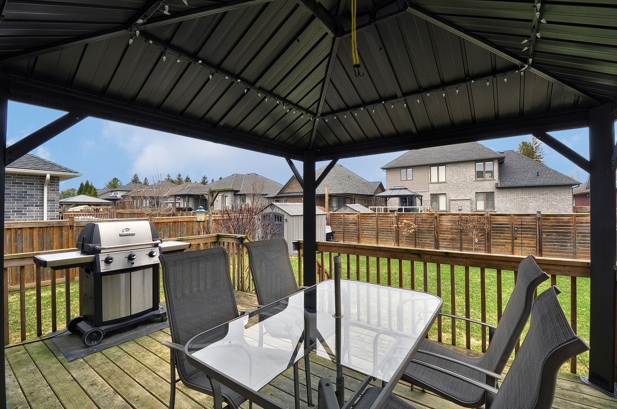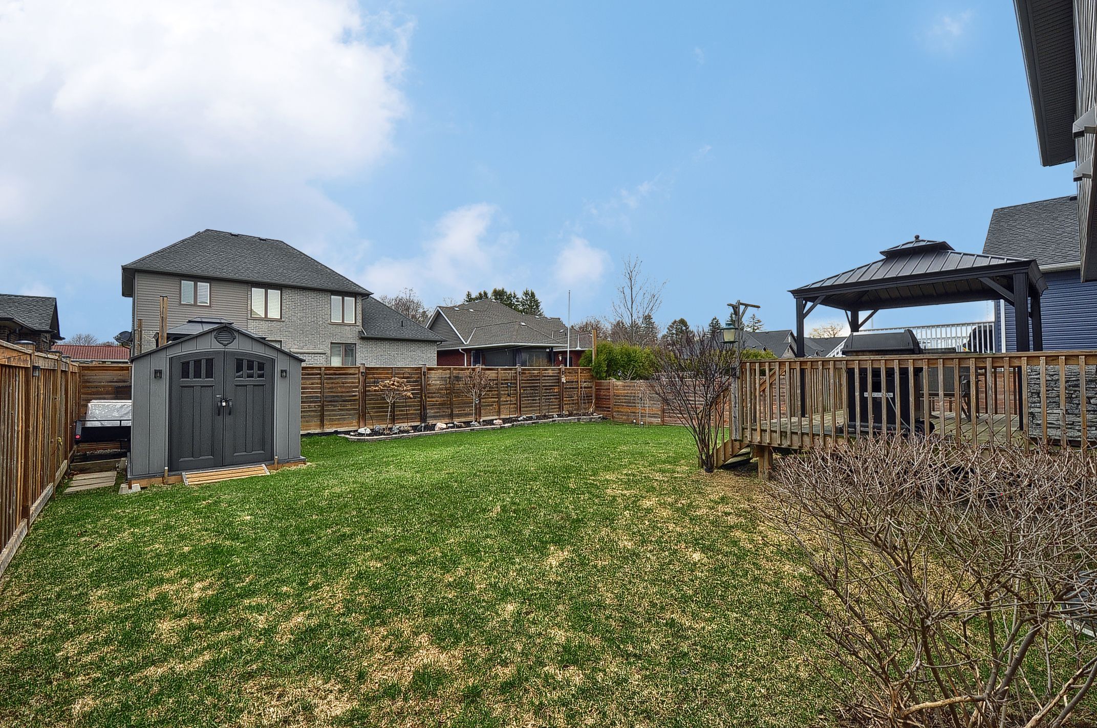 • Private backyard includes a deck, gazebo, and garden shed for outdoor fun.