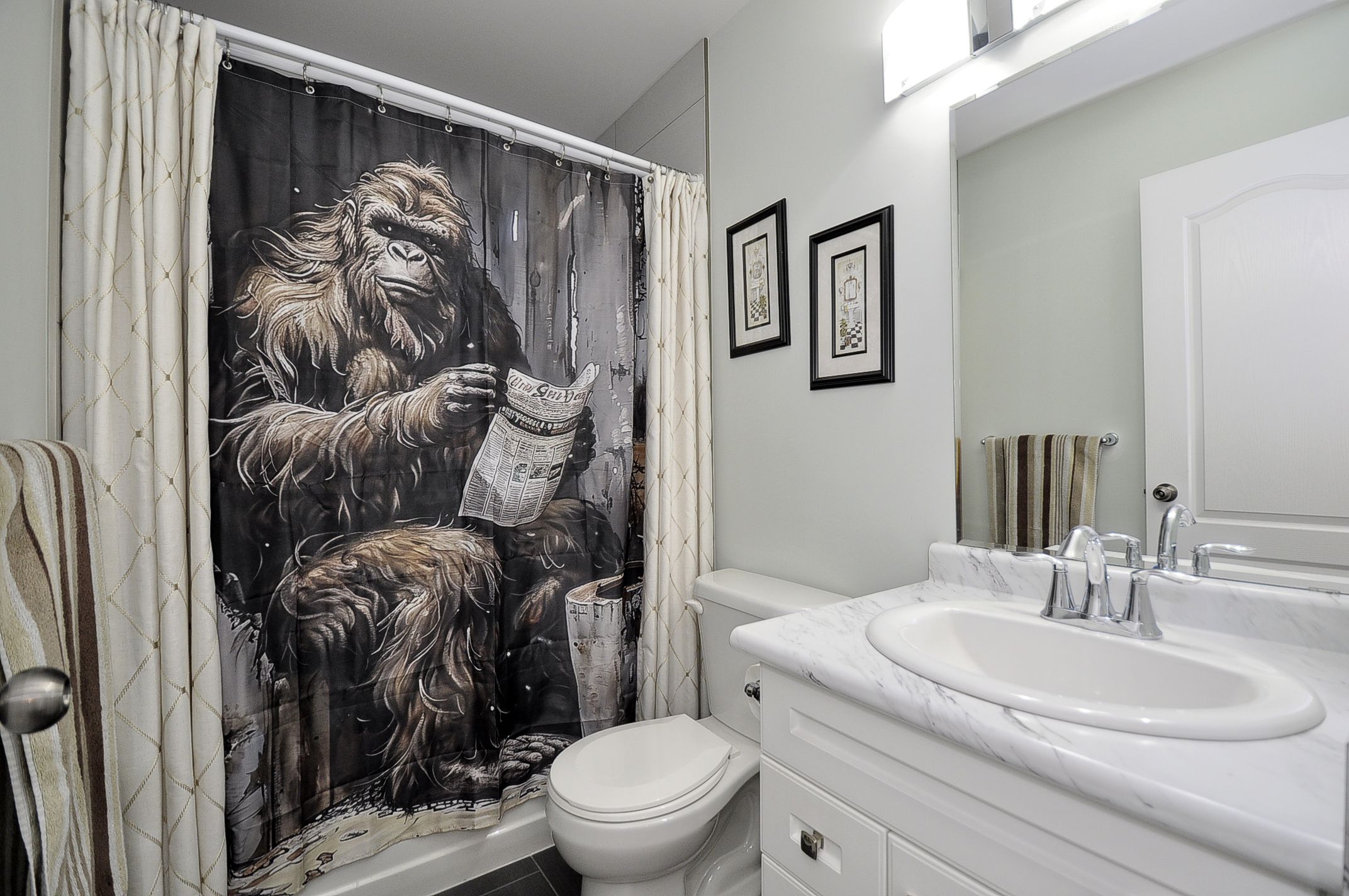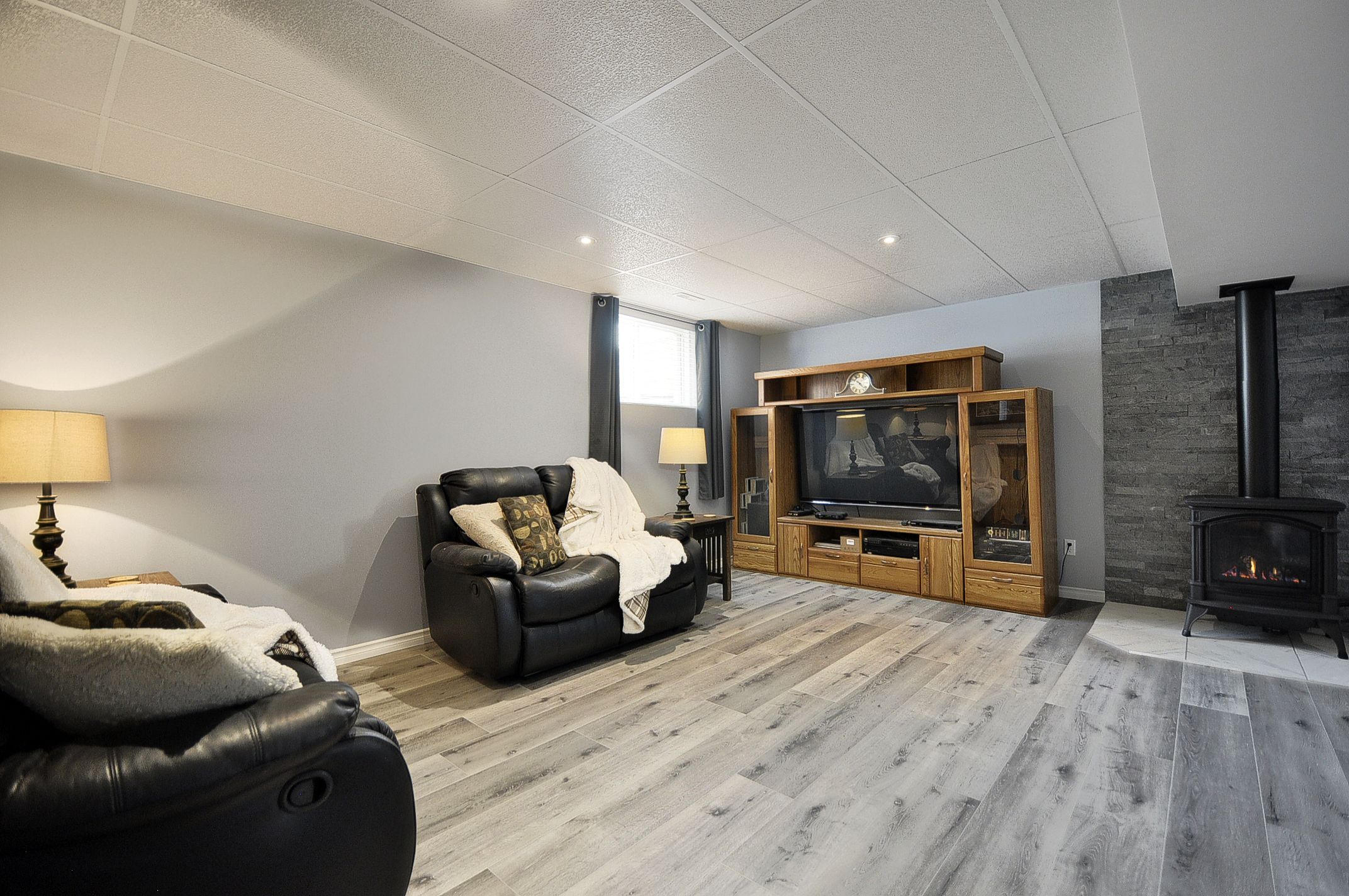 • Finished basement adds a large recreation room and extra bathroom for convenience.