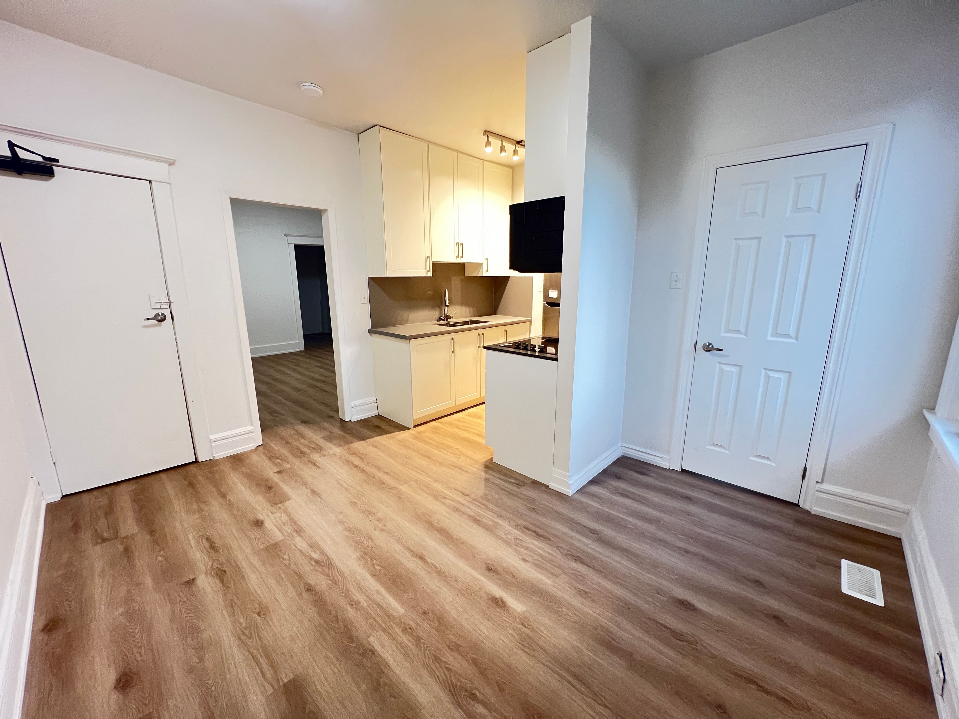 Cozy and spacious one bedroom + sunroom unit in the sought after leslieville area within walking distance to coffee shops, eateries, one academy gym, gerrard square shopping centre, freshco & loblaws, public transit, woodbine beach and many parks. Renovated with vinyl floors through-out, new kitchen cabinets with quartz counters and backsplash, and undermount sink. High 9ft ceilings. Large primary bedroom with a walk-out to the enclosed sunroom - perfect for sipping tea on relaxed mornings. Shared laundry in common area.